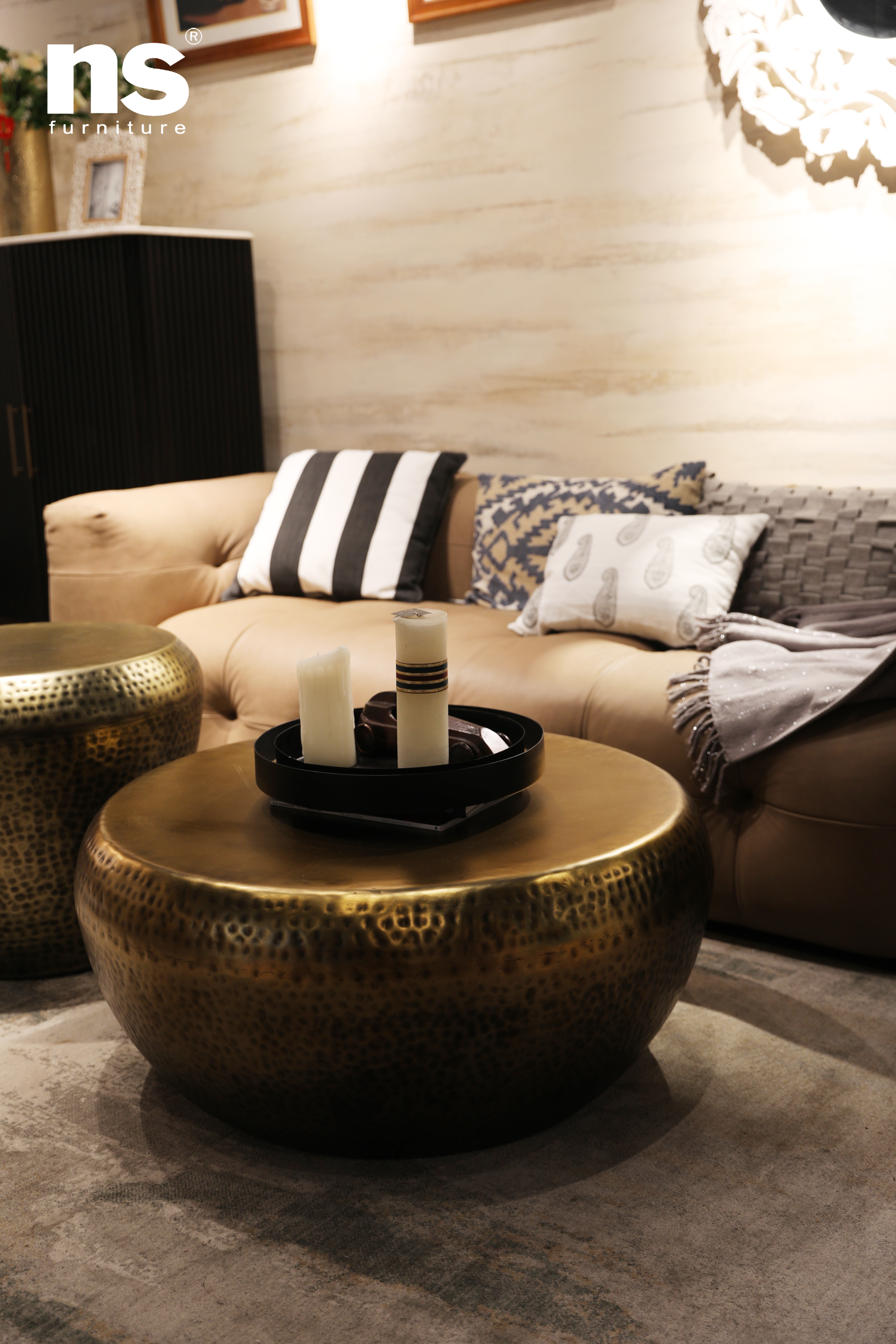 NS家居nsfurniture印度进口锤纹茶几NSCT-AHDR2-CT36AB*Antique Brass