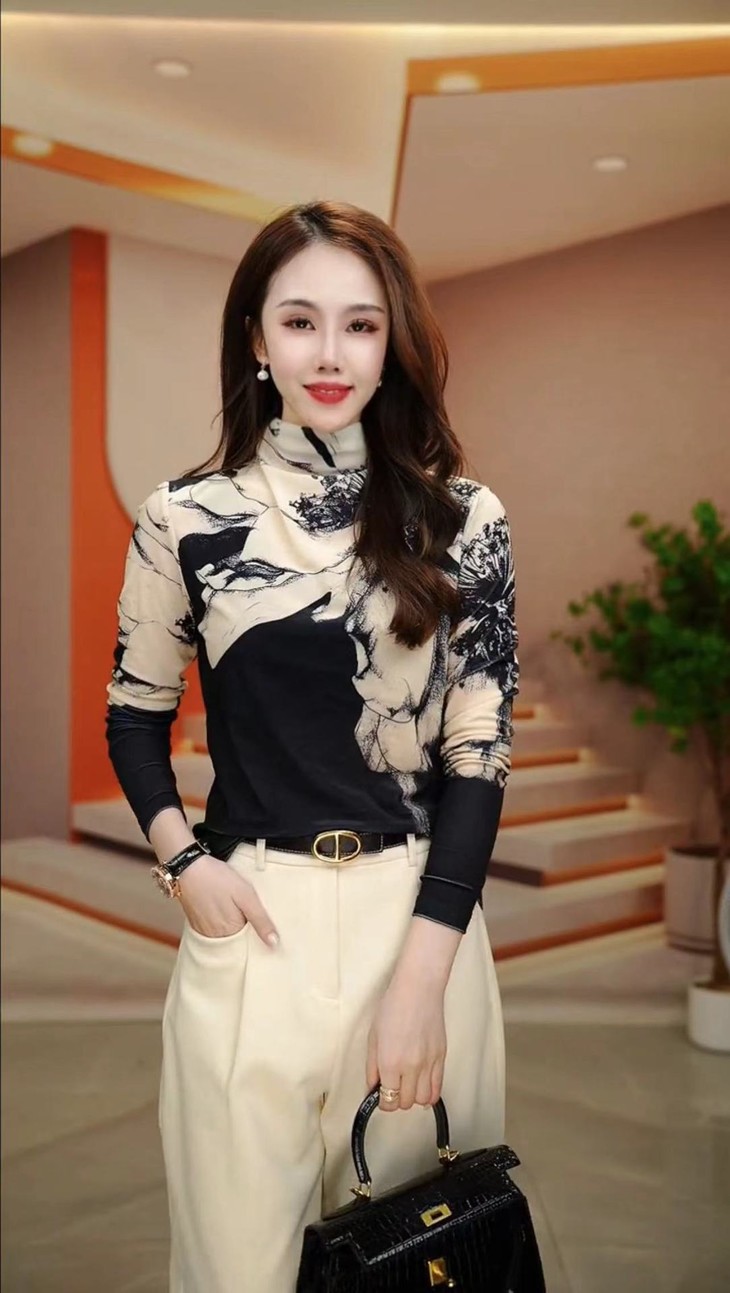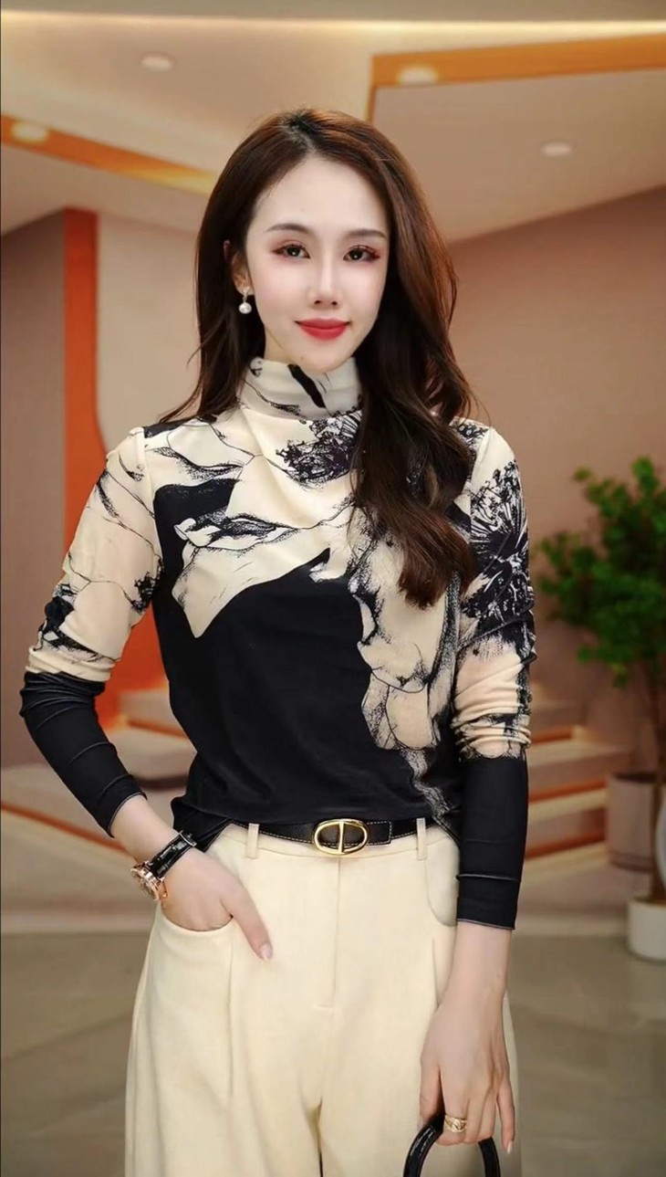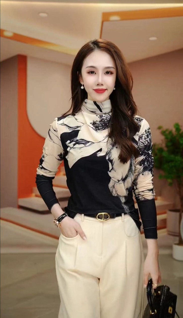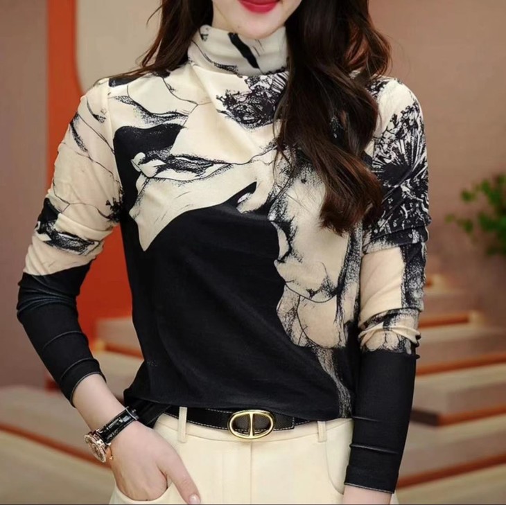 时尚印花高领打底衫,加厚加绒保暖长袖上衣AHM-nwy2203