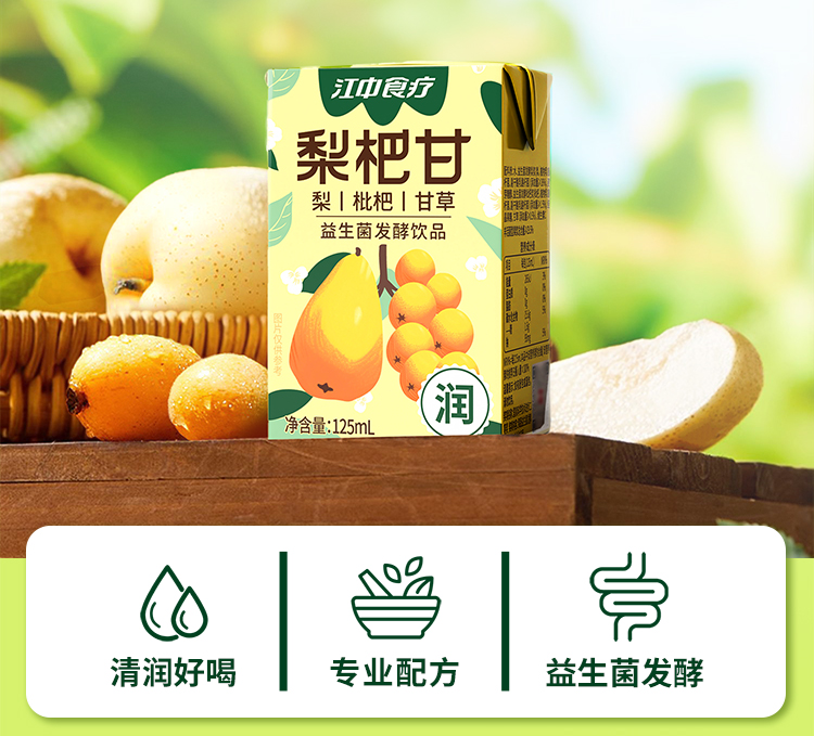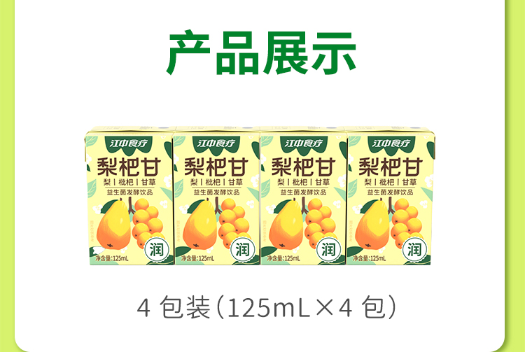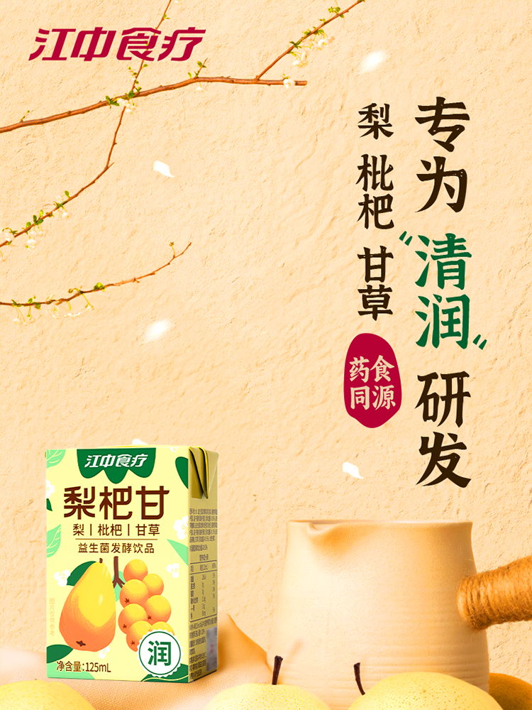 8瓶*江中食疗梨杷甘饮品4瓶/排 125mL/瓶 保质期至2026年9月【新人特价专享,限2件】