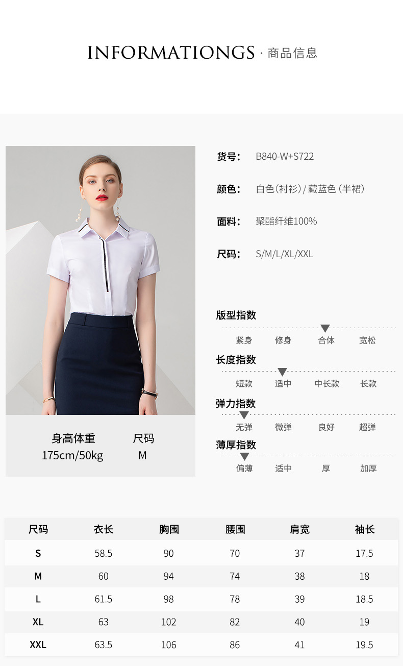 IWY/短袖衬衫藏青色半裙套装B840+S722