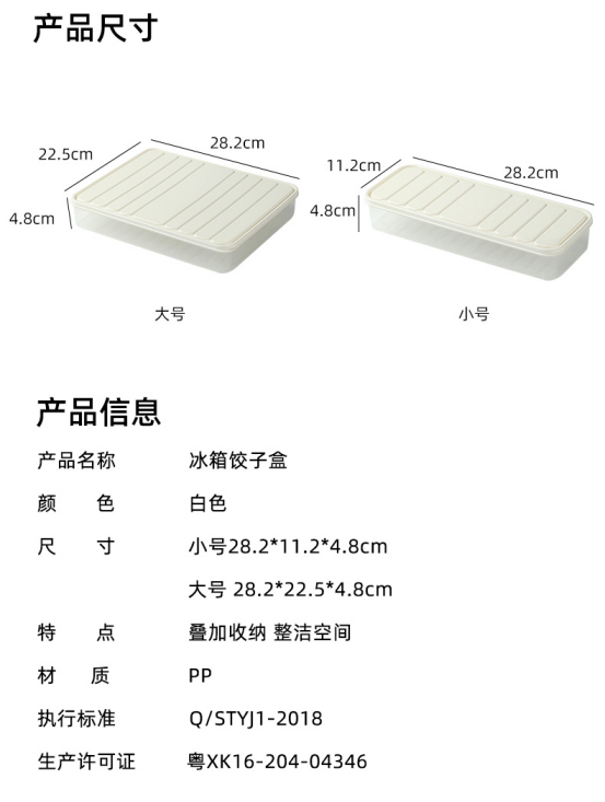 ③饺子收纳盒2大2小4件套:小号28.2*11.2*4.8cm、大号28.2*22.5*4.8cm