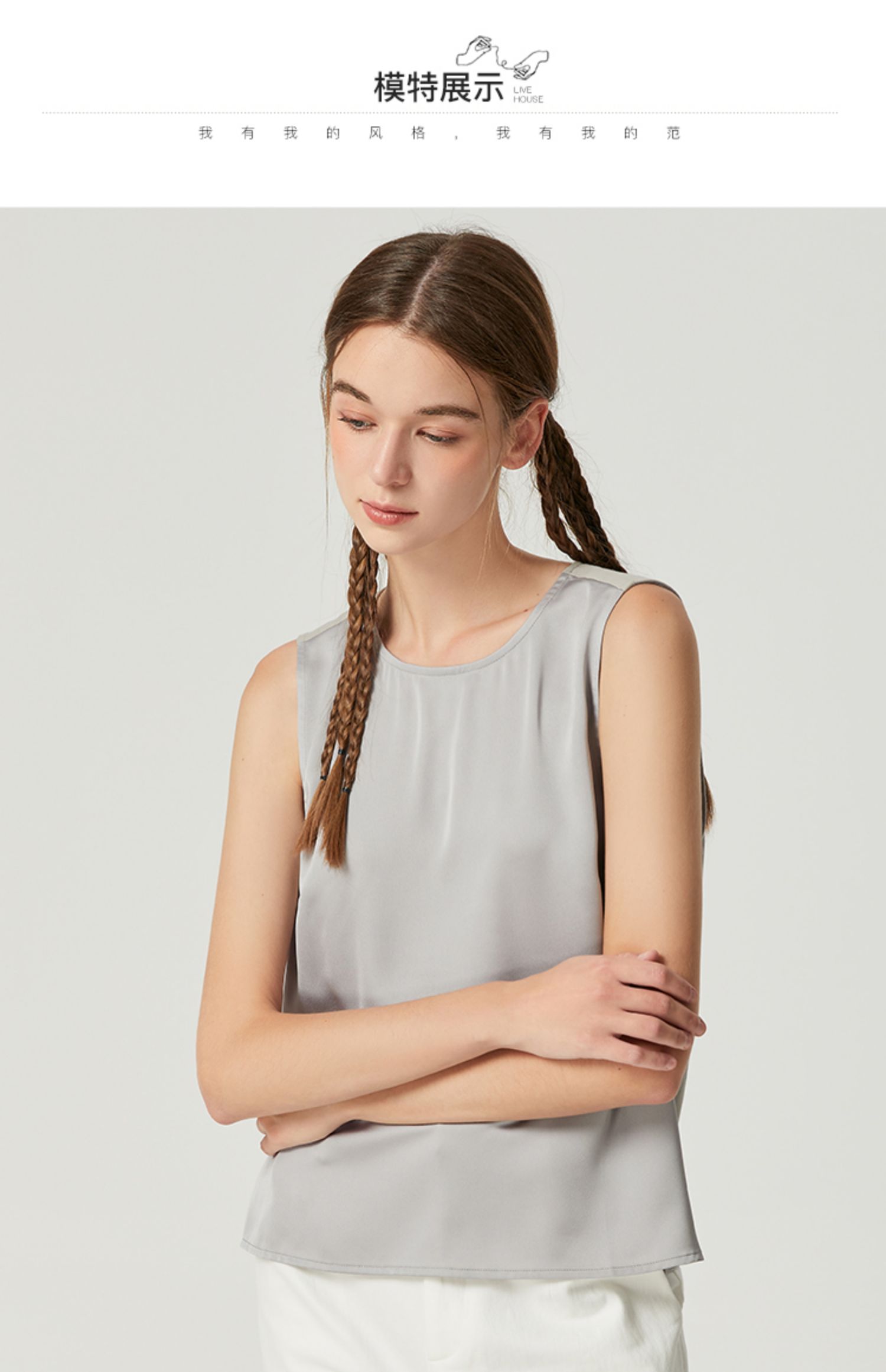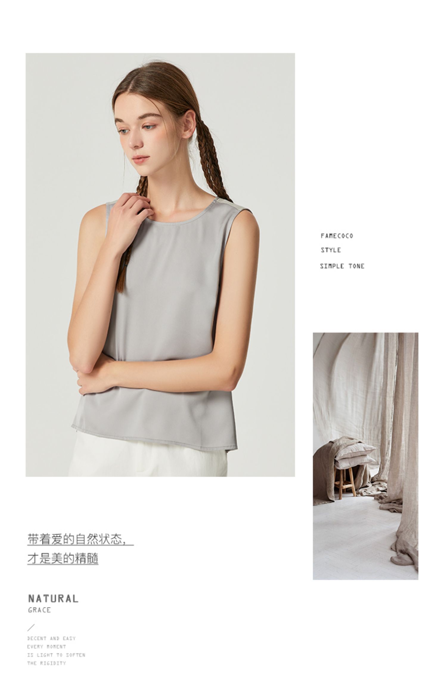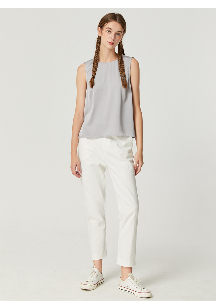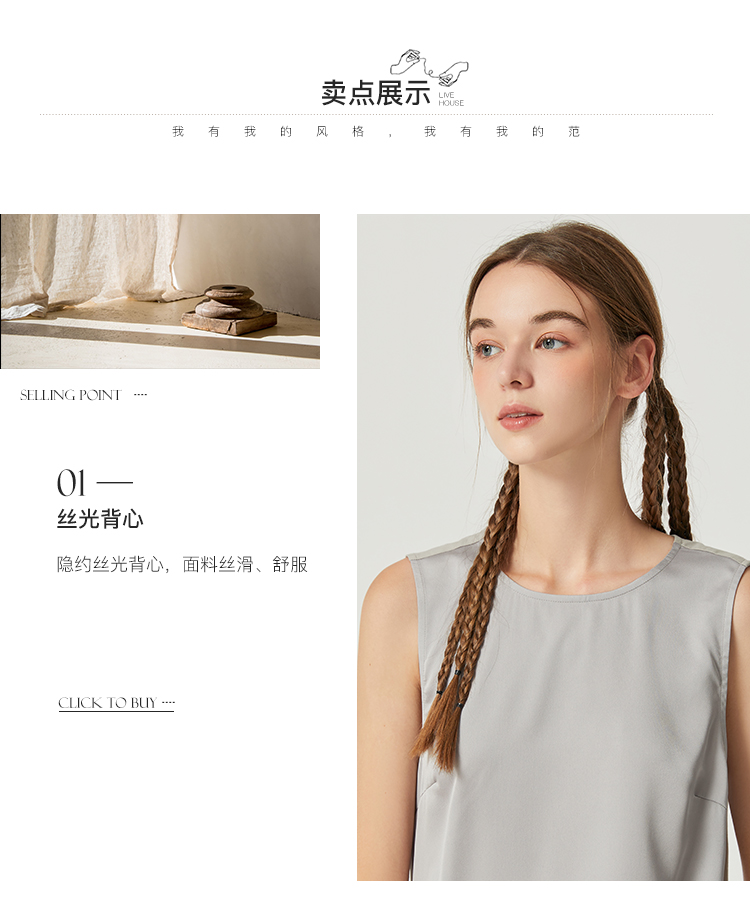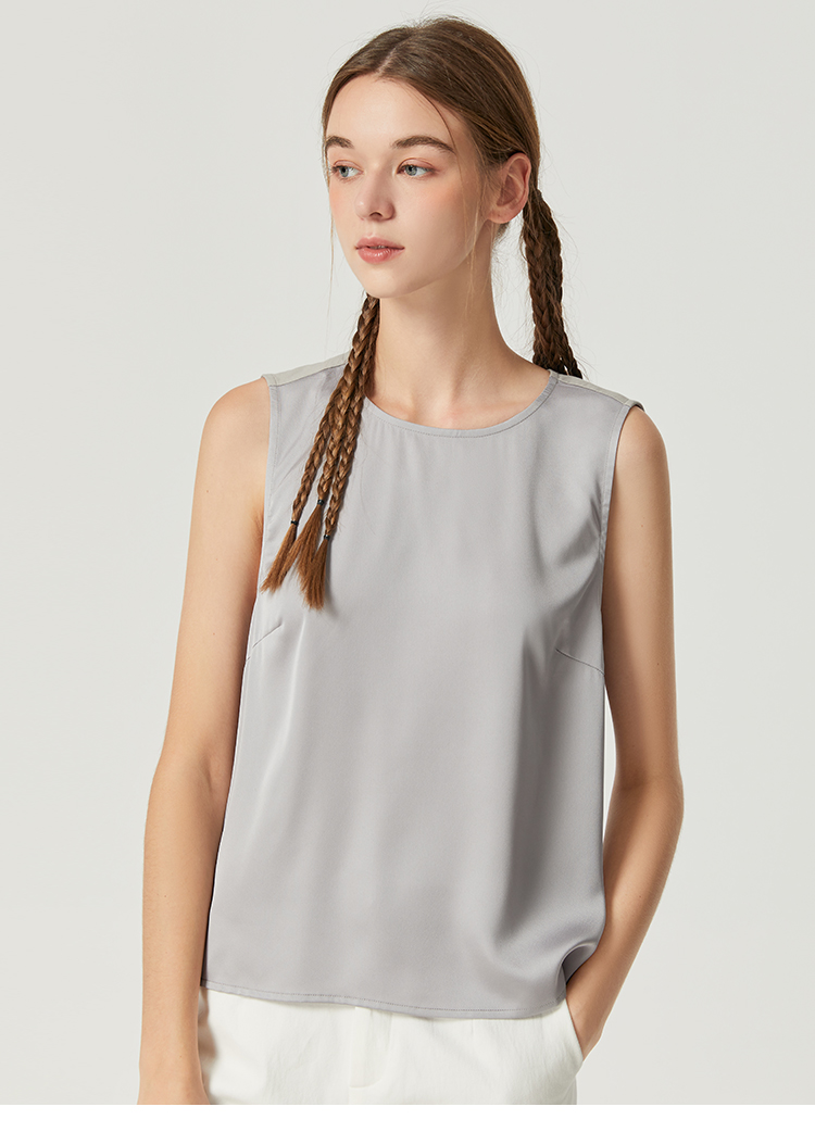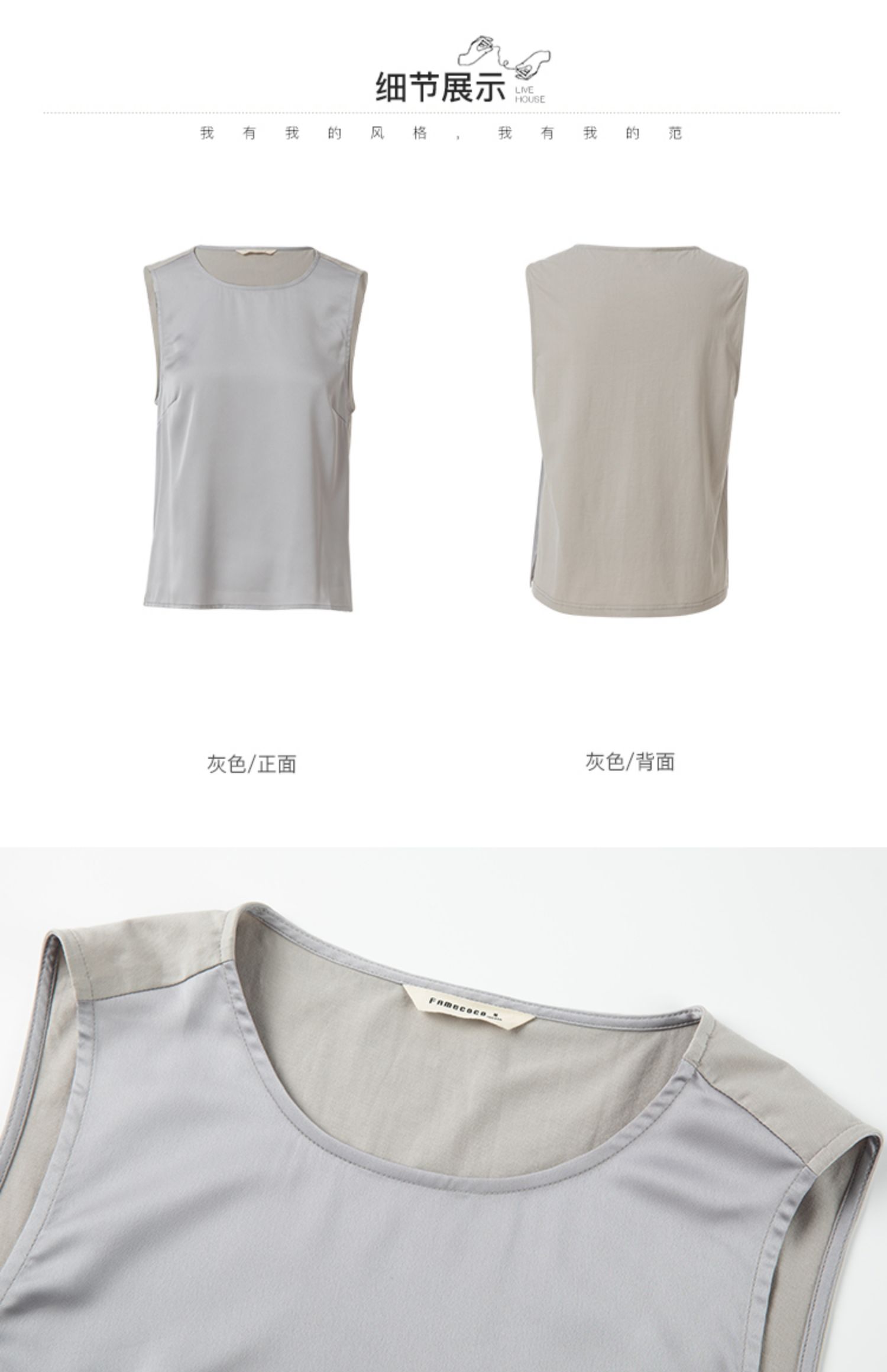 Famecoco范可儿丝光面料拼接背心女内搭秋季别致无袖上衣F225CB001