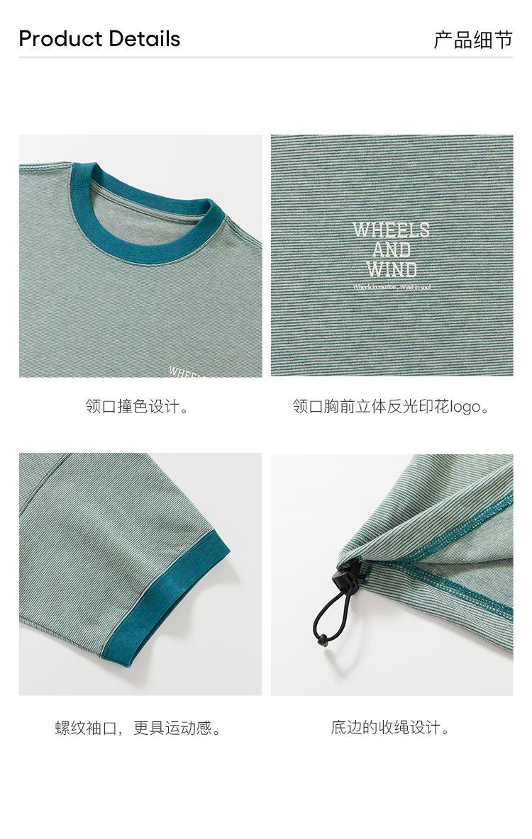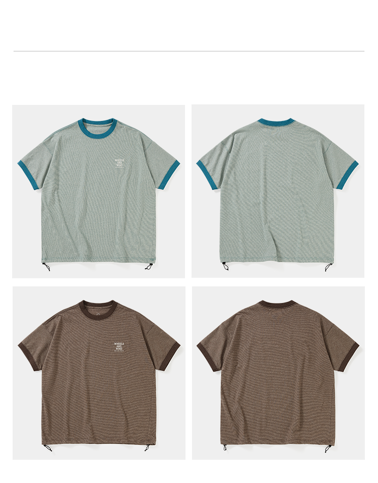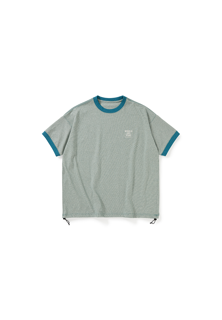 WHEELS and WIND 男女中性款细条纹宽松撞色圆领短袖T恤