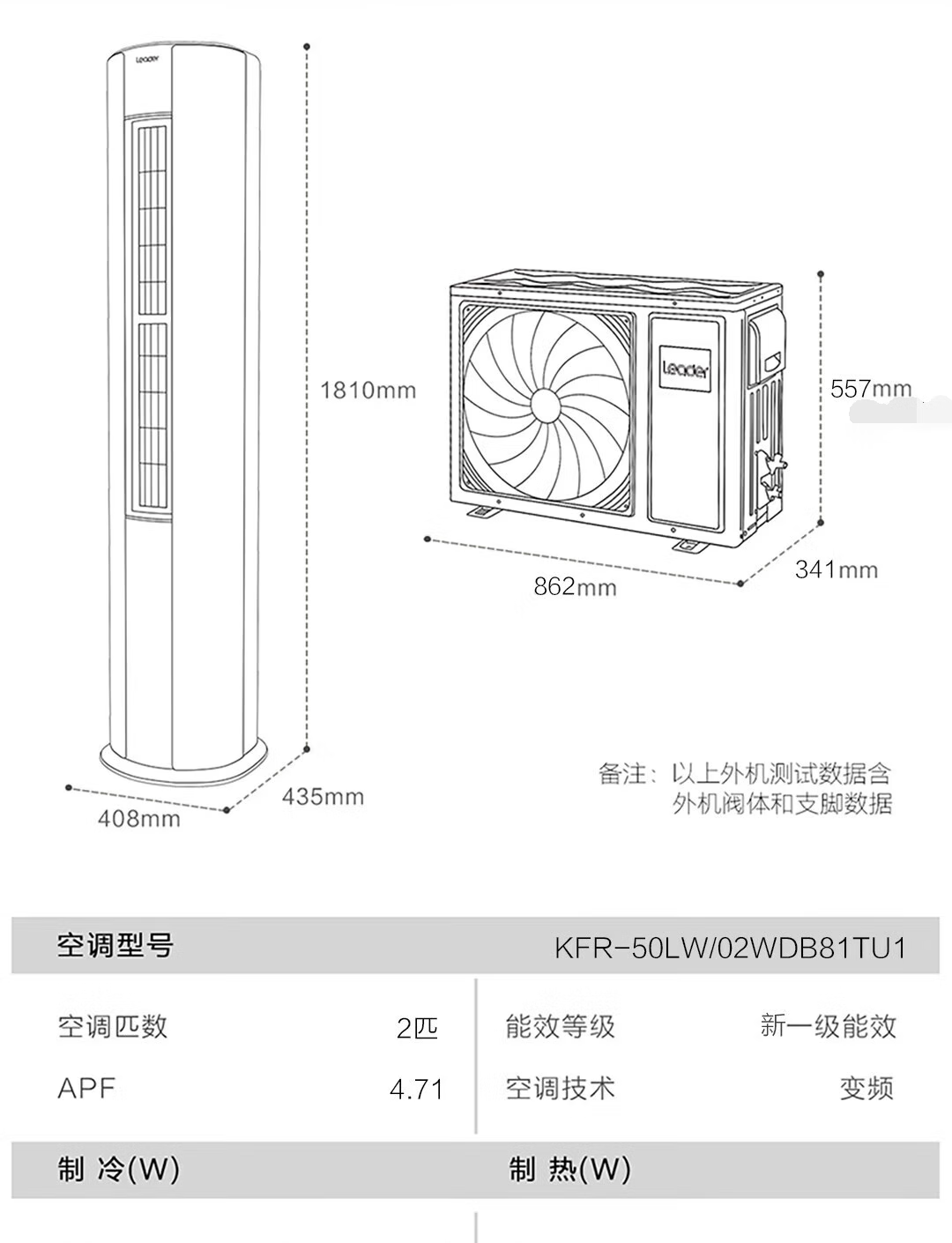 统帅(Leader)海尔出品空调柜机2匹立柜式新一级能效内外机自清洁独立除湿WIFI智控节能空调KFR-50LW/02WDB81TU1