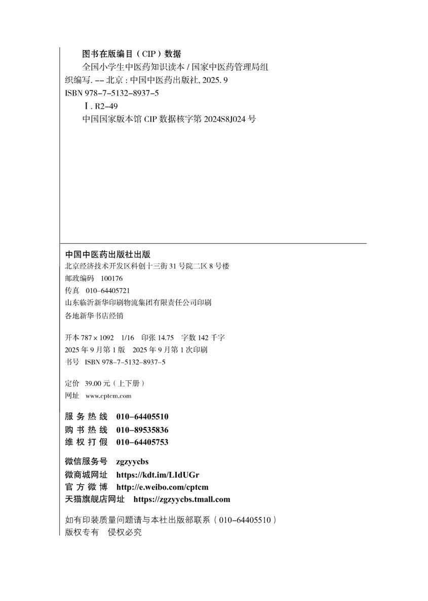 书名:【全2册】全国小学生中医药知识读本(上册+下册)