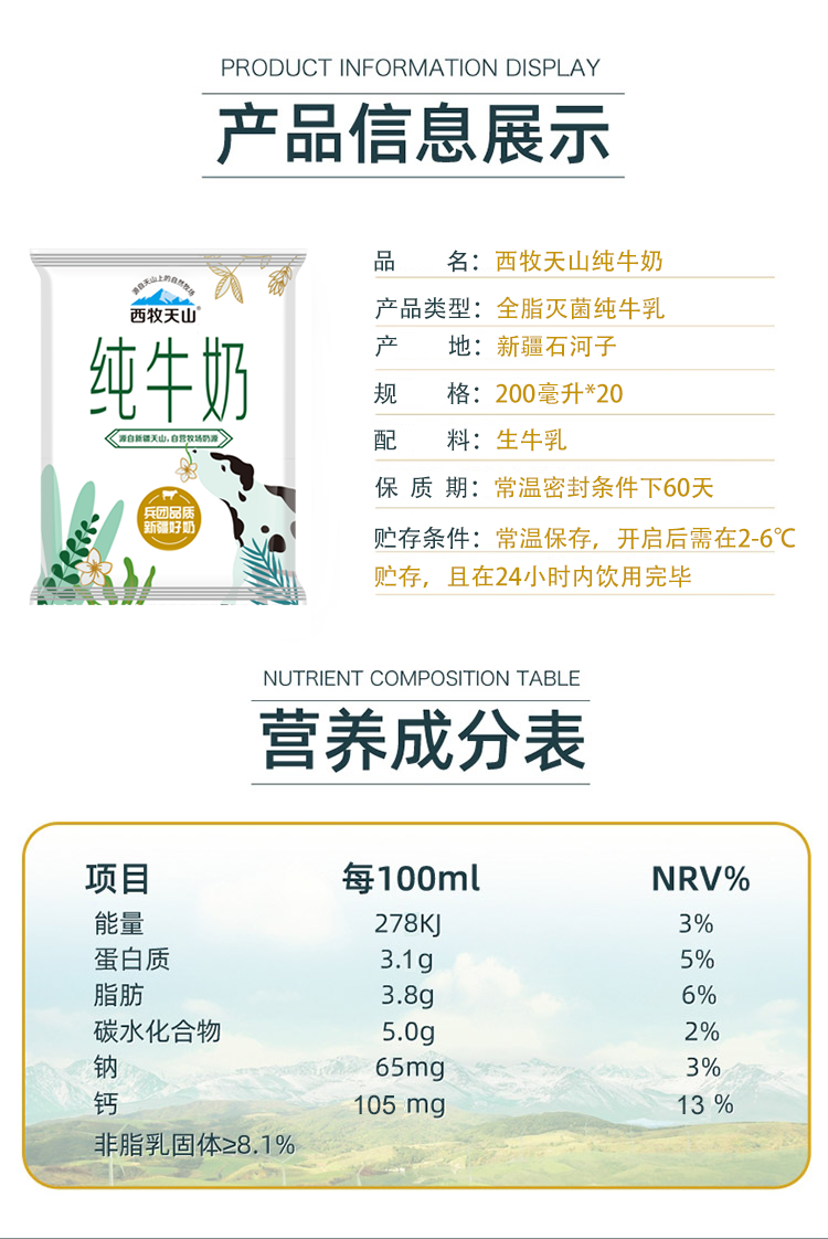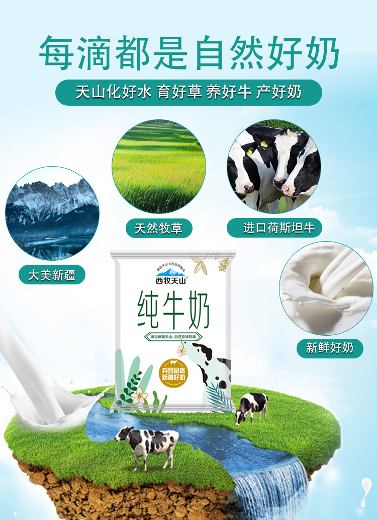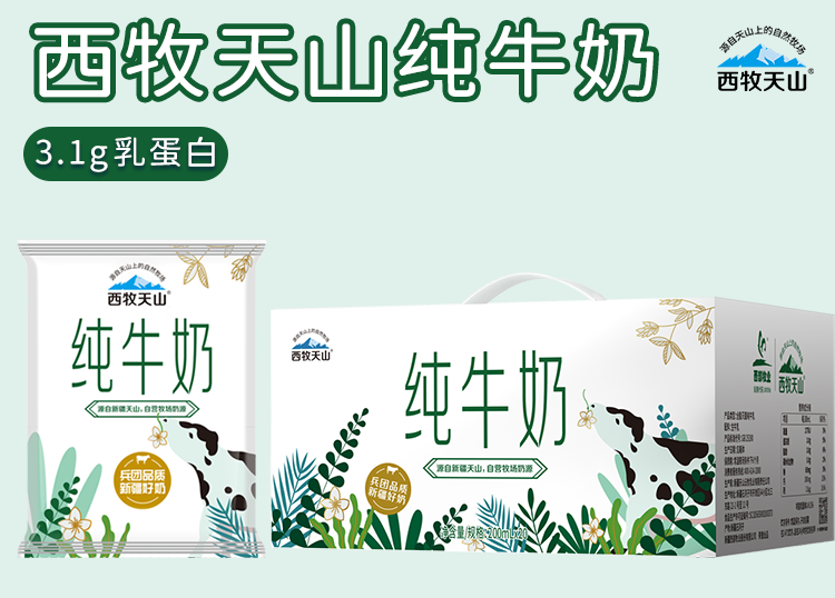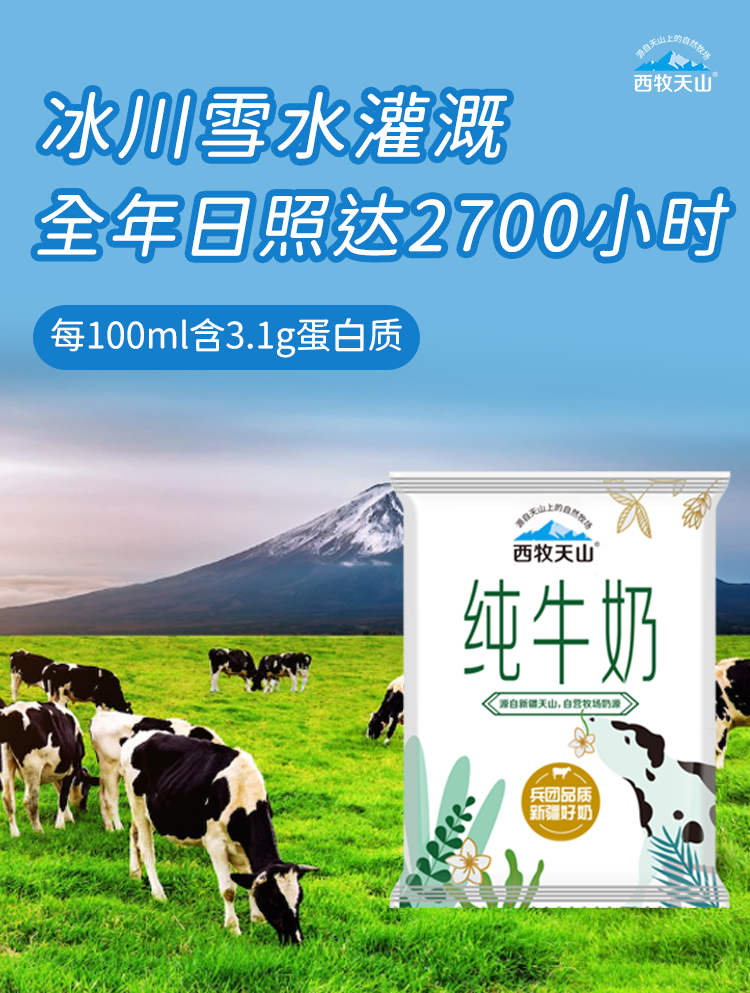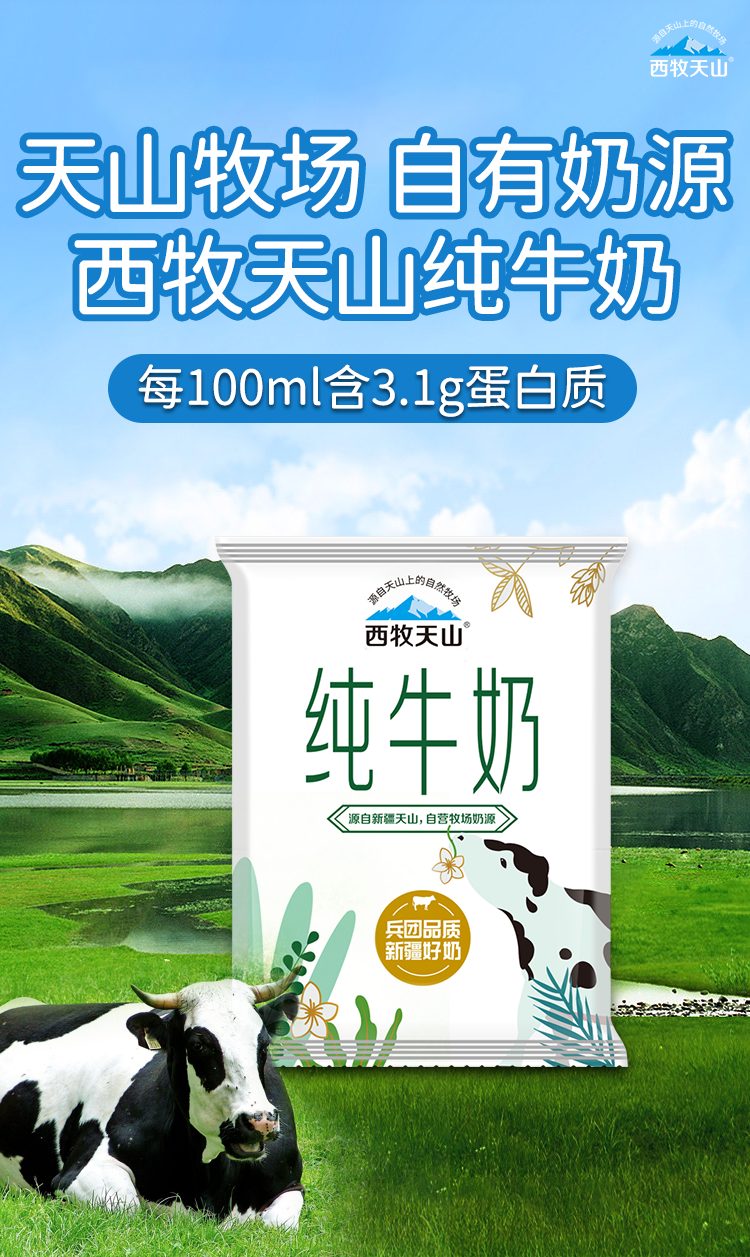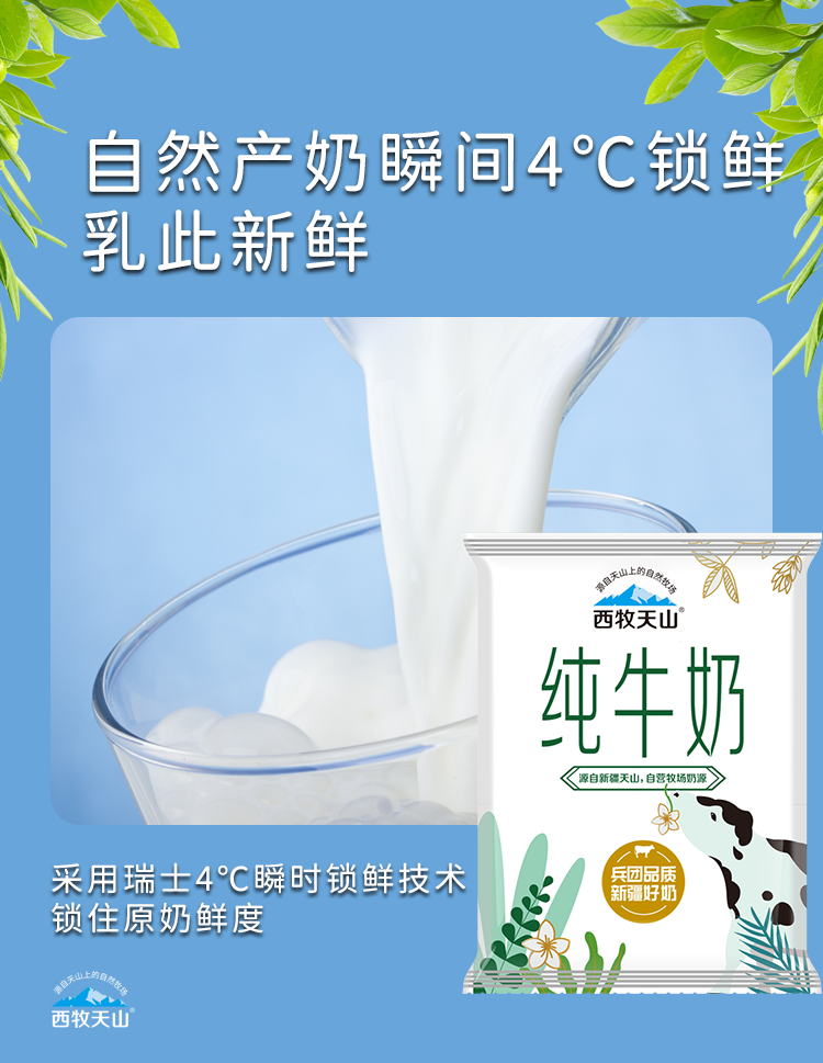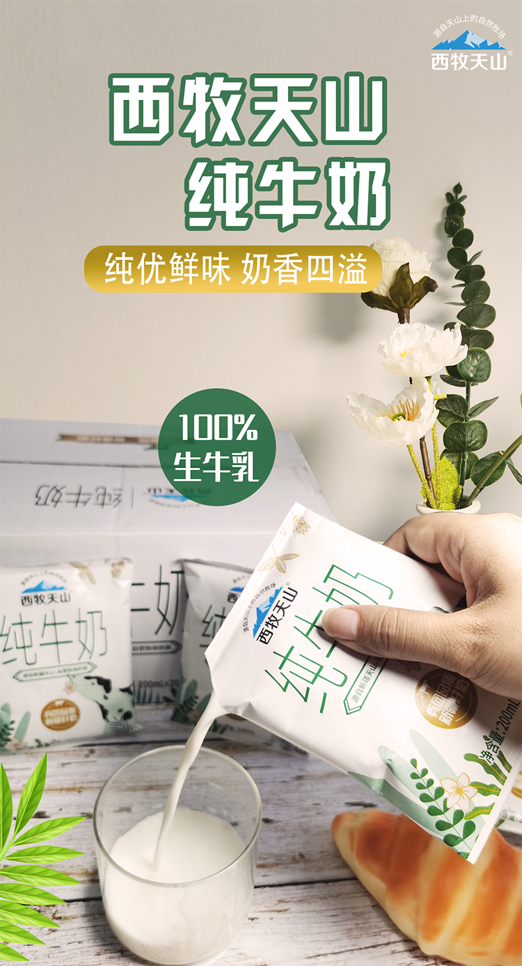 国家喊你加奶啦~【新疆牛的奶】新疆西牧天山全脂袋装纯牛奶 200ml×20袋 纯净牧场 奶味浓郁
