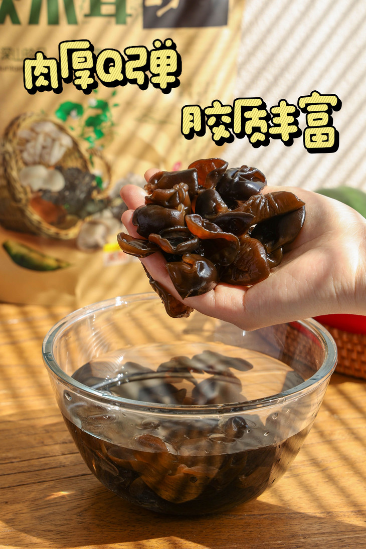 而且泡发率高 一小撮干木耳就足够炒一盘菜! 可以真切地品味到森林的味道!! 500克大概可以炒一年菜了😂 非常的划算!!