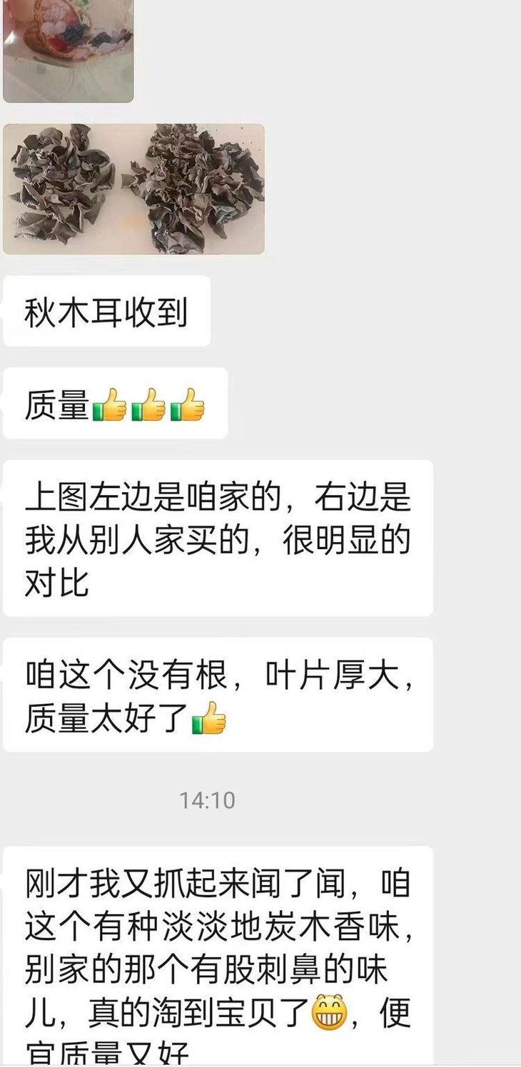 给阿姨寄了一包秋木耳,一直夸我们的木耳。 肉厚Q弹,吃起来爽口!好吃