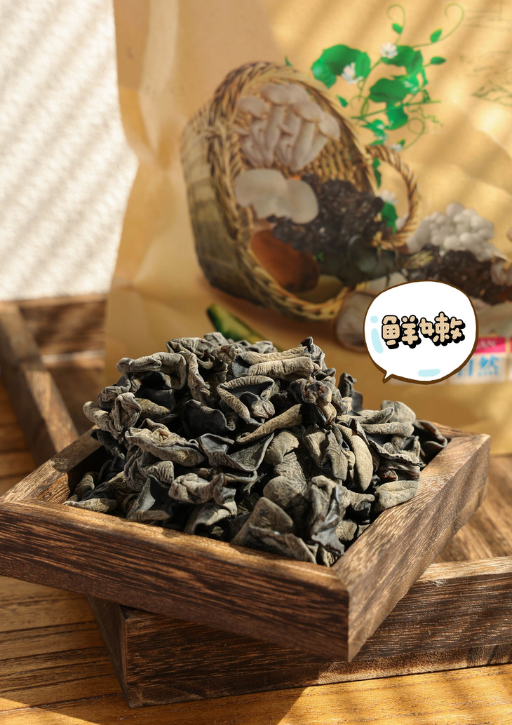 不烘干,阳光自然晒干 未经后期化学处理 开盖之后闻到的是木耳的清香 而非化学添加剂的酸味 肉质饱满,胶质丰富 食之口感爽脆无异味