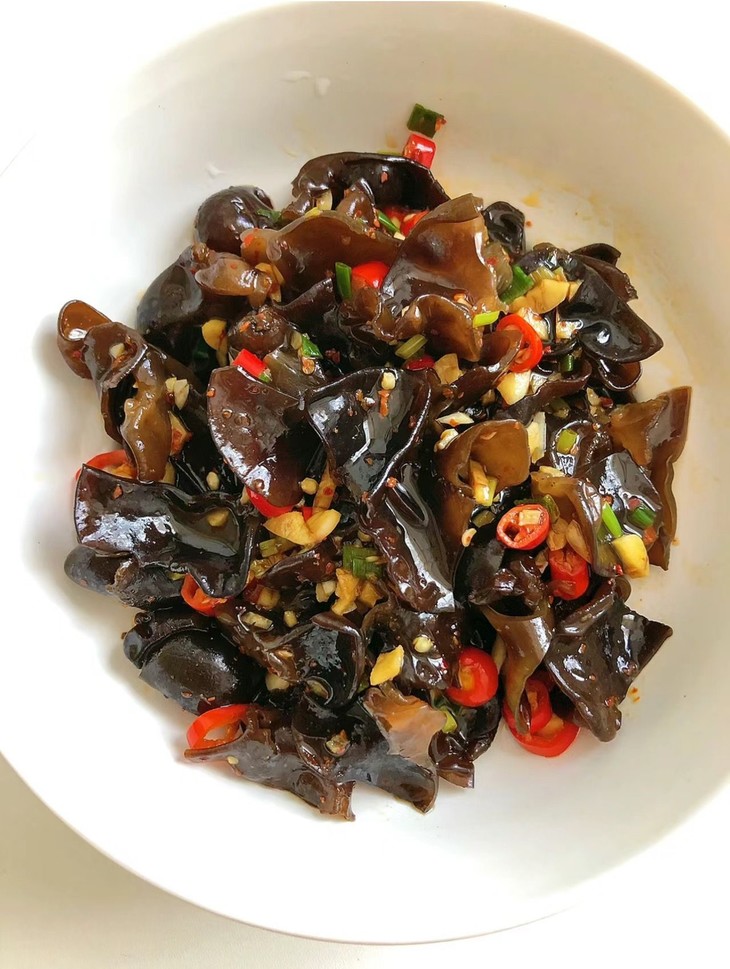 凉拌 炒菜 煲汤 包子 饺子 凉拌木耳👇 1、准备泡发好并且已经清洗干净的黑木耳,想吃多少就准备多少,花生米一小把,小米辣切成圈; 2、把泡发好的黑木耳先焯水并煮熟,锅中水烧开,把木耳放进去,水开再煮2分钟左右; 3、煮好的木耳捞出来沥干水分,放在一个大碗中,加入准备好的小米辣,开始调味,加一小勺食盐、一小勺白糖提鲜、少许生抽、少许素蚝油、少许香醋、一点香油,搅拌均匀,喜欢吃辣的还可以加点辣椒油; 4、味道调好之后,最后加入花生米,搅拌均匀,好吃的凉拌木耳就做好了。