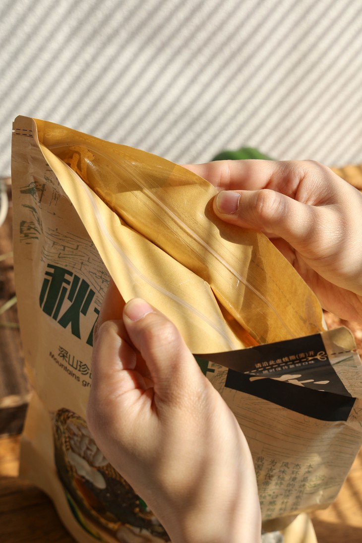 优质秋木耳表面光润 其背面略呈灰白色 身干肉厚,朵形整齐,耳瓣舒展 朵片有弹性,嗅之有清香之气 越是优质的木耳,其吸水膨胀性越好! 为了保证木耳的口感和营养不流失 采摘下来的新鲜秋木耳不用机器烘烤❌ 更不会使用硫磺等化学物质熏干❌ 而是借助人工翻晒 在太阳光的照射下,自然蒸发晾晒 晒干后的木耳再经过两道人工筛选才能装袋