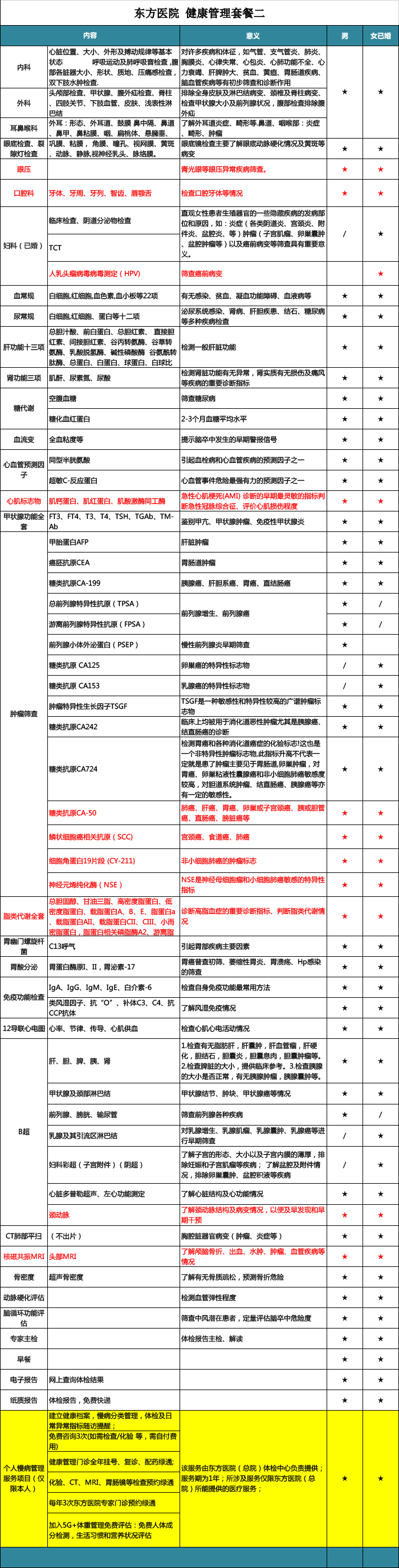 健康管理套餐二:男性原价5850元;女性原价6197元