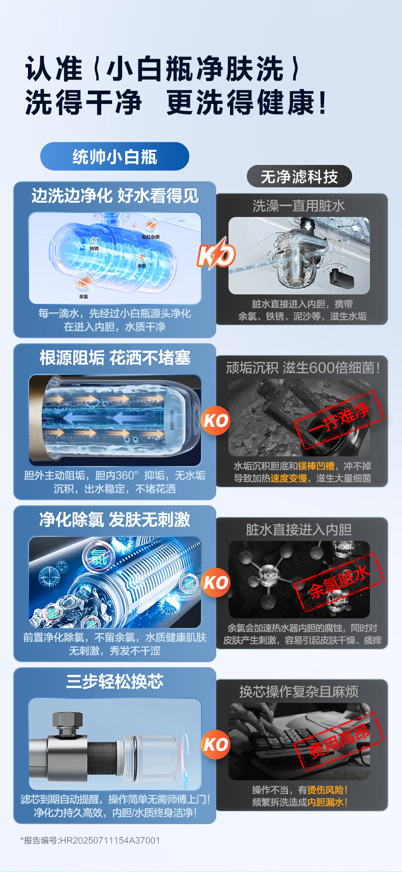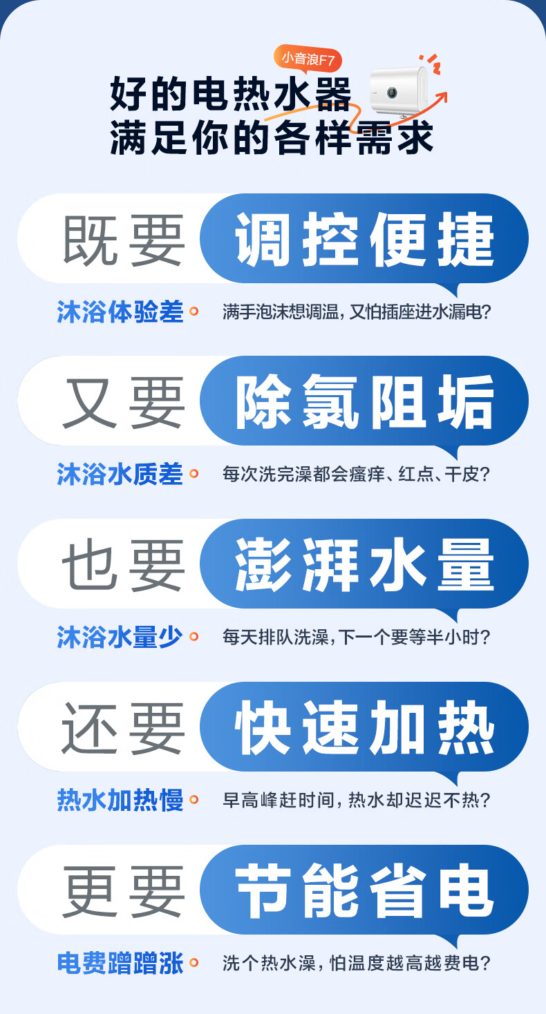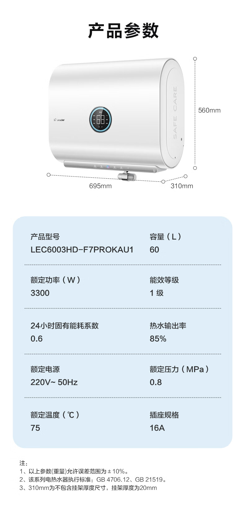 海尔出品统帅懒人系列60升双胆扁桶电热水器小白瓶母婴级净肤AI语音3300W一级能效国家补贴小音浪F7PRO