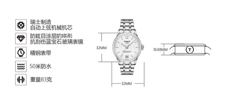 表壳 厚度 | 10.69 mm | 材质 | 316L精钢 |