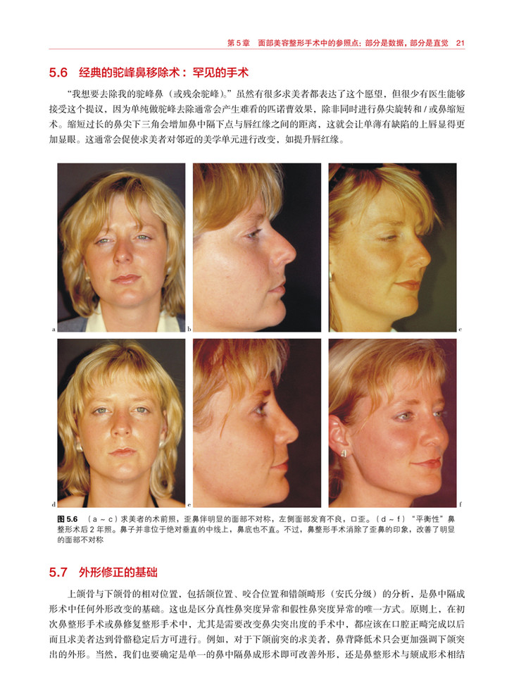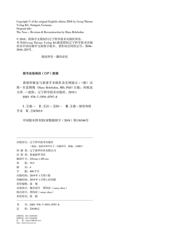 本书图文并茂,结合具体案例分析临床问题,原著者在书中介绍了实践中遇到的常见和独特病例的手术原理。在对每个问题进行了详细分析和评估之后,对选择的矫正手术步骤进行了详细的说明,并辅以清晰的逐步手术操作。每个案例都有随访患者的图像来显示手术结果。本书一开始就分析鼻腔,评估功能,制订手术计划以及分析各种移植物对鼻腔的支撑和形成作用。与大多数专注于隆鼻修复的图书不同,原著者重点介绍了各种鼻损伤的治疗方法,鼻子各部位软组织损失后的重建技术,以及管理由全身性疾病引起的鼻部组织缺损和畸形。