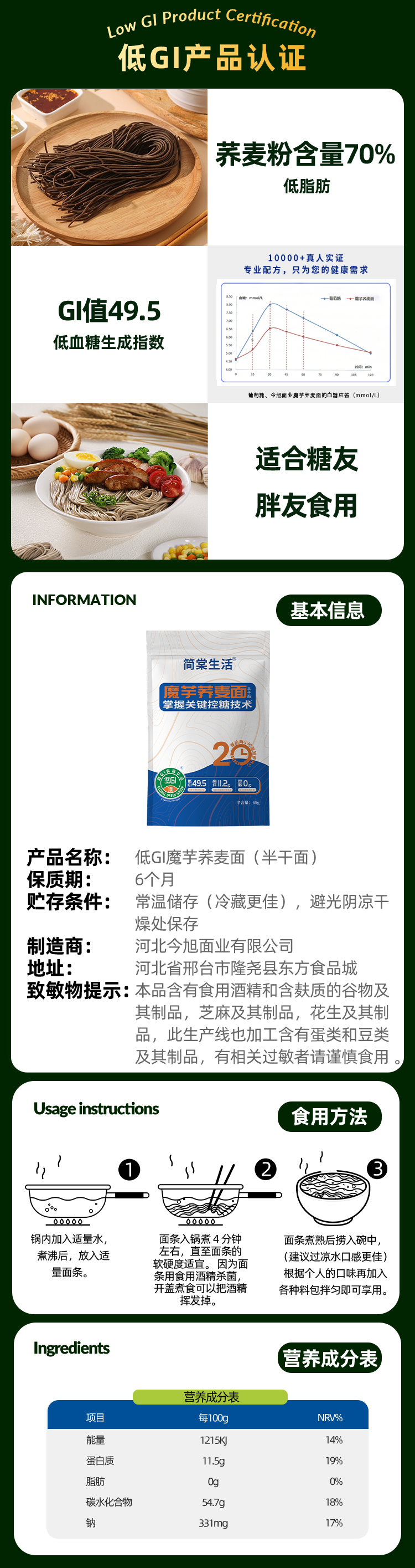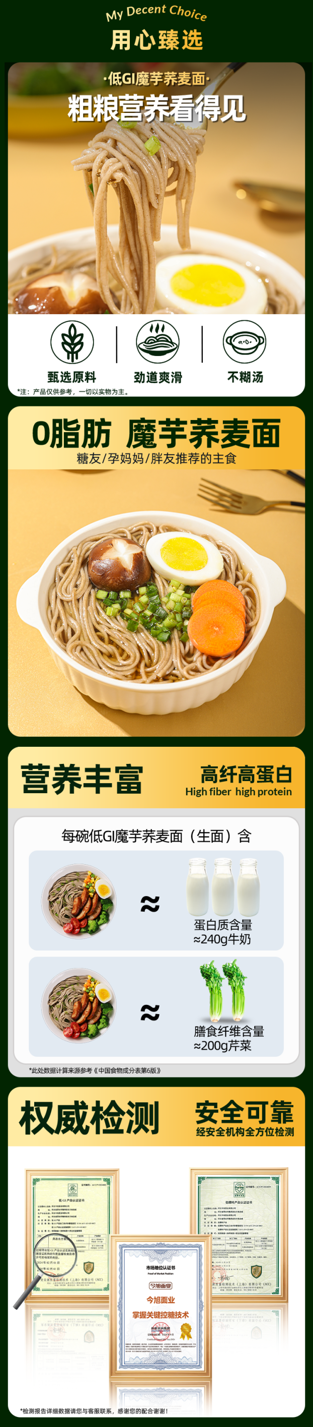 【采用崂山矿泉水和面 富含膳食纤维】简棠生活低GI魔芋荞麦面65g*12袋