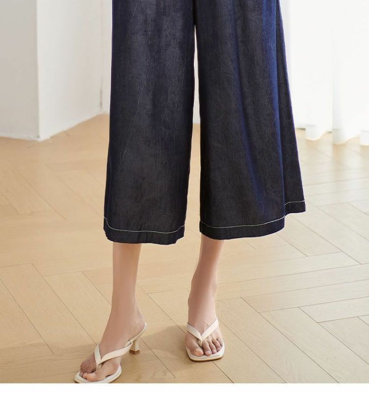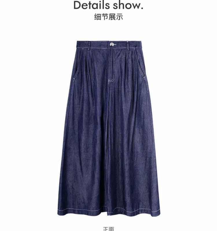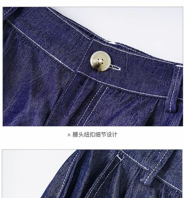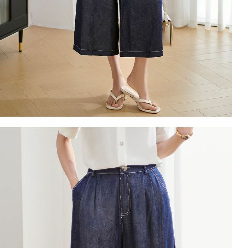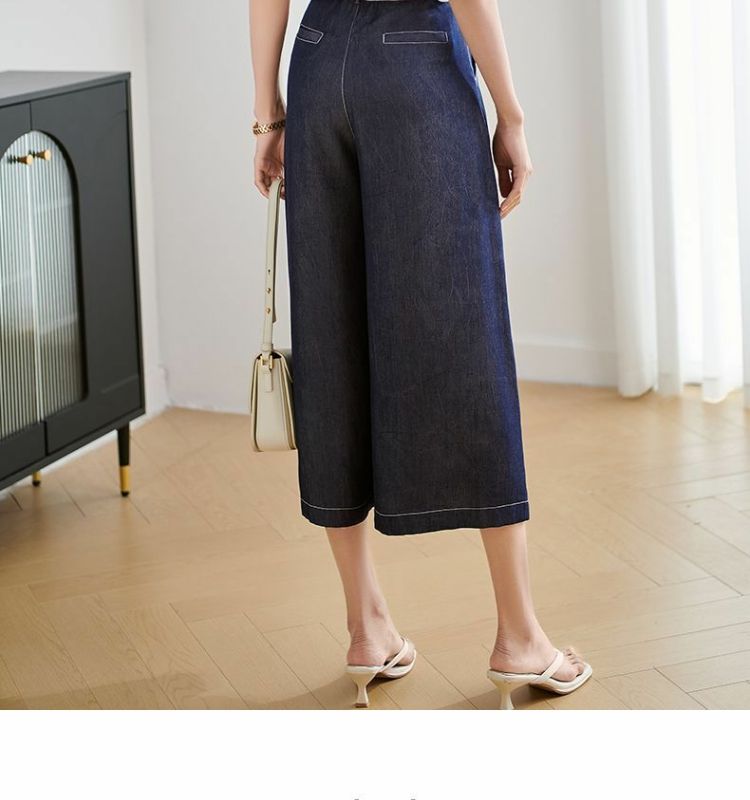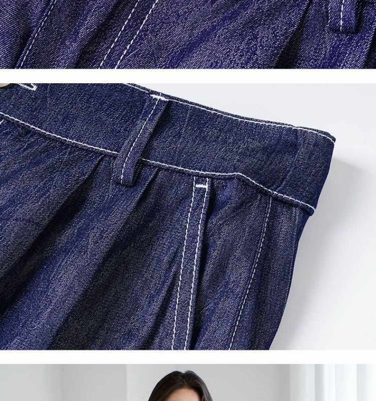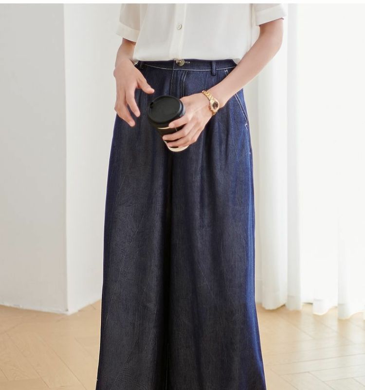 米思阳2024夏季新款通勤简约牛仔休闲裤高腰显瘦垂感阔腿裤女2273