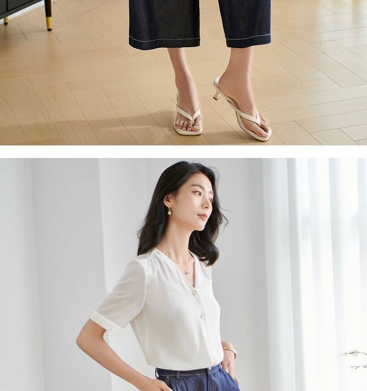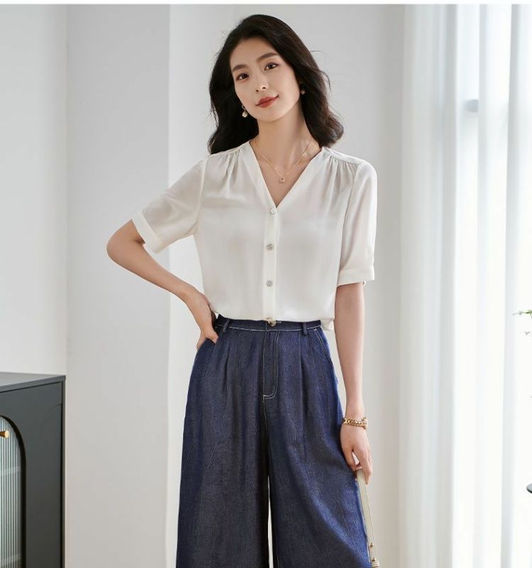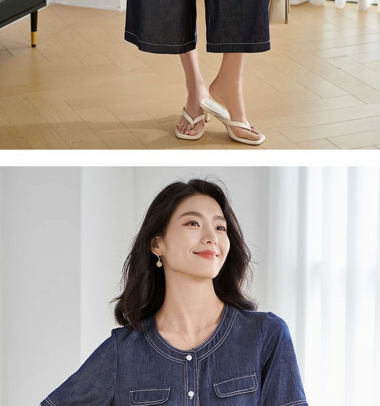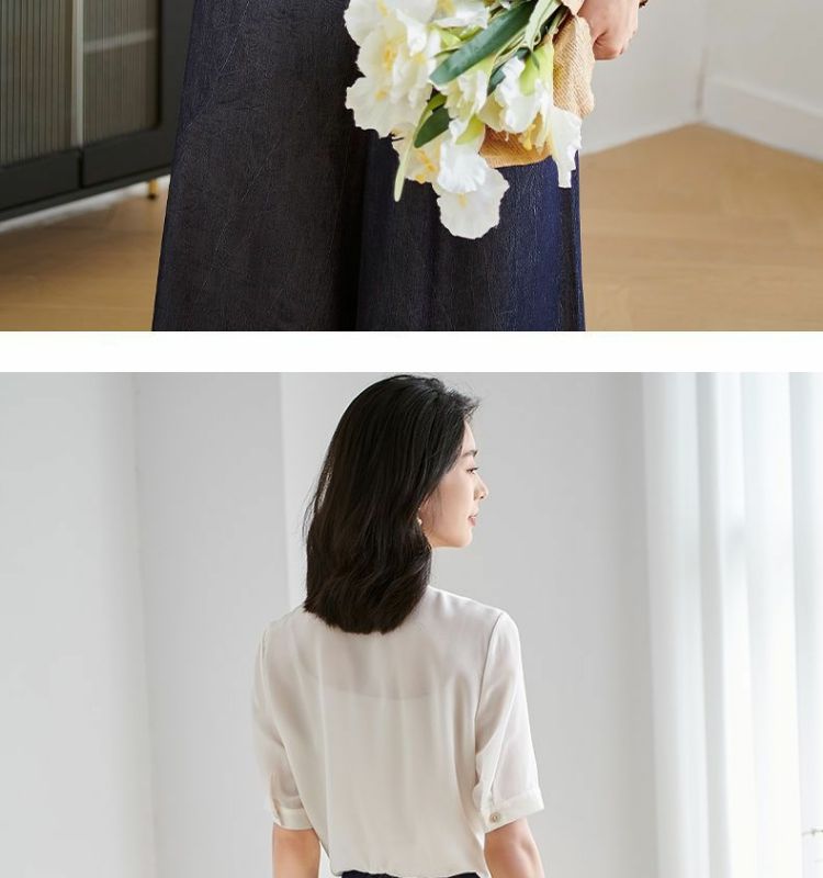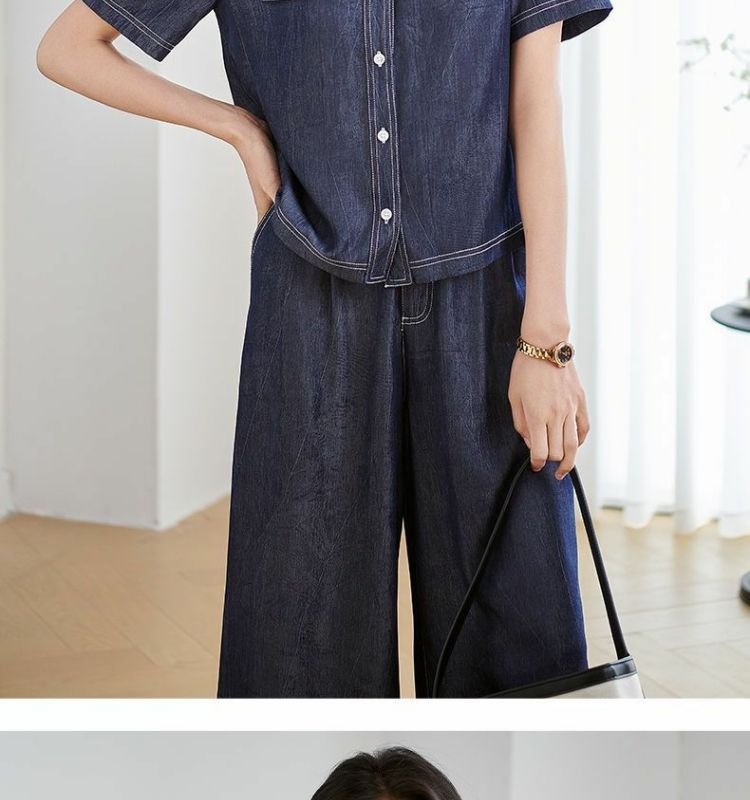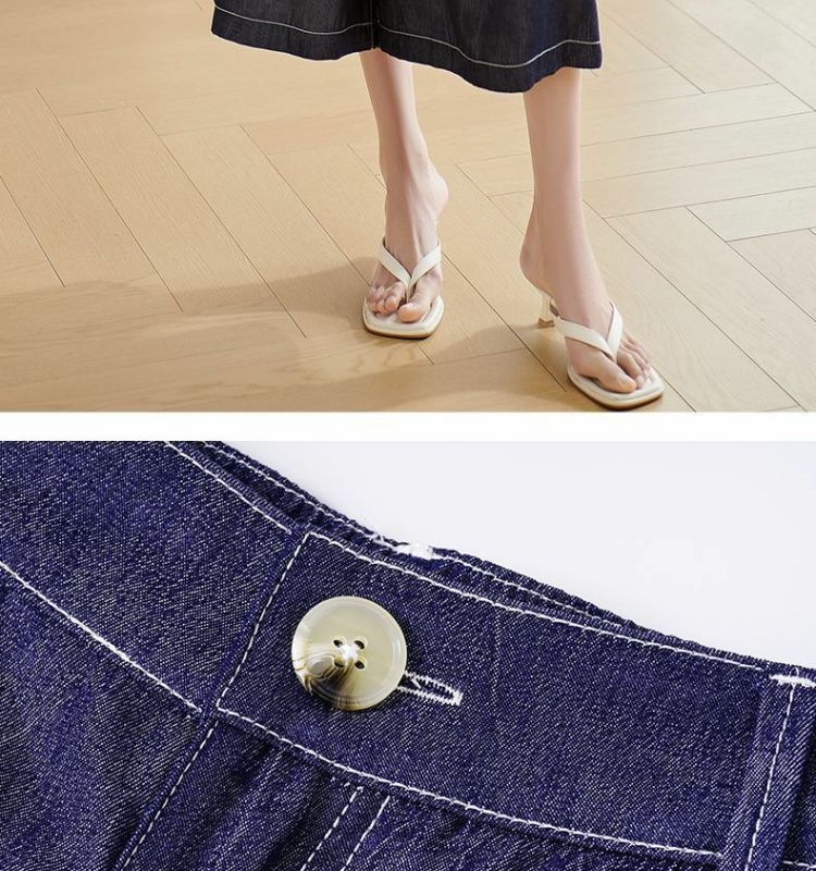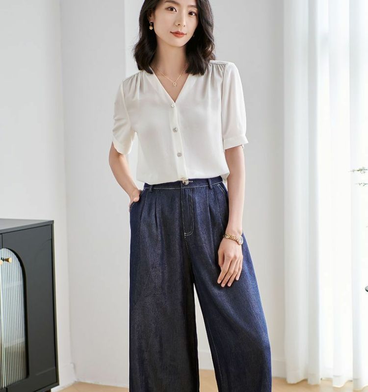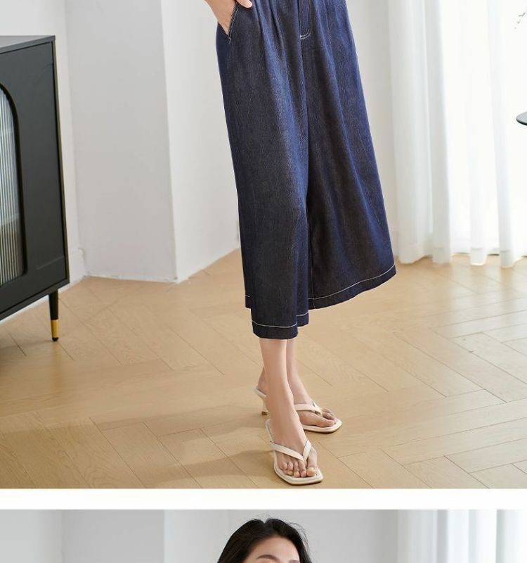米思阳2024夏季新款通勤简约牛仔休闲裤高腰显瘦垂感阔腿裤女2273