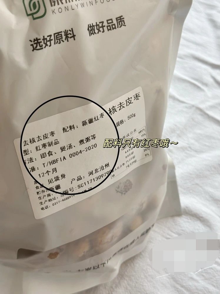 因为没有枣皮,所以吃起来非常软糯,每一颗红枣肉质都很饱满,吞咽时没有带枣皮的那种刮喉感,完完全全就是红枣的香甜感!!