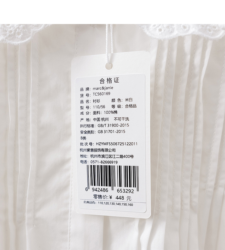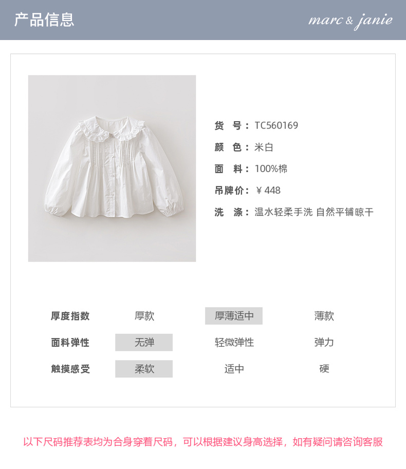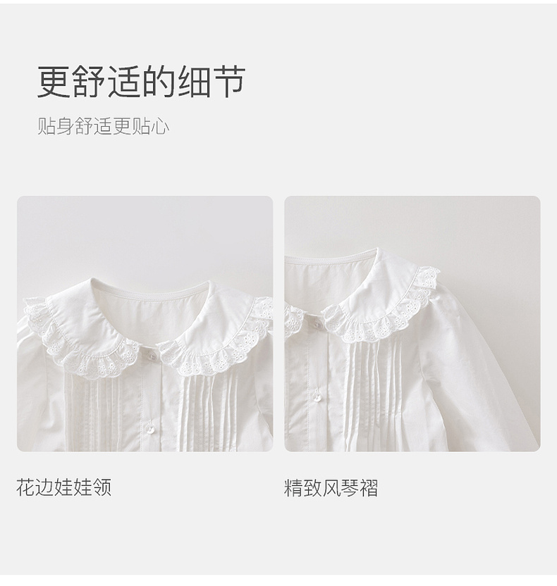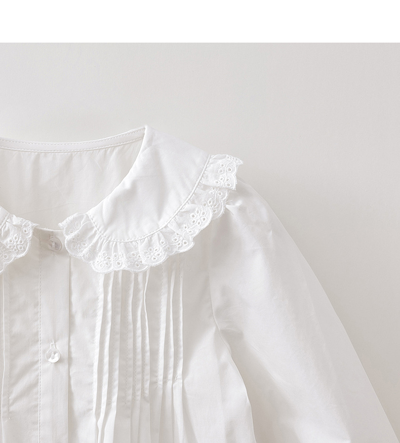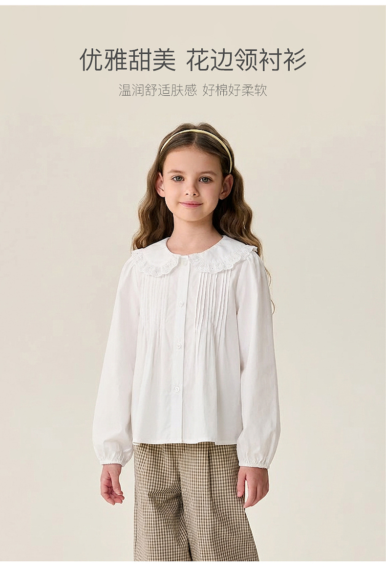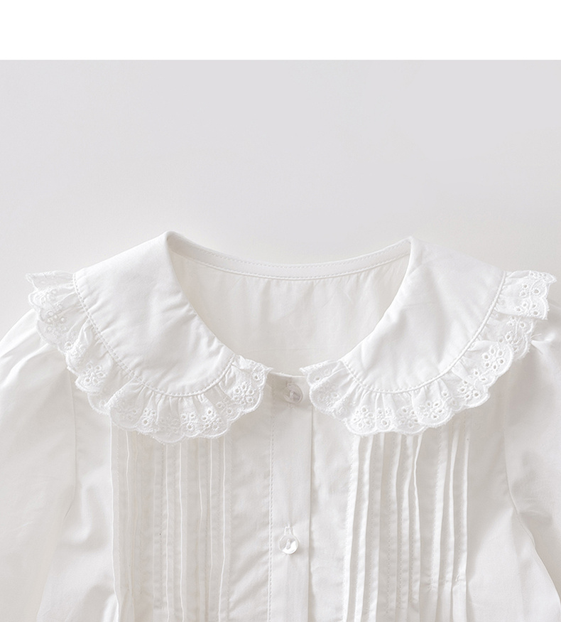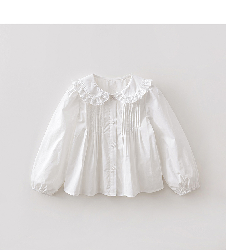 马克珍妮优雅甜美女童纯棉花边领衬衫2026年春装新款560169
