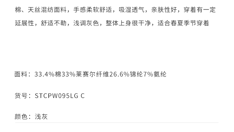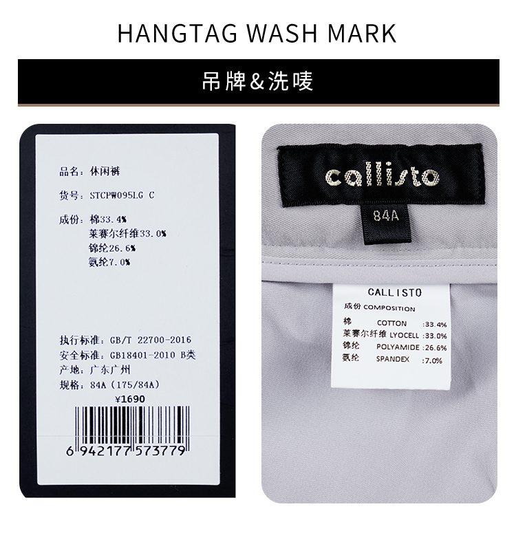 callisto弹力混纺休闲裤 STCPW095C