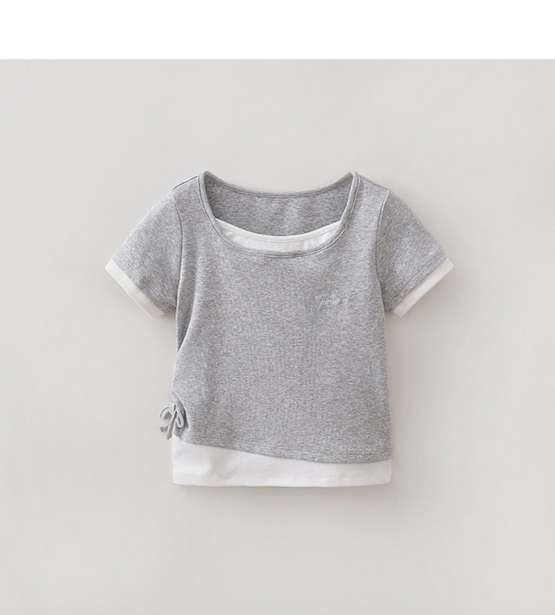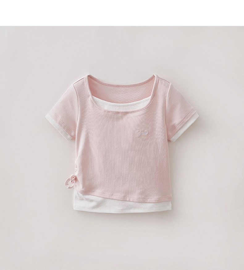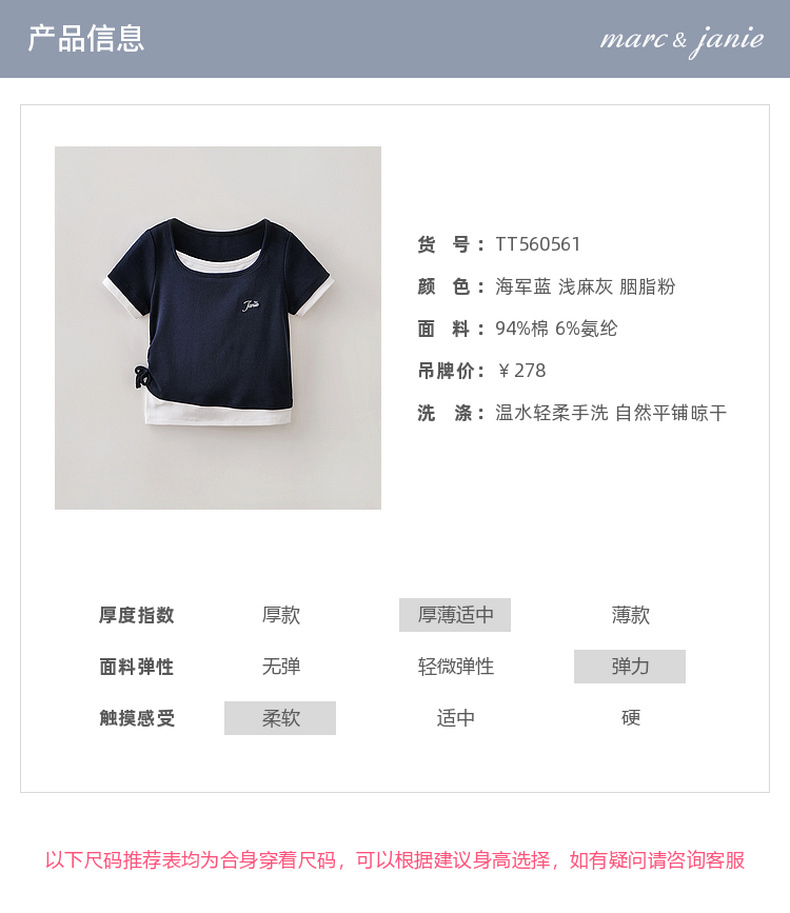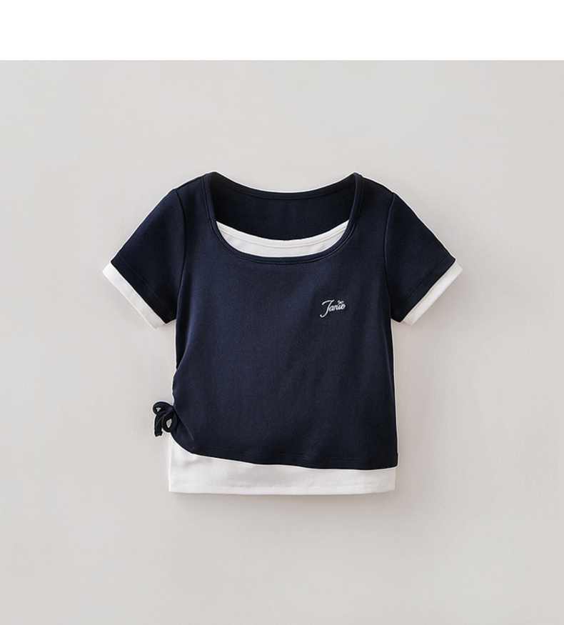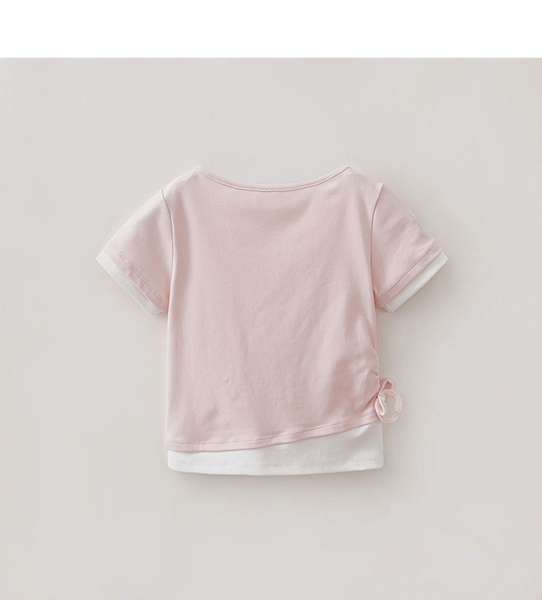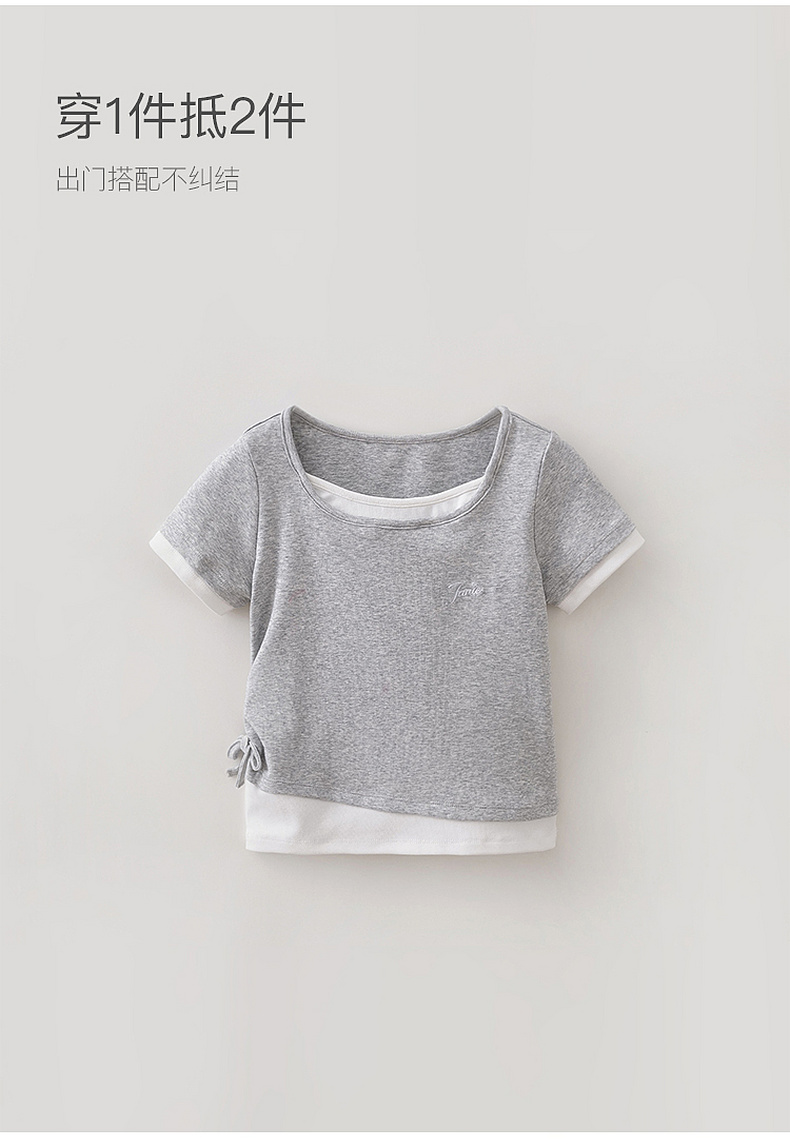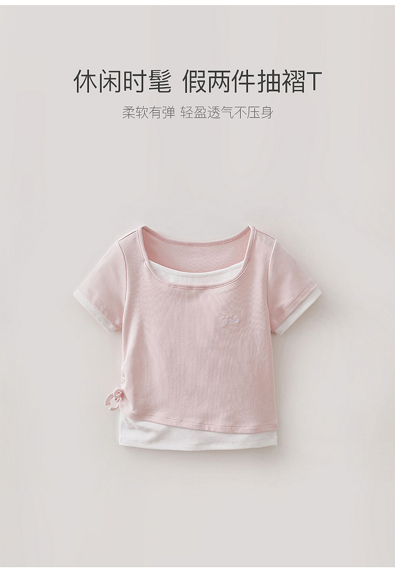 马克珍妮休闲时髦女童假两件抽褶T2026年夏装新款560561
