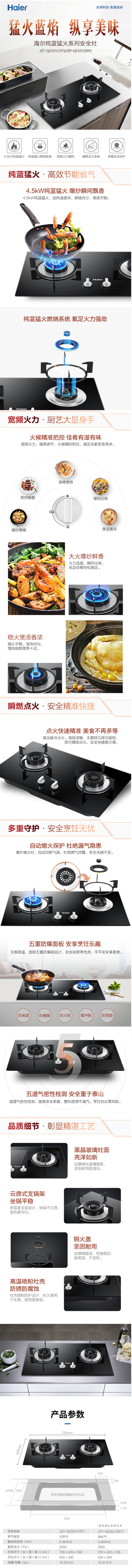 海尔(Haier)(509394 )燃气灶台嵌两用双灶钢化玻璃灶面五重防爆熄火保护天然气4.5KW大火力灶Q2321 【天然气】钢化玻璃灶JZT-Q2321
