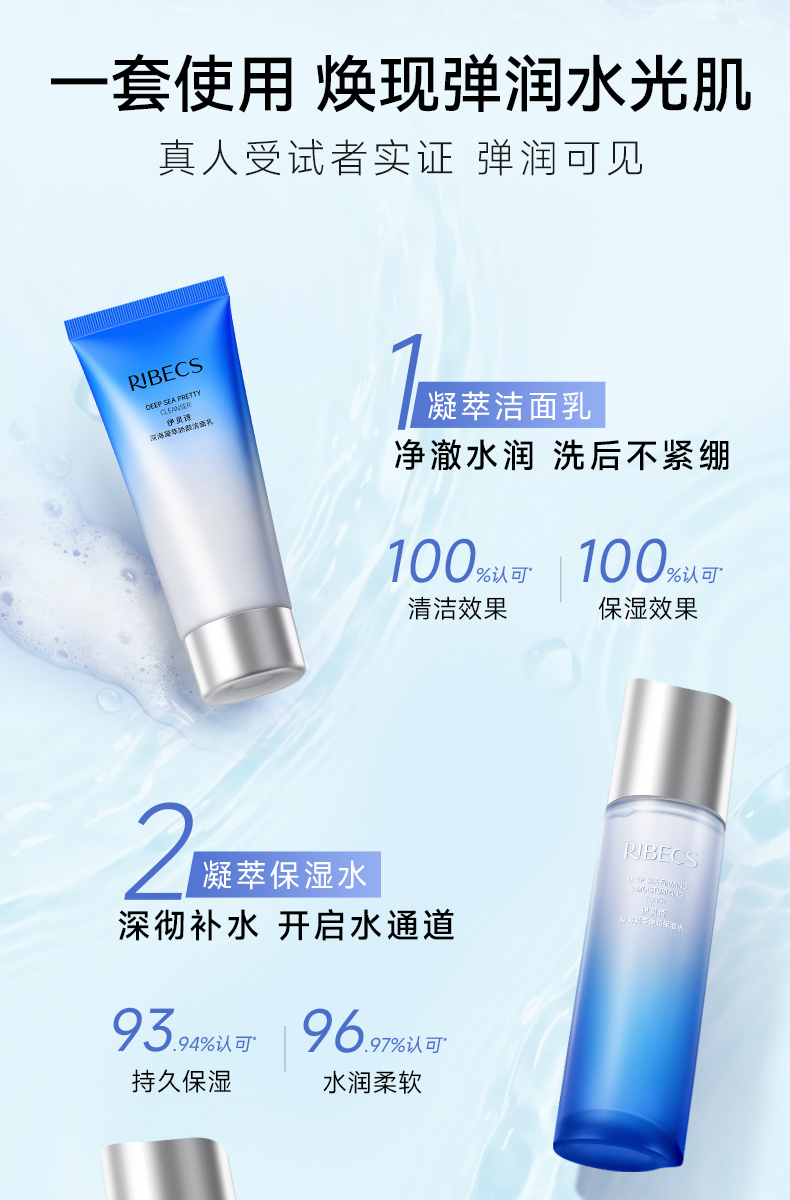 【全新升级】伊贝诗深海凝萃水乳套装补水保湿紧致弹润化妆护肤品官网正品套盒