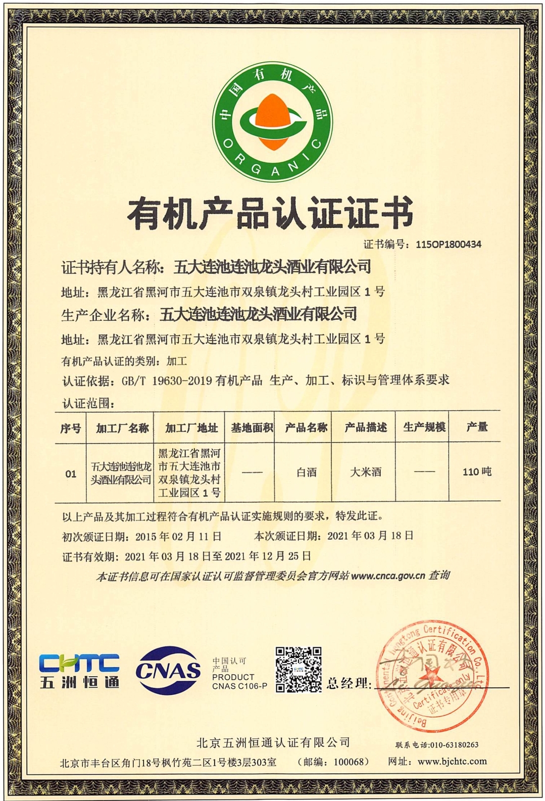 莲池老窖有机白酒 五大连池