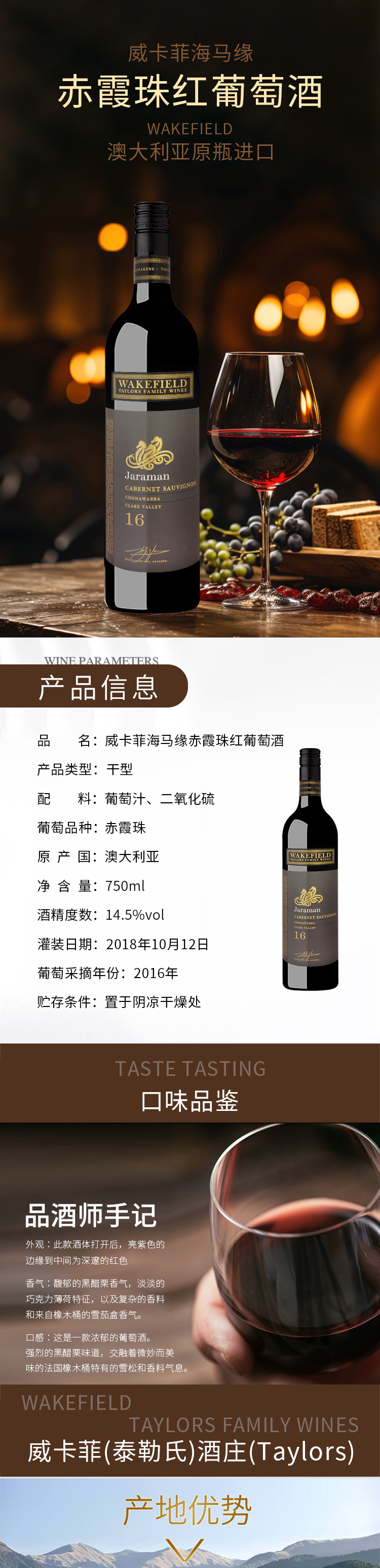 澳大利亚进口威卡菲海马缘赤霞珠红葡萄酒750ml