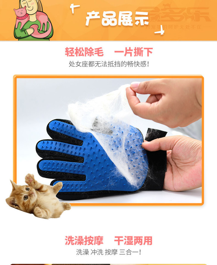 4.蓝色撸猫去浮毛手套,日常价9.9元