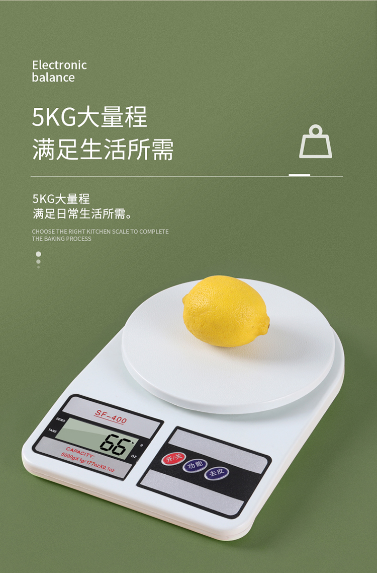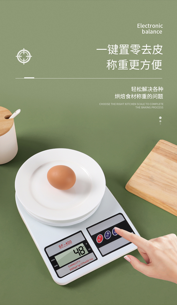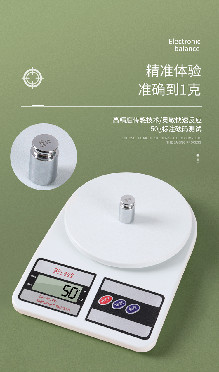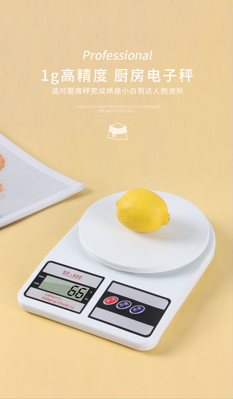 拜杰(Baijie)厨房秤 家用电子秤食物秤厨房烘培电子称 1g/5kg精准电子秤SF-400