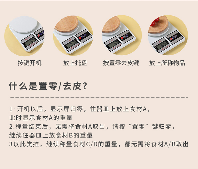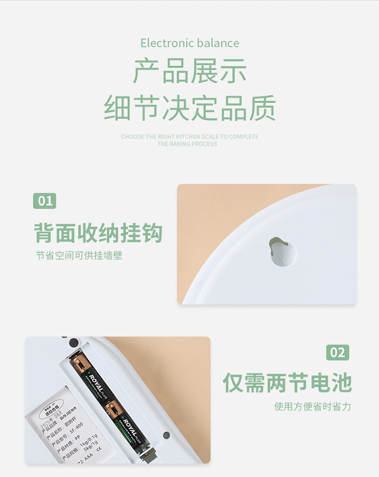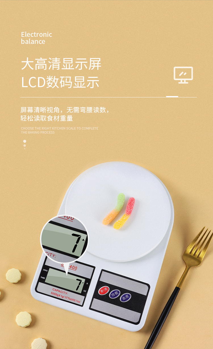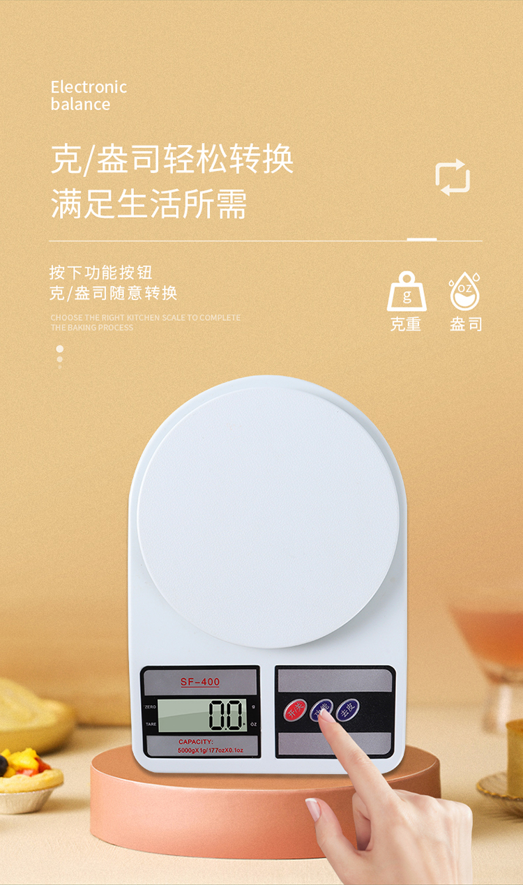 拜杰(Baijie)厨房秤 家用电子秤食物秤厨房烘培电子称 1g/5kg精准电子秤SF-400