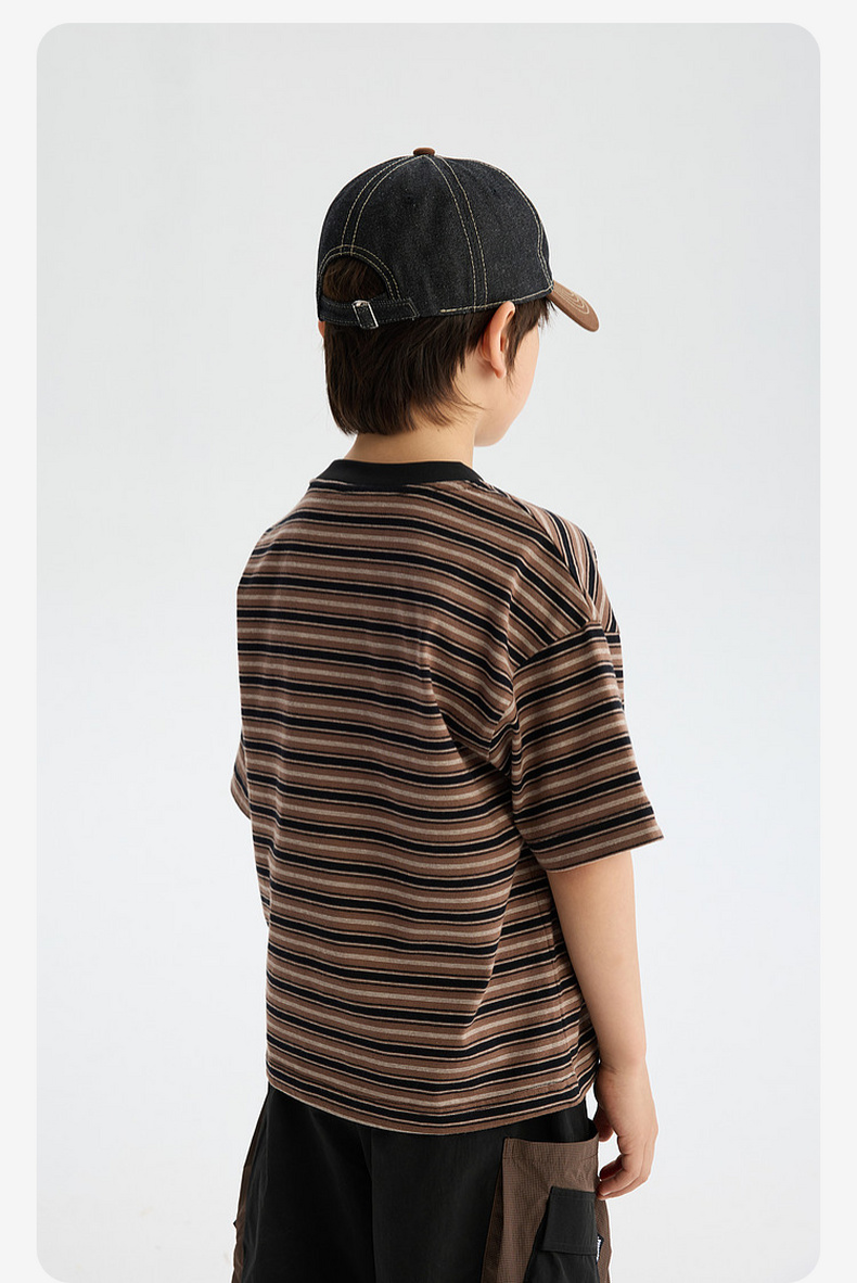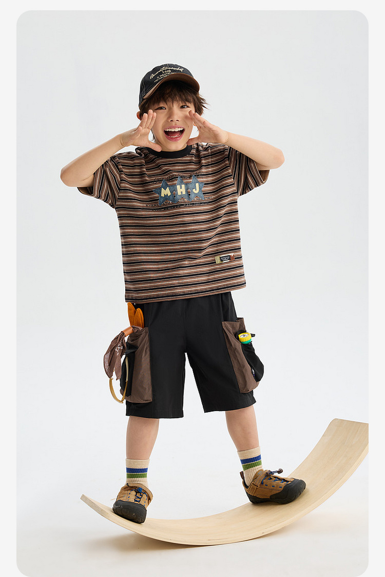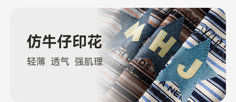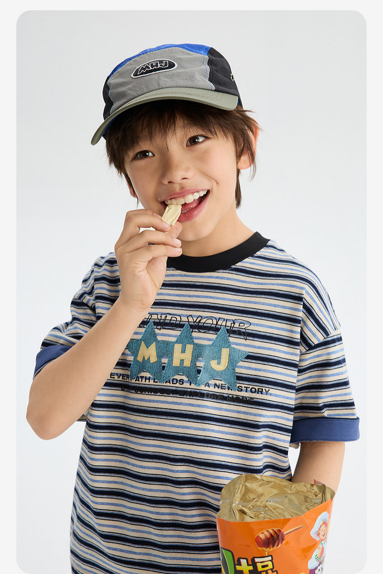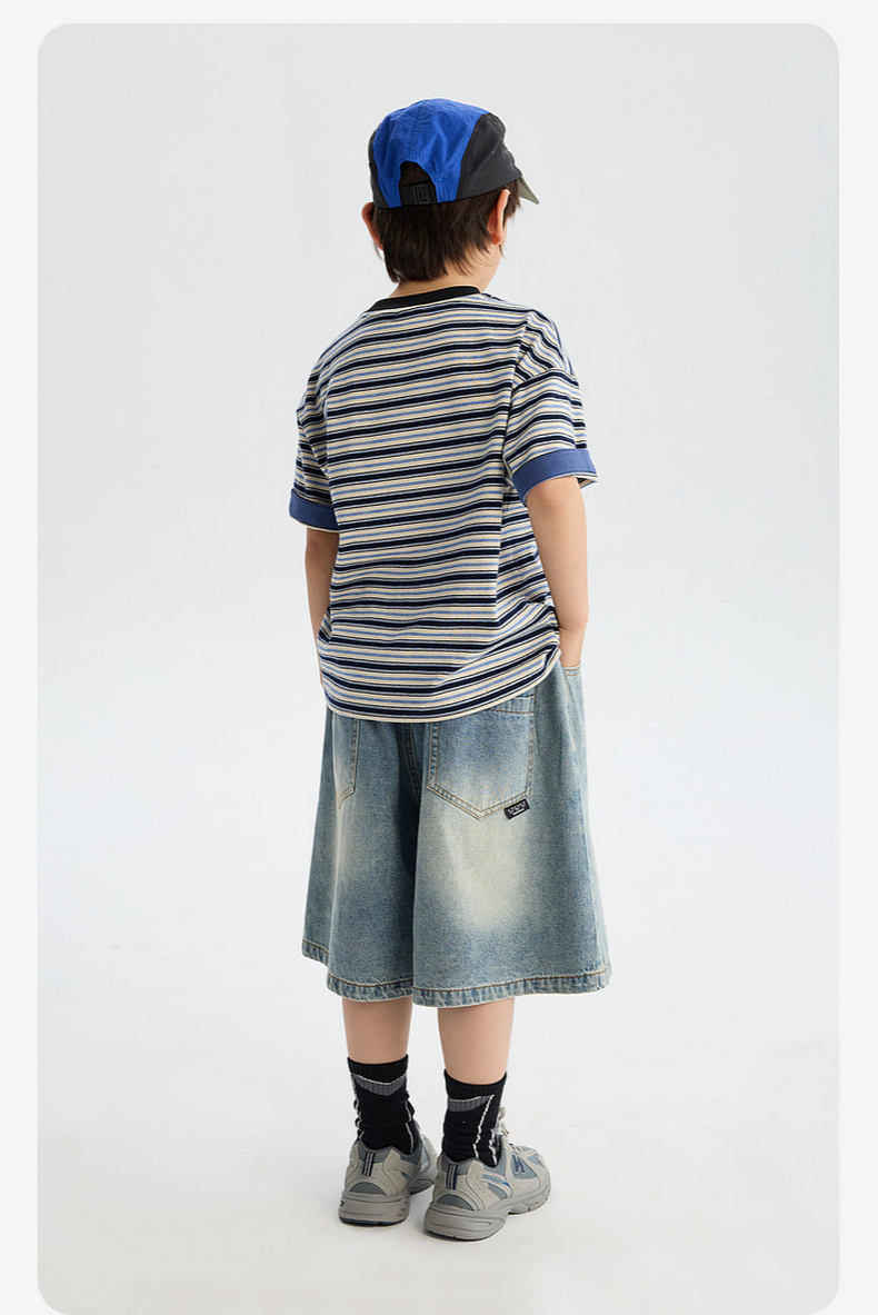 MANHOJIA【牛仔星星T】儿童T恤牛仔印花复古条纹全棉亲肤短袖T