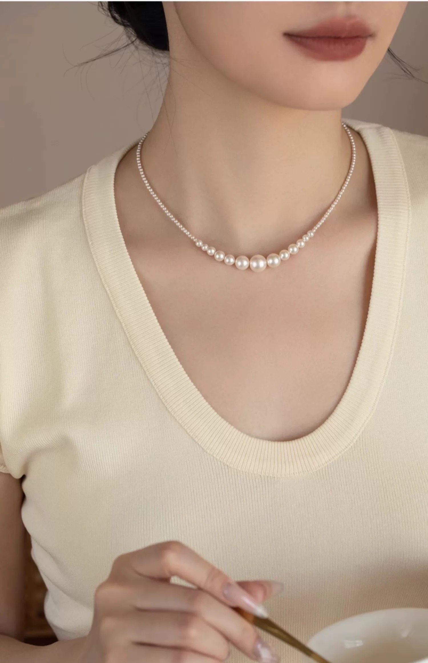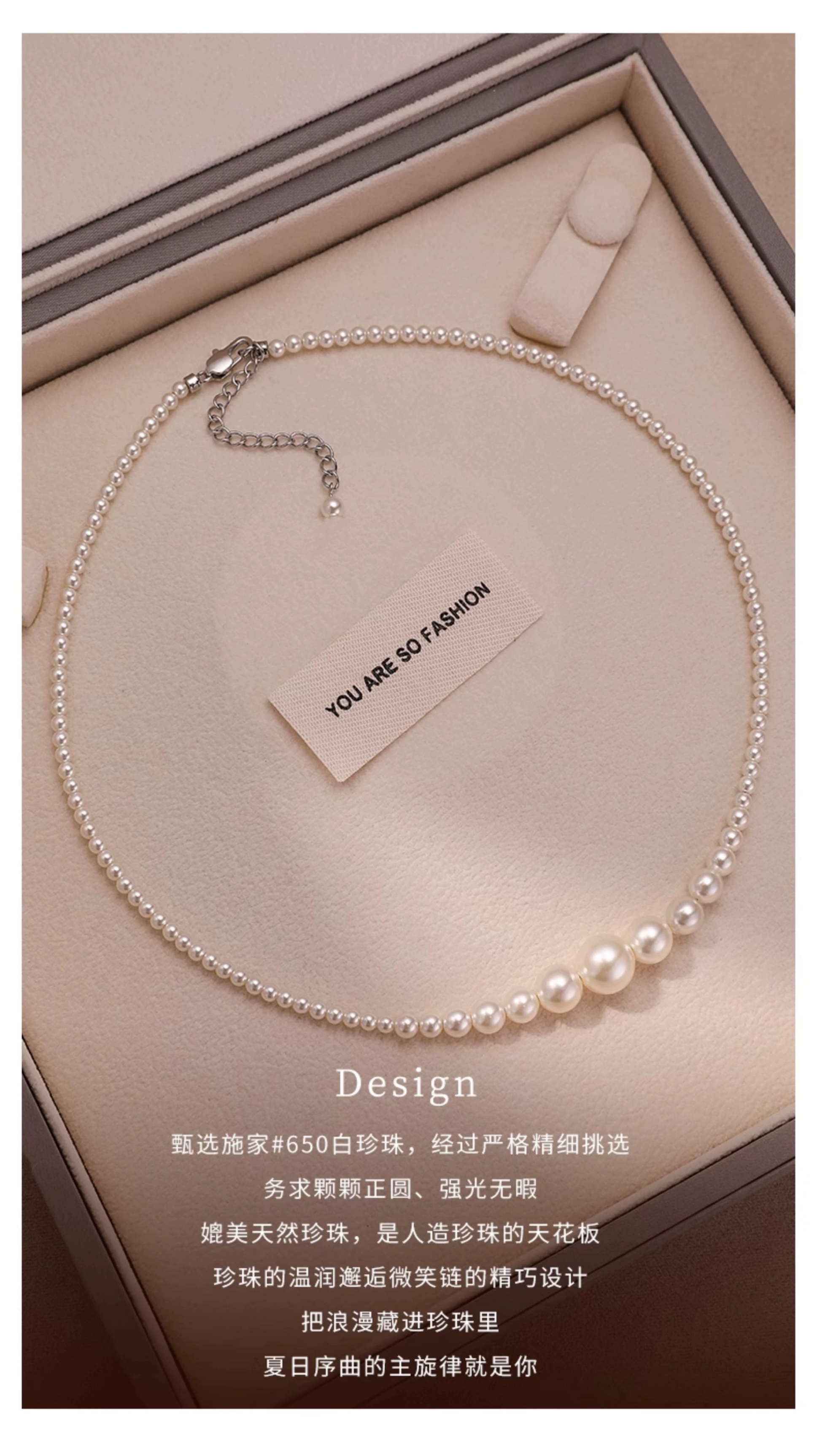 Ps:产品材质为“施家珍珠”,是一种人造水晶材质的仿真珍珠,由人造水晶和电镀彩色表层制作而成