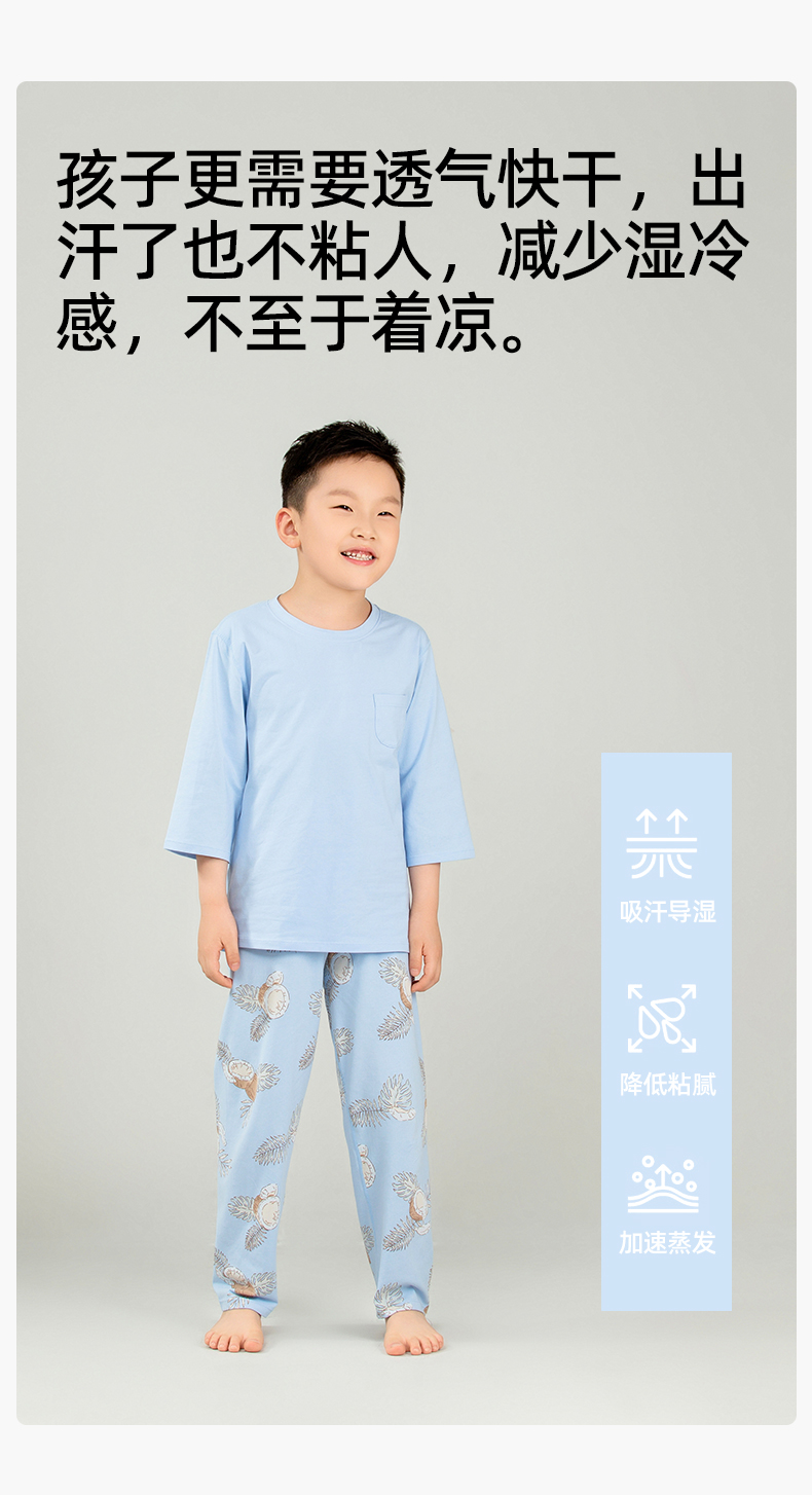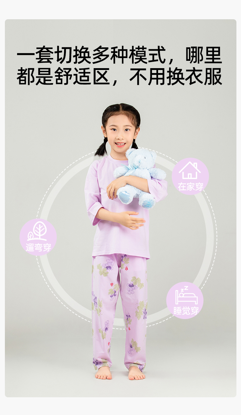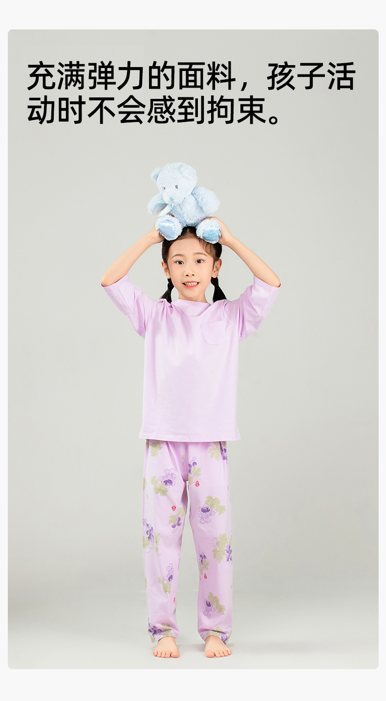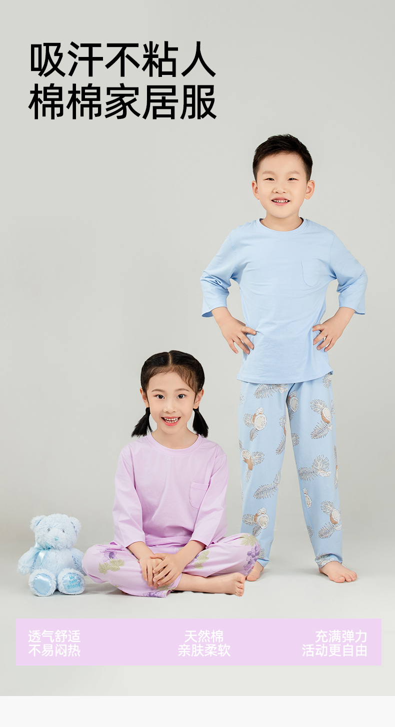 【商场同款】【五分袖长裤】熳洁儿 男女童94%棉卡通可爱家居服套装25203662