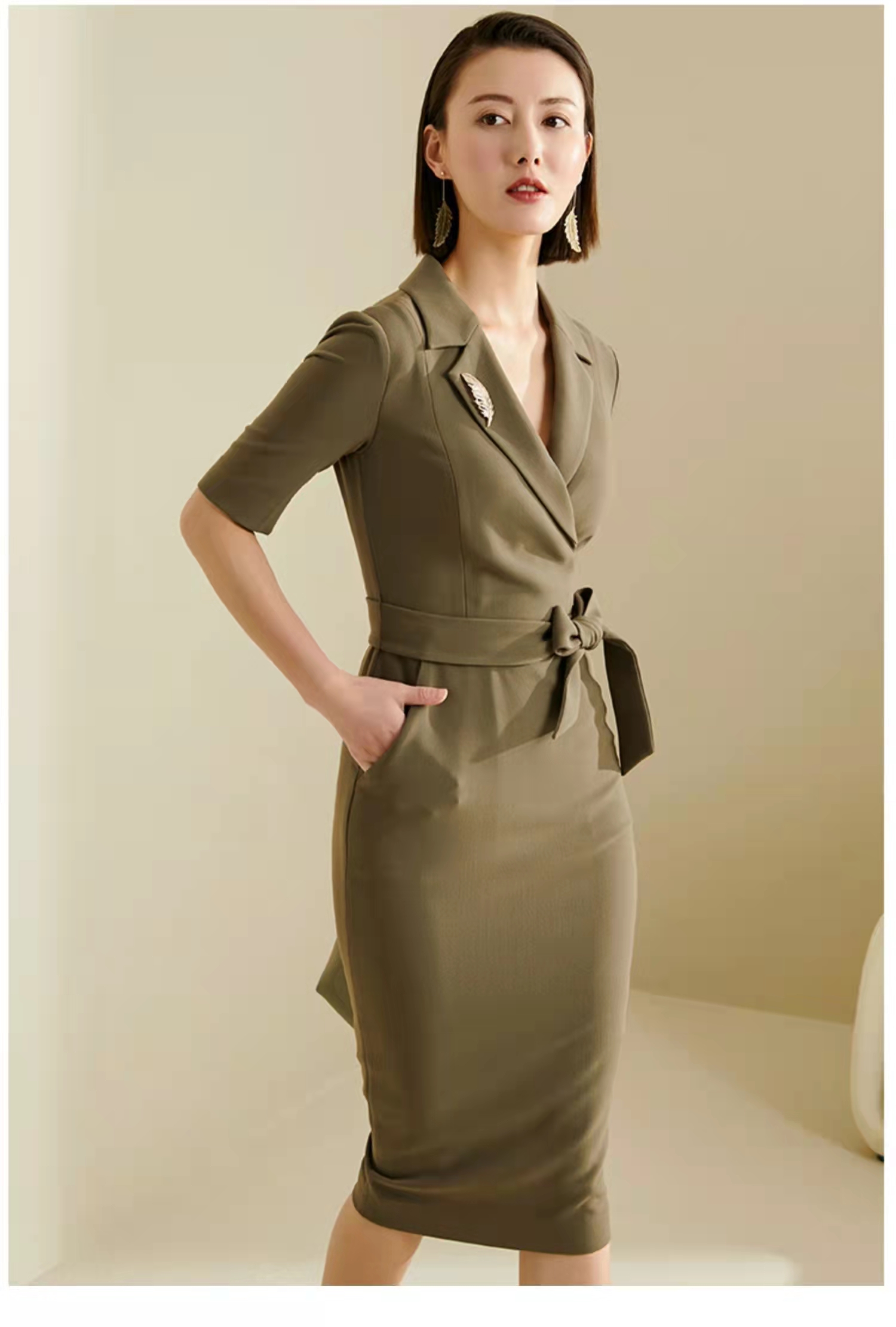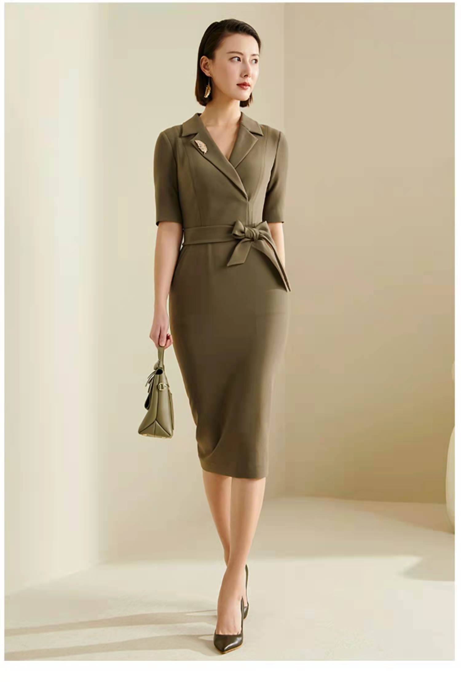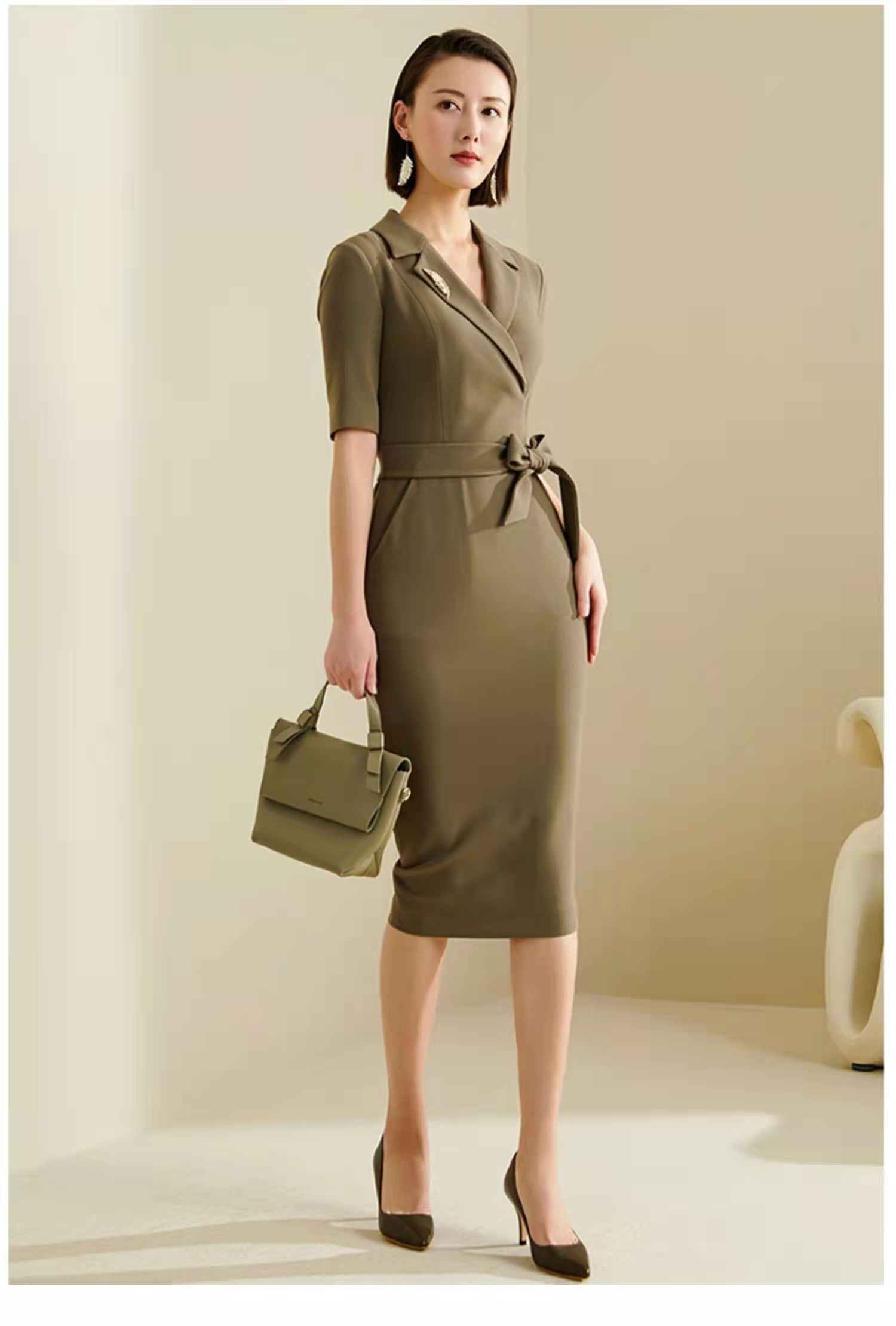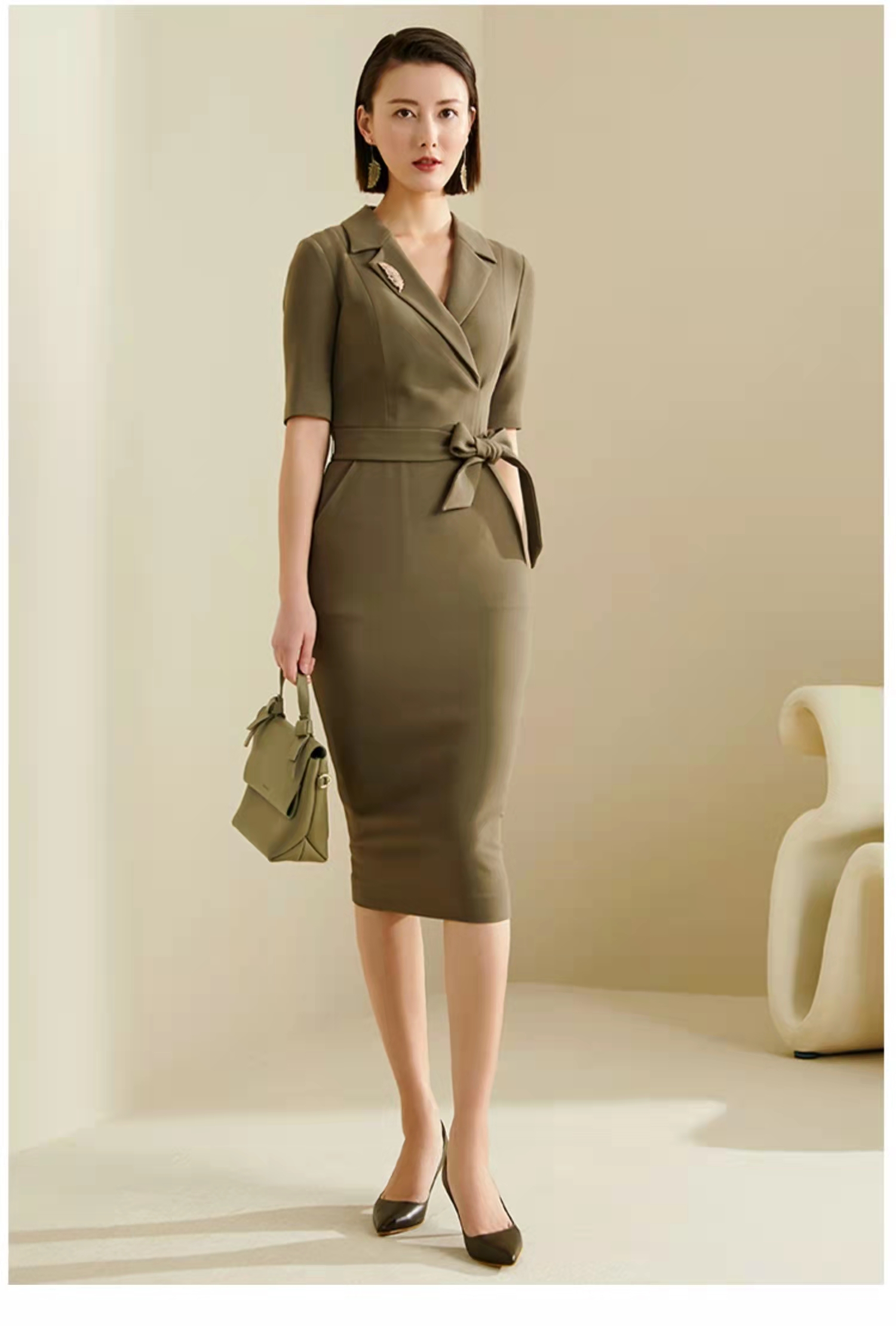 孤品 颈袖添香-连衣裙-“橄榄绿” 精英女性 干练连衣裙 定制颜色“橄榄绿” 小众有格调 显白 高级 修身 显瘦JG481672T1X5不退可换