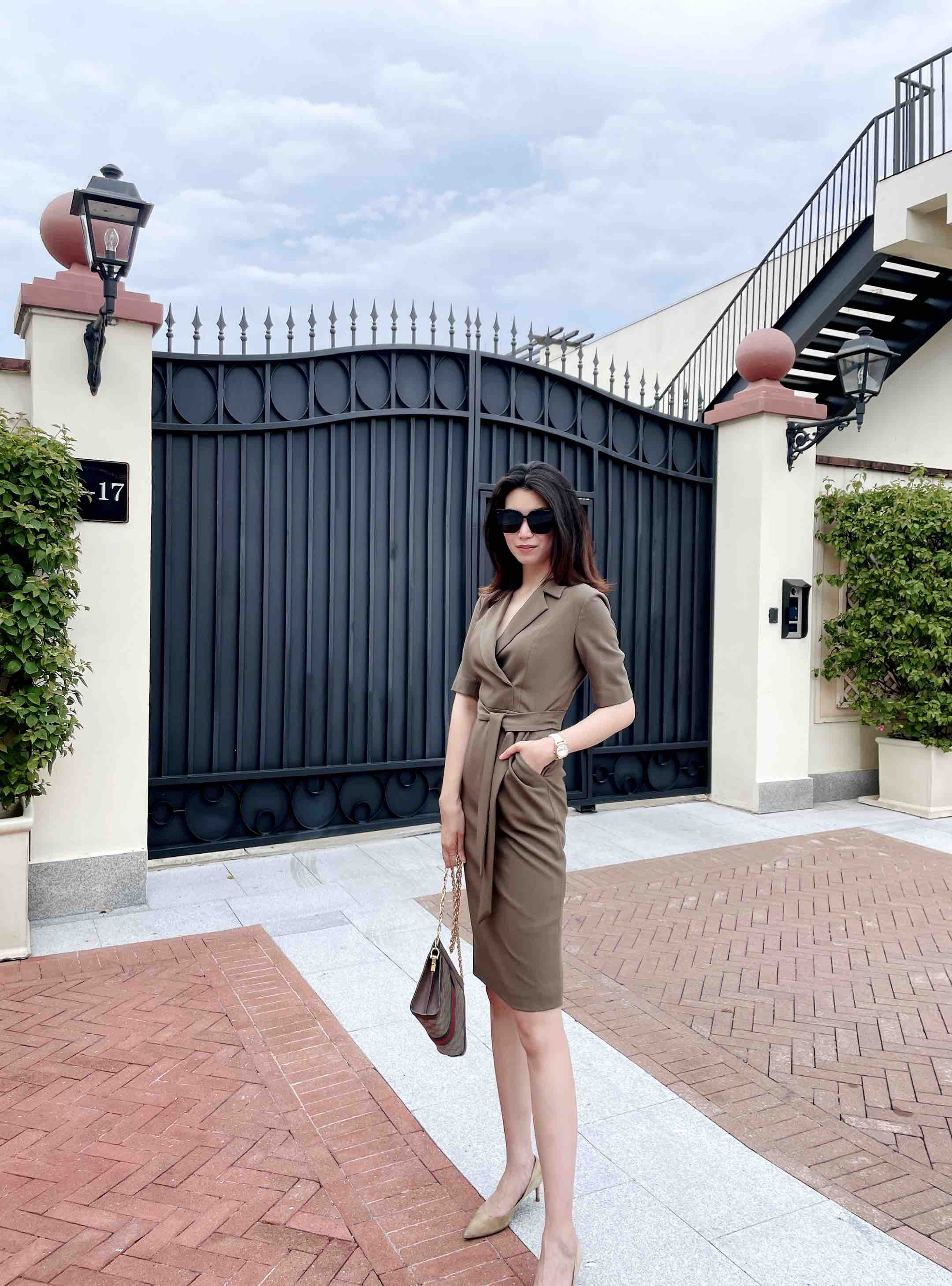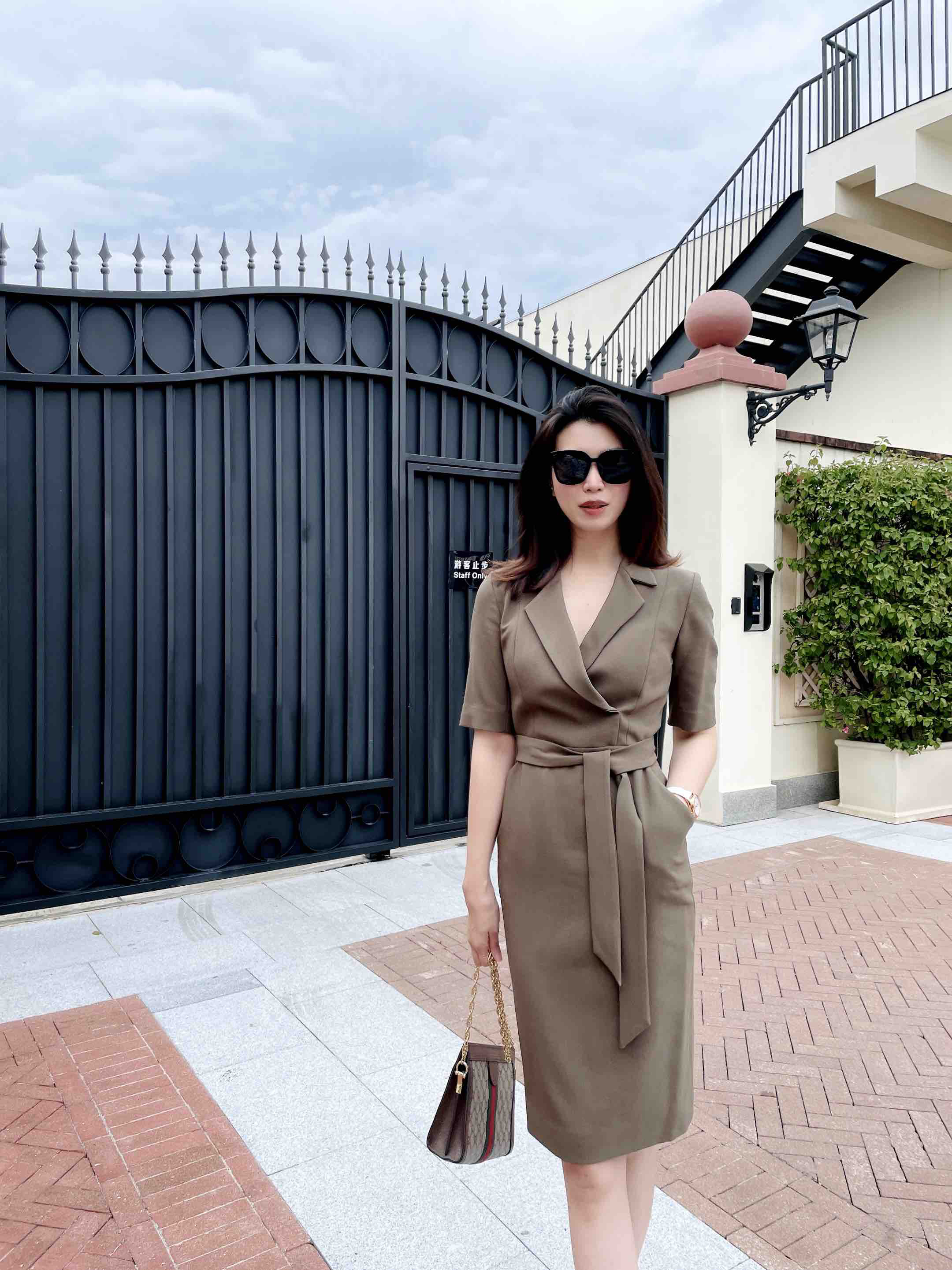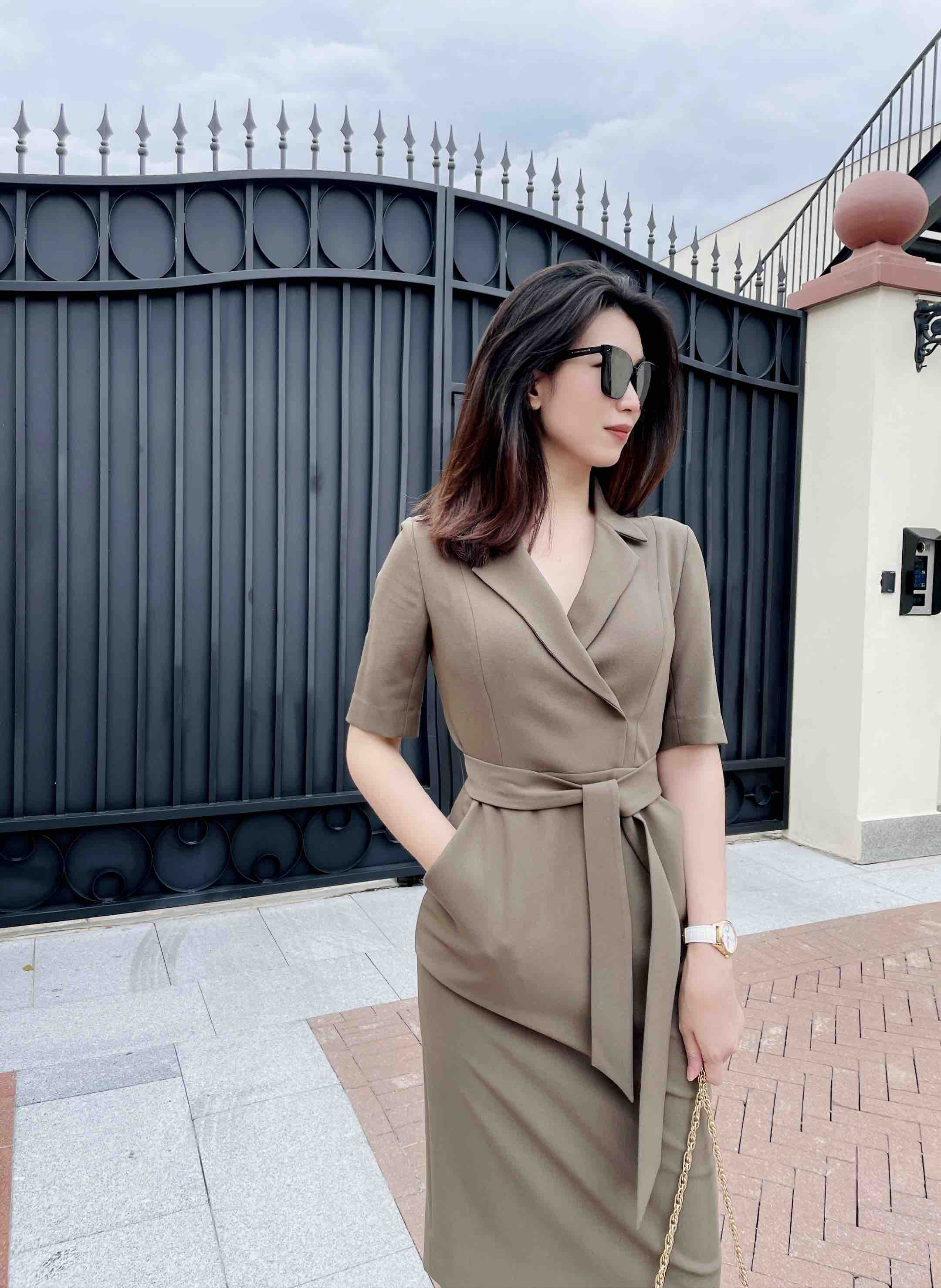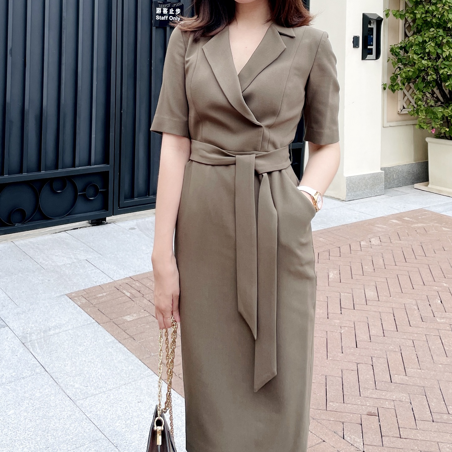 孤品 颈袖添香-连衣裙-“橄榄绿” 精英女性 干练连衣裙 定制颜色“橄榄绿” 小众有格调 显白 高级 修身 显瘦JG481672T1X5不退可换