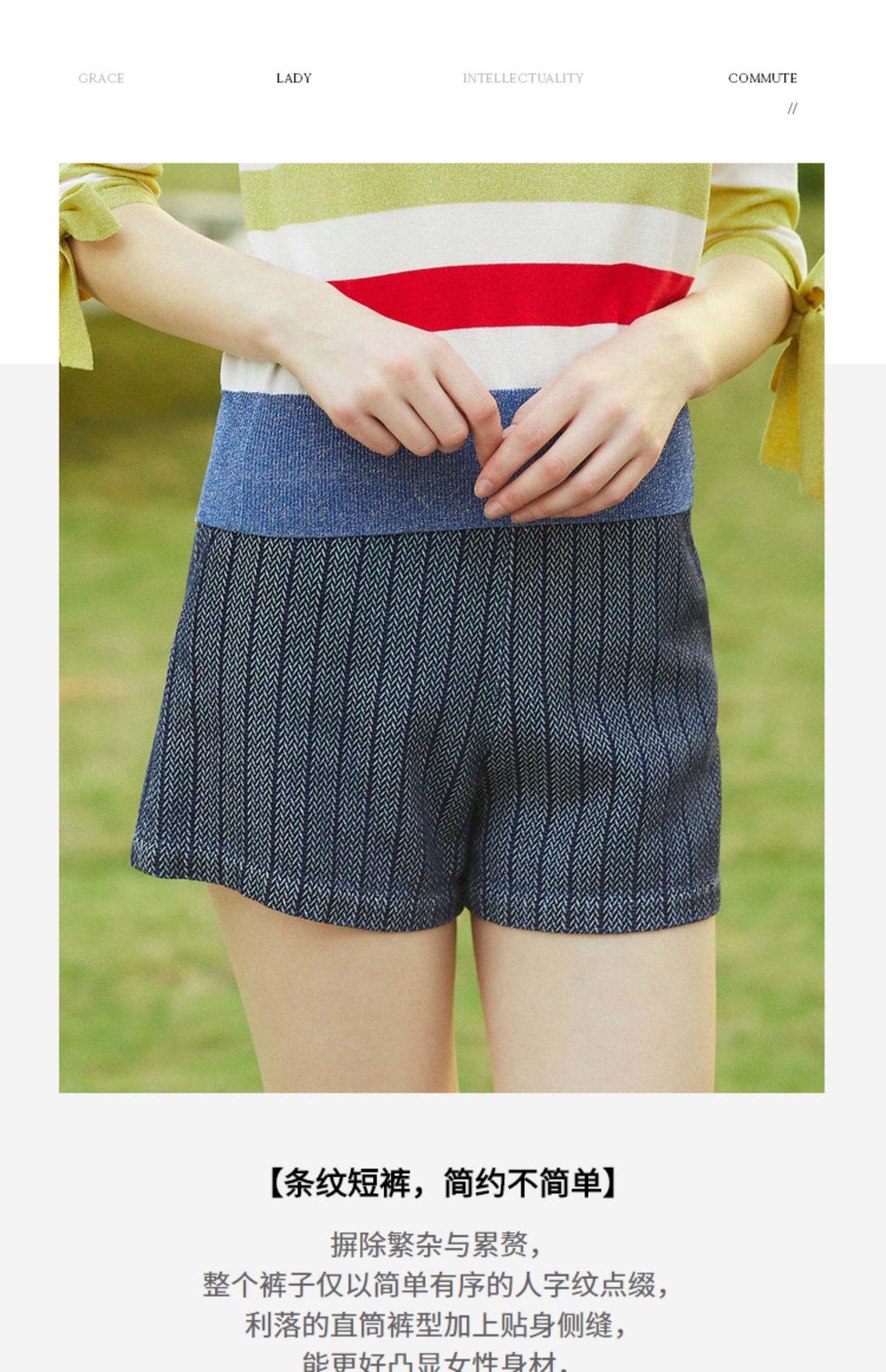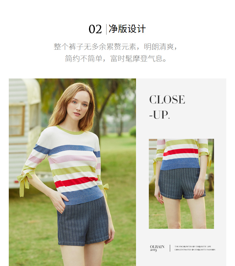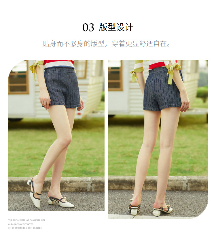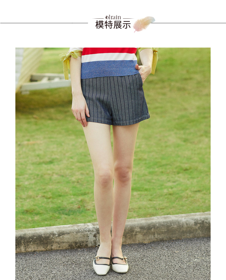 欧芮儿条纹休闲裤女夏季2023年新款时尚气质修身直筒纯棉包臀短裤