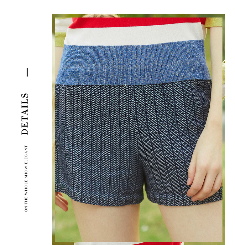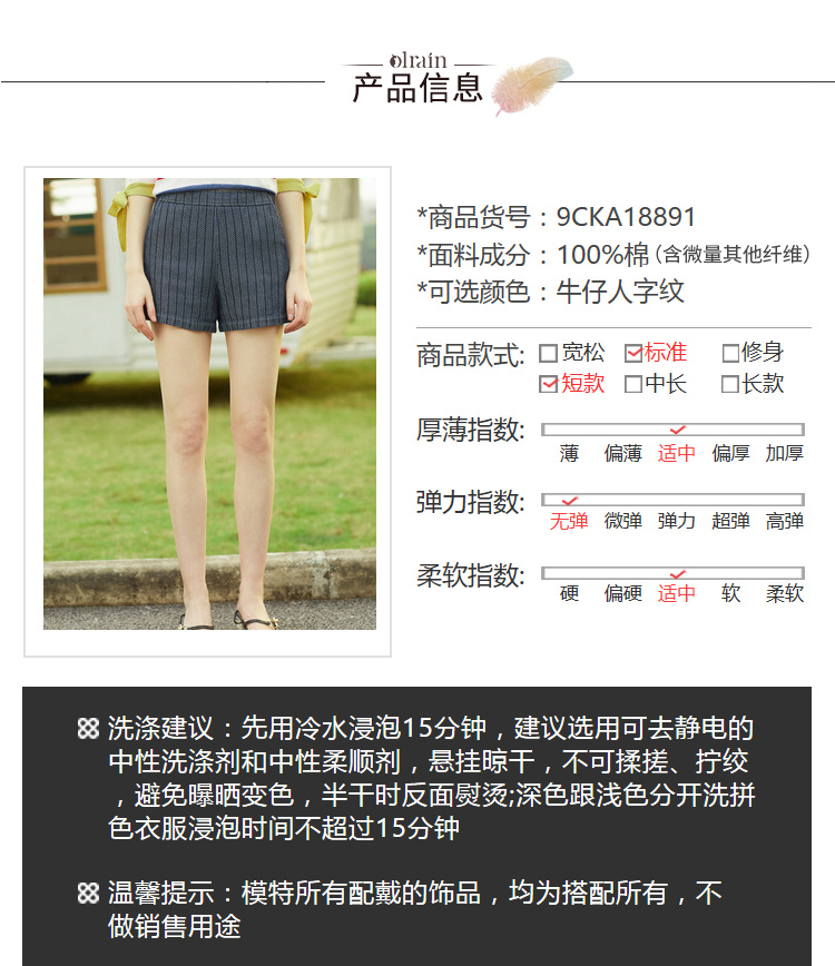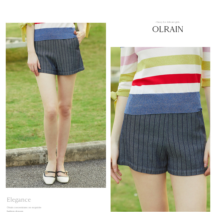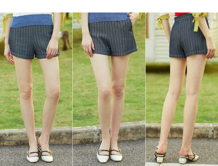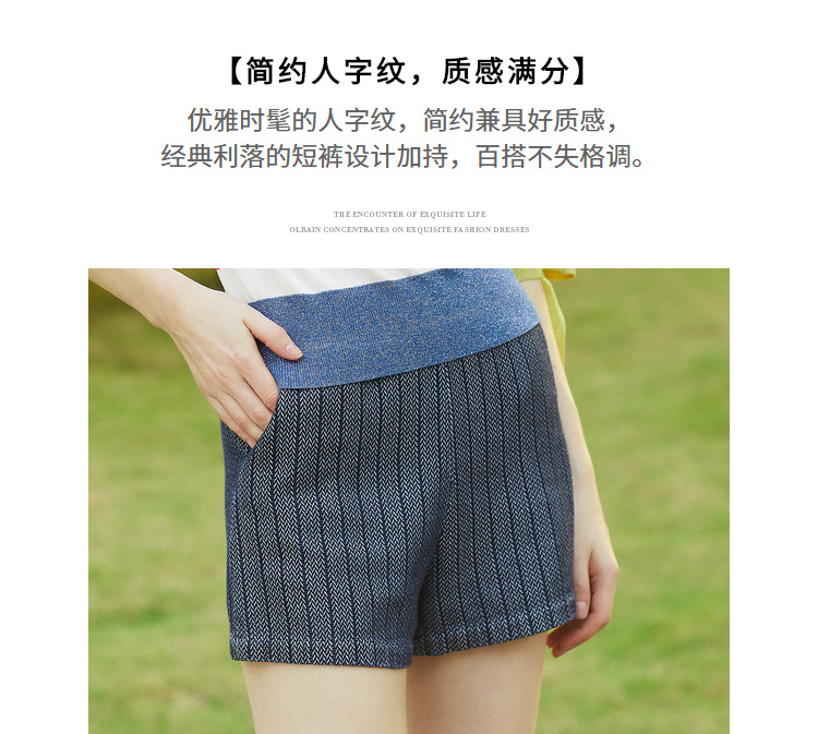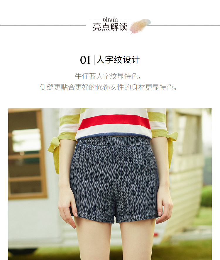欧芮儿条纹休闲裤女夏季2023年新款时尚气质修身直筒纯棉包臀短裤