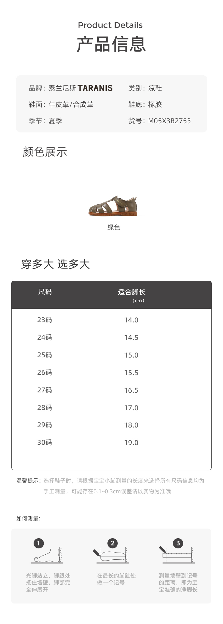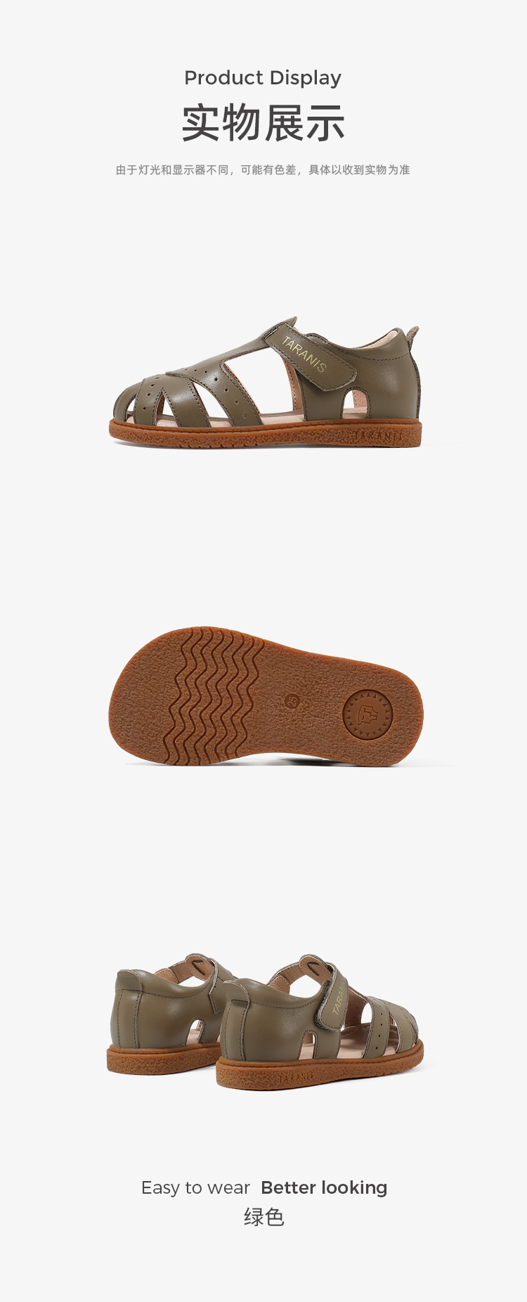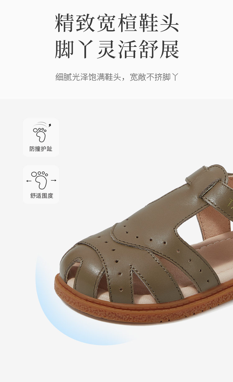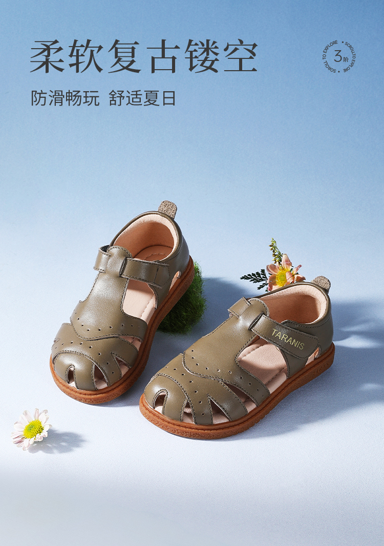泰兰尼斯夏季小童段复古镂空皮凉鞋休闲包头凉鞋