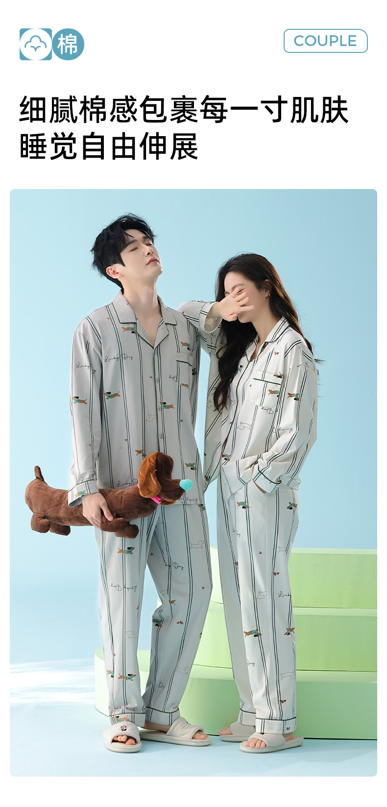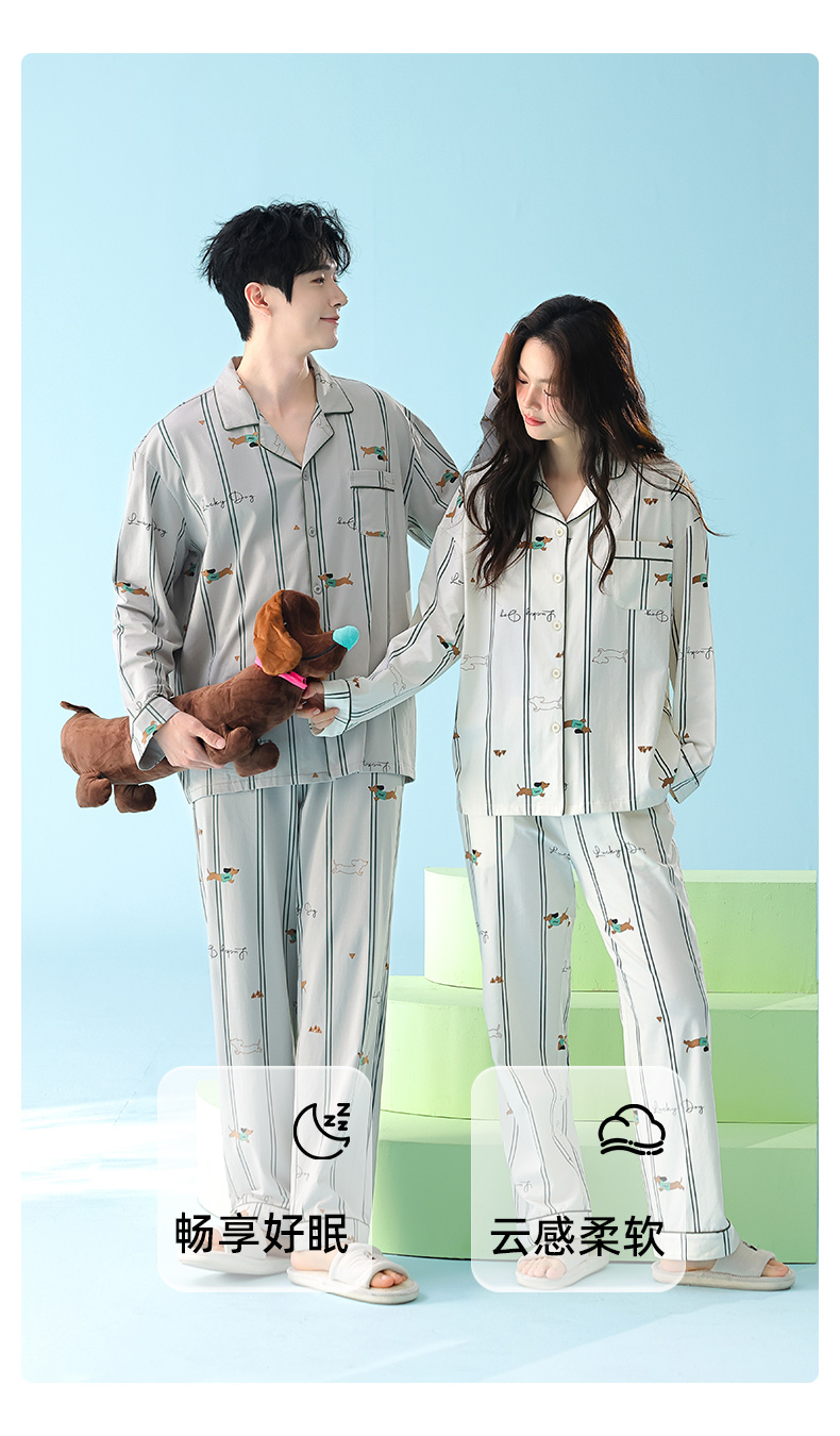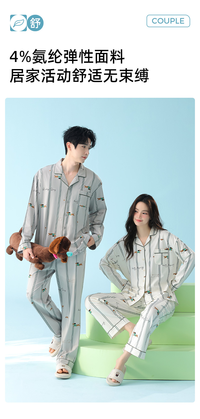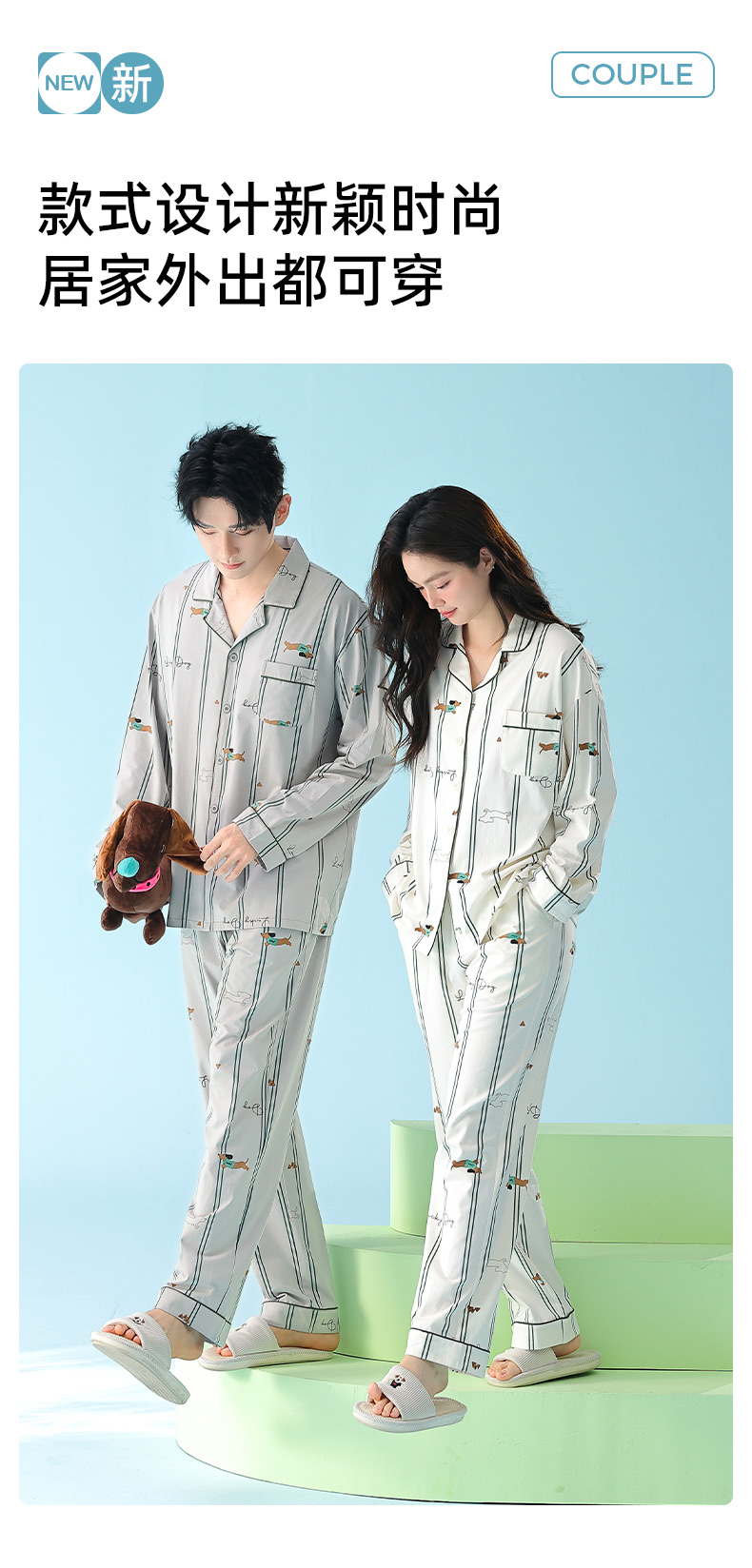 【品牌直发 换季焕新】芬腾情侣睡衣春秋季纯棉条纹长袖套装时尚休闲宽松家居服
