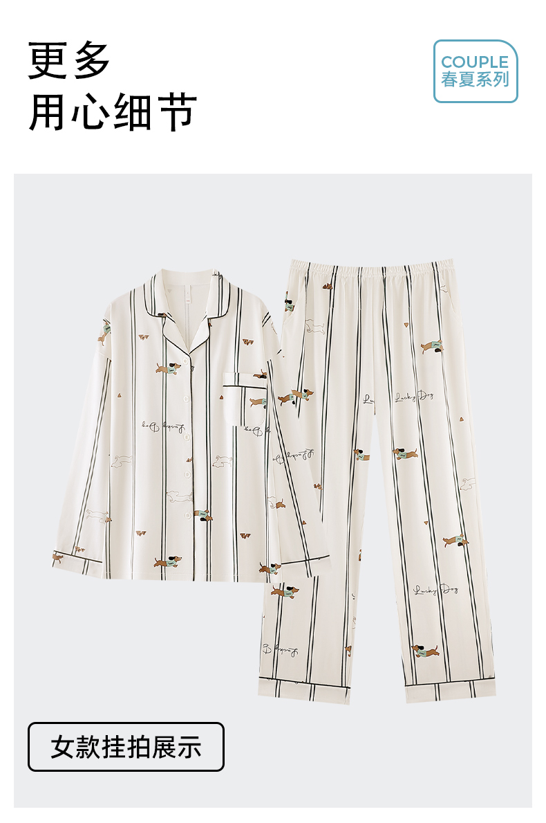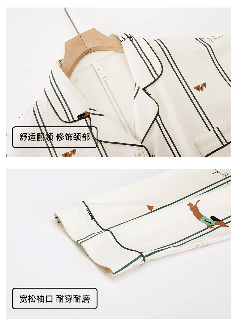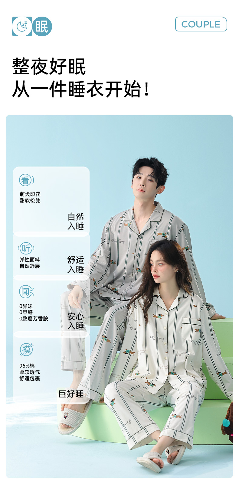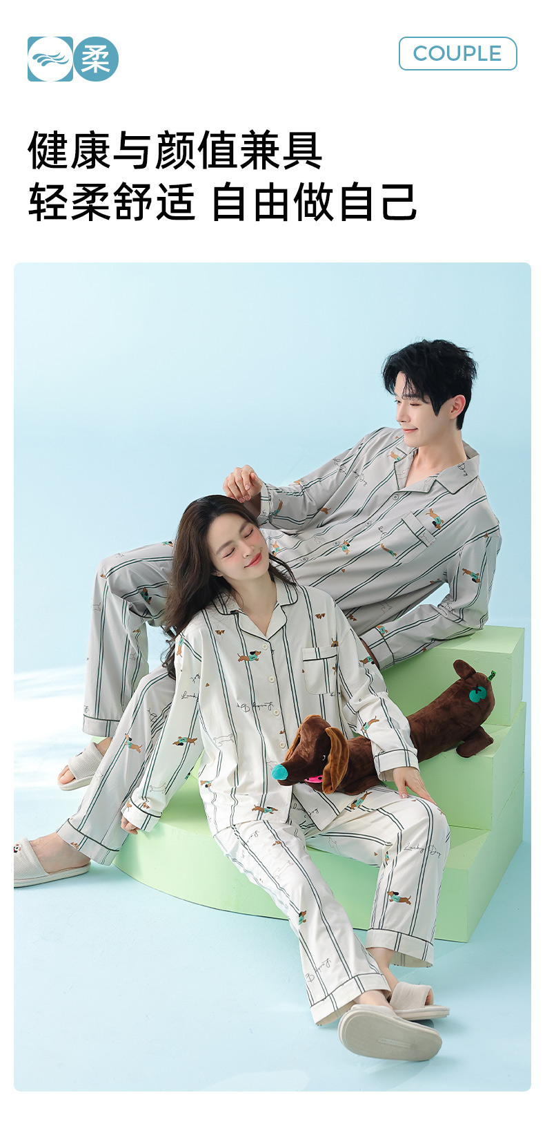 【品牌直发 换季焕新】芬腾情侣睡衣春秋季纯棉条纹长袖套装时尚休闲宽松家居服
