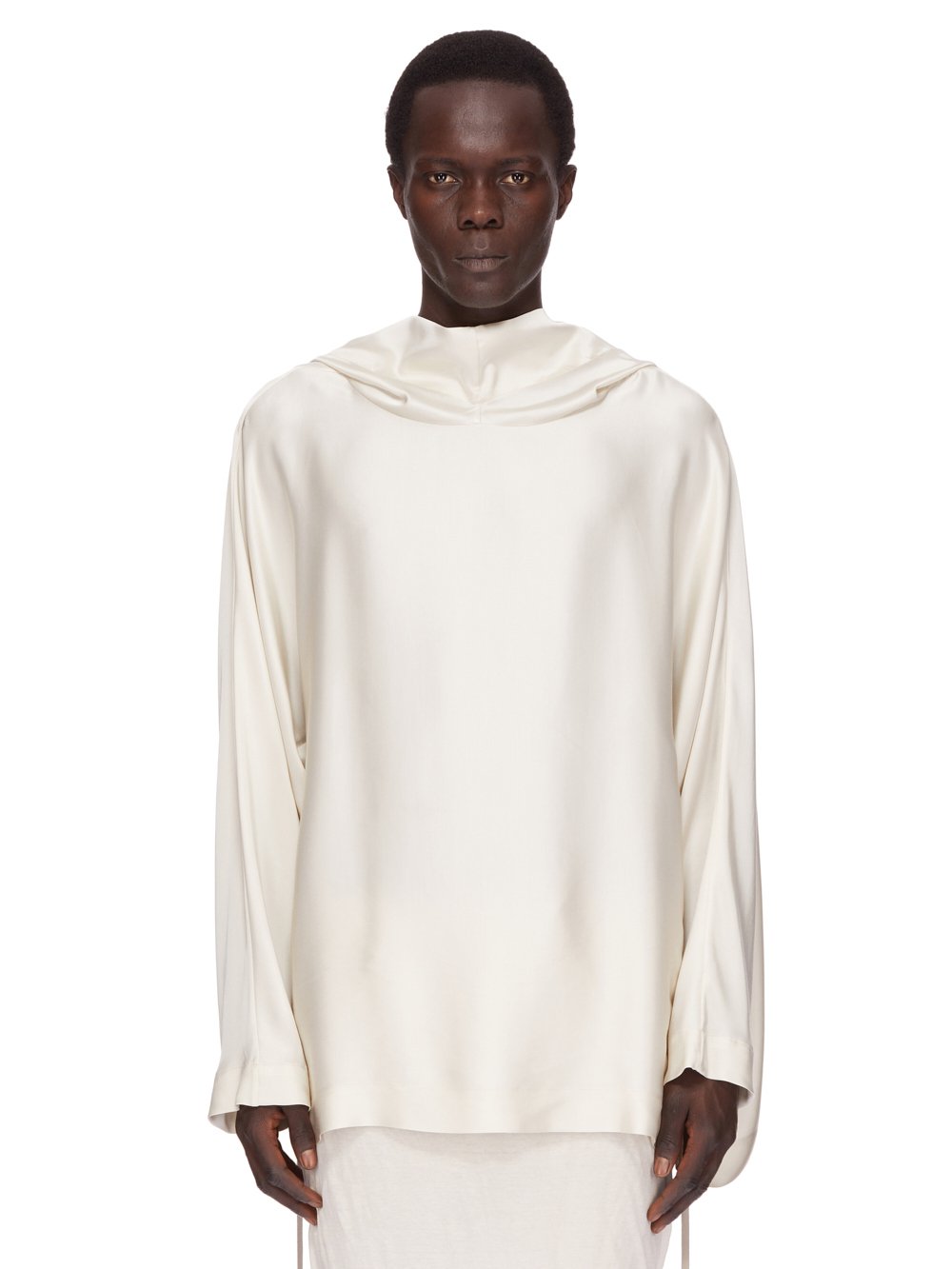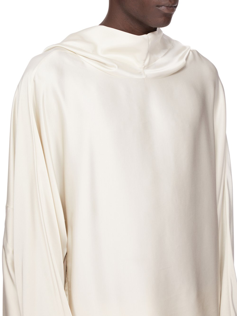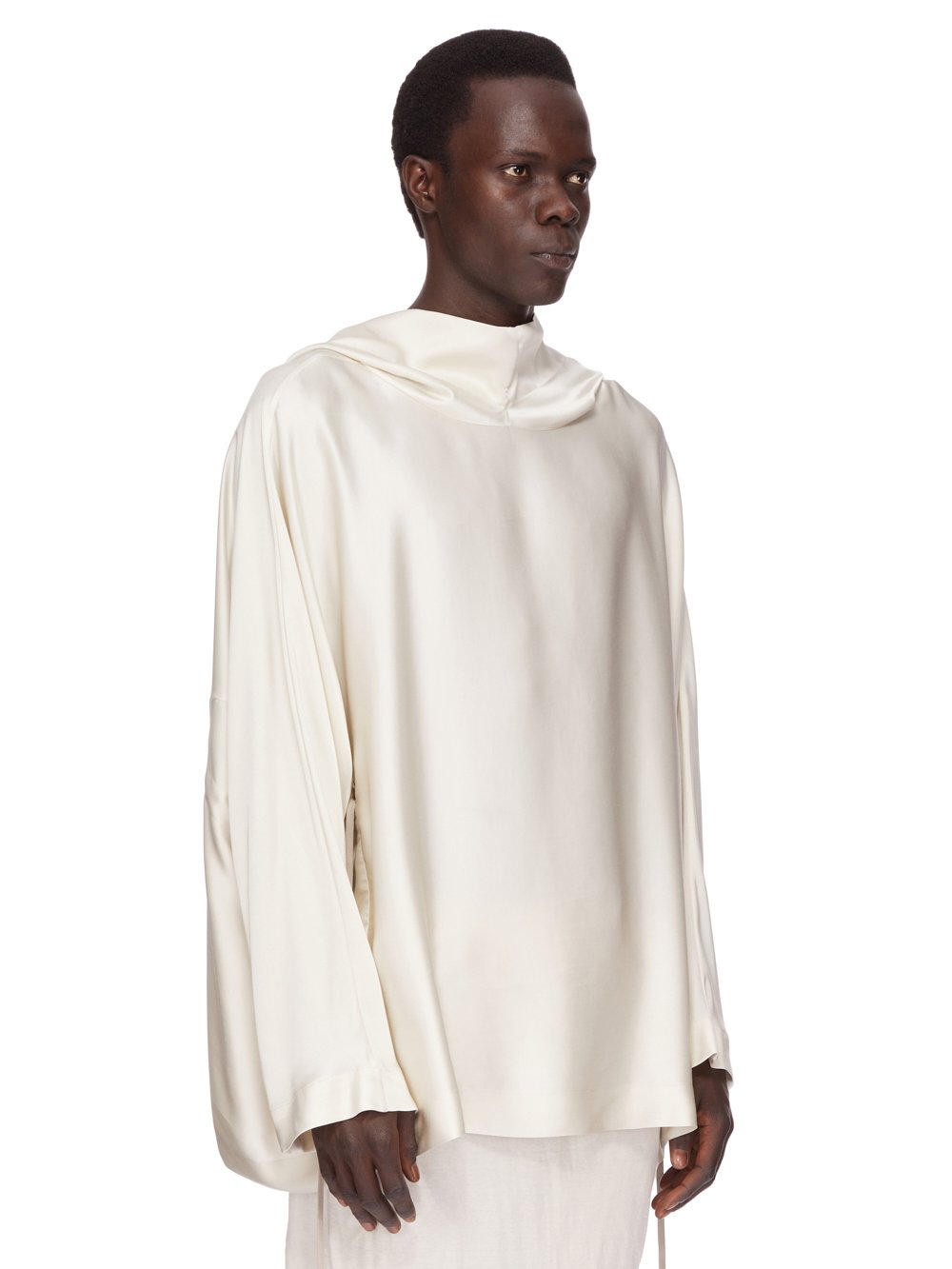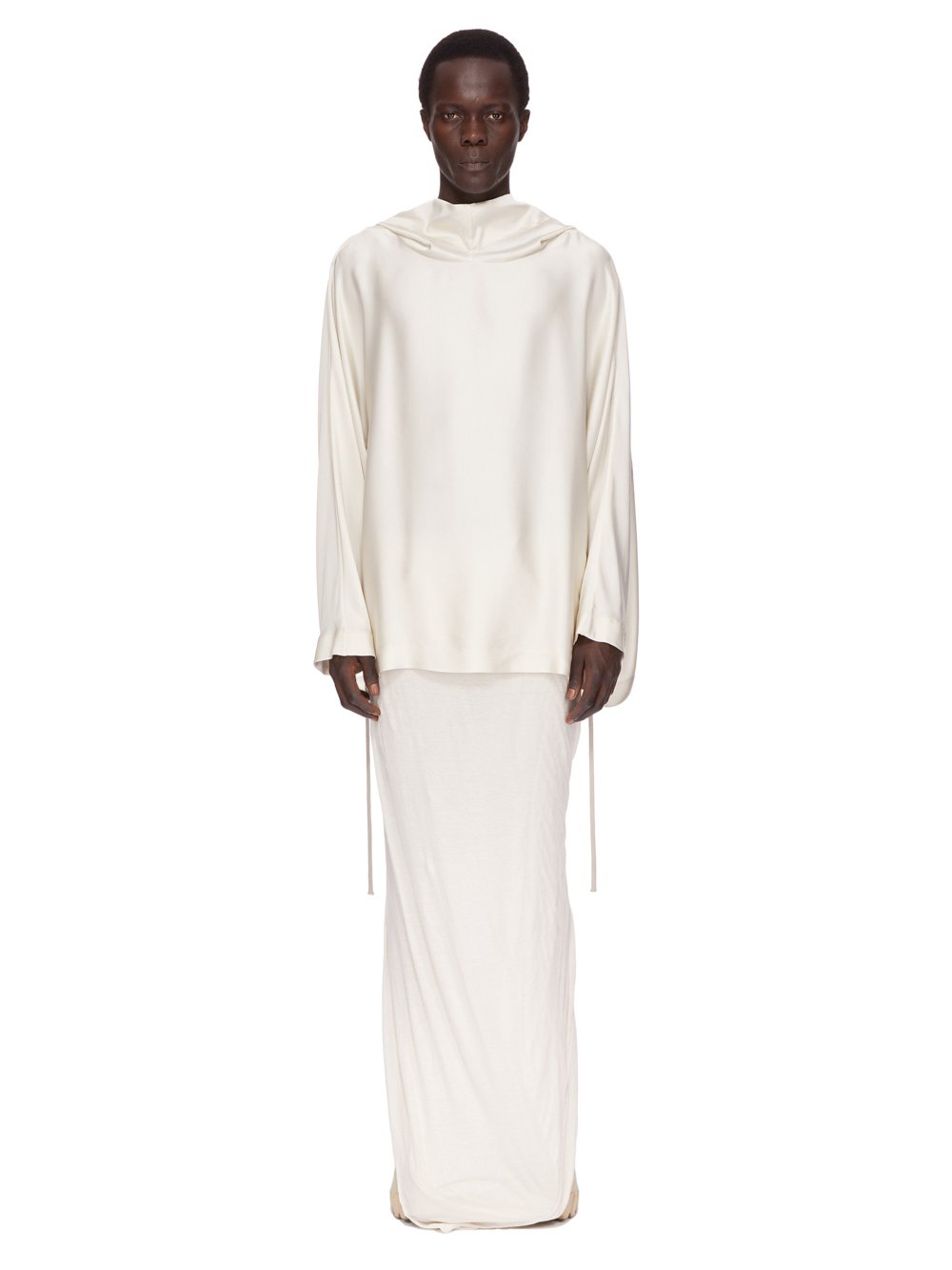 它有一个大兜帽,垂在前颈处,宽大的方形衣身可以收拢,腰部有一根绳子。