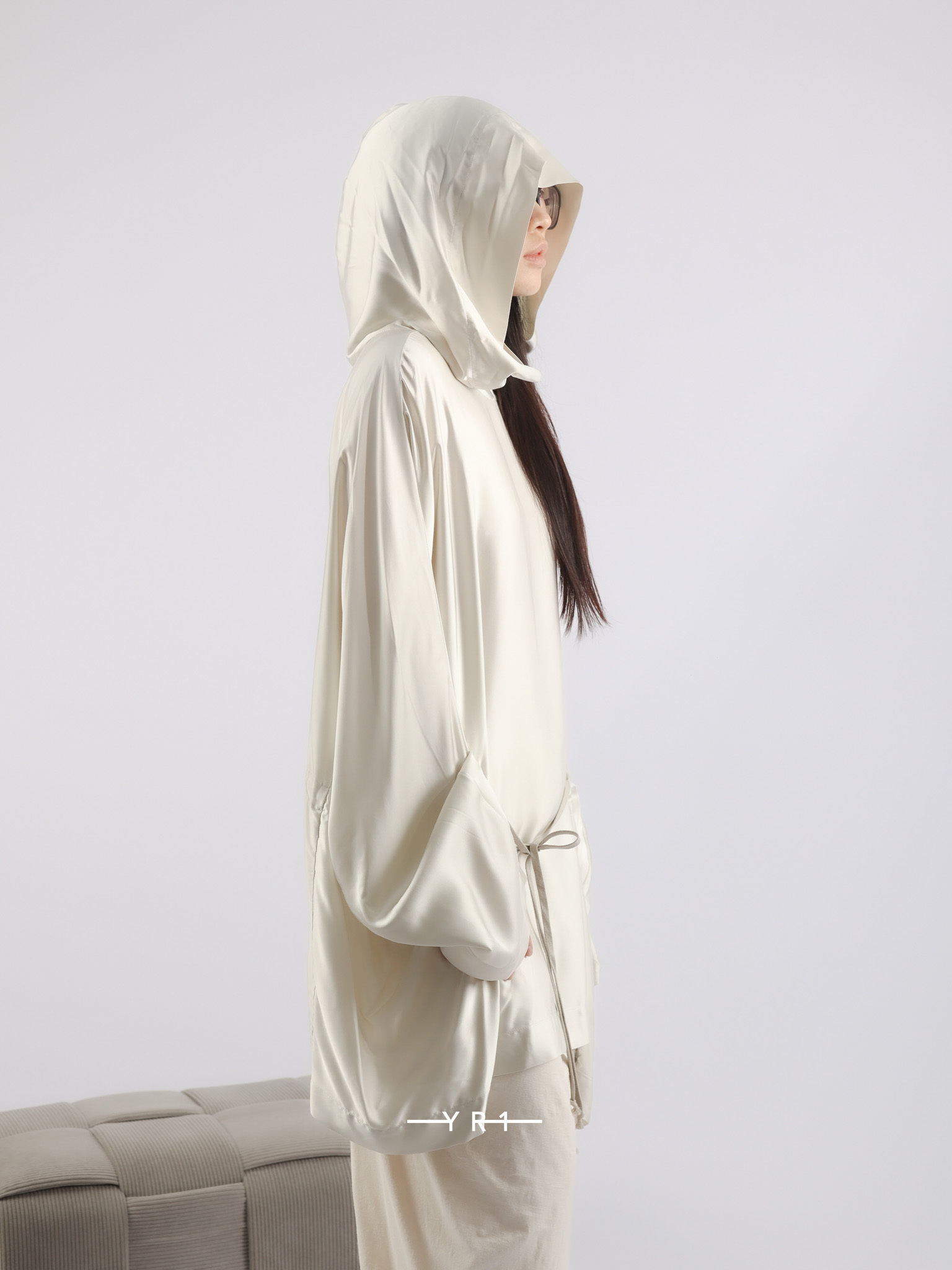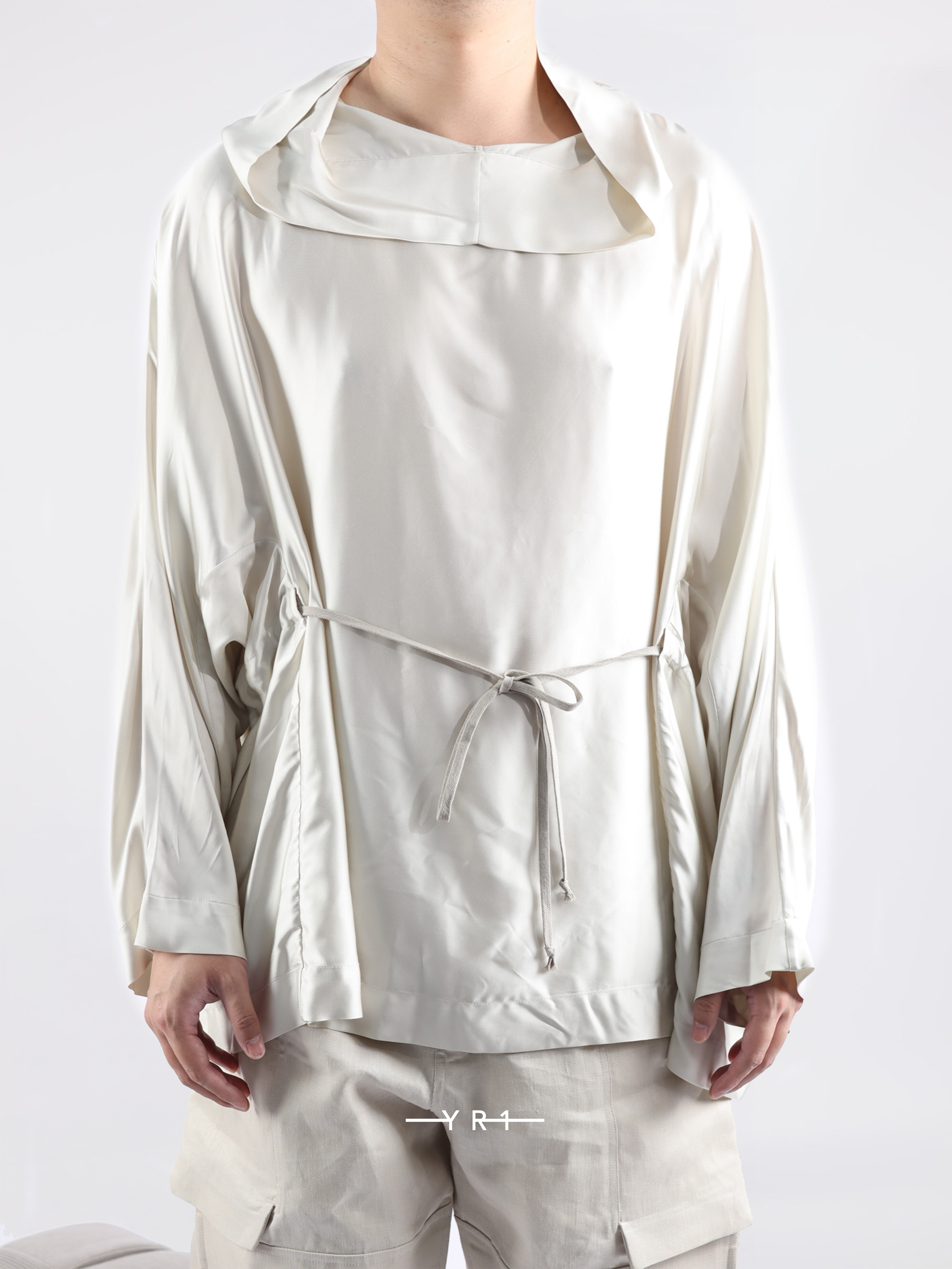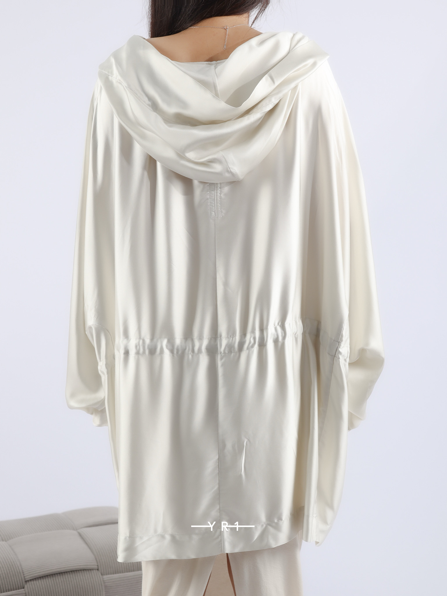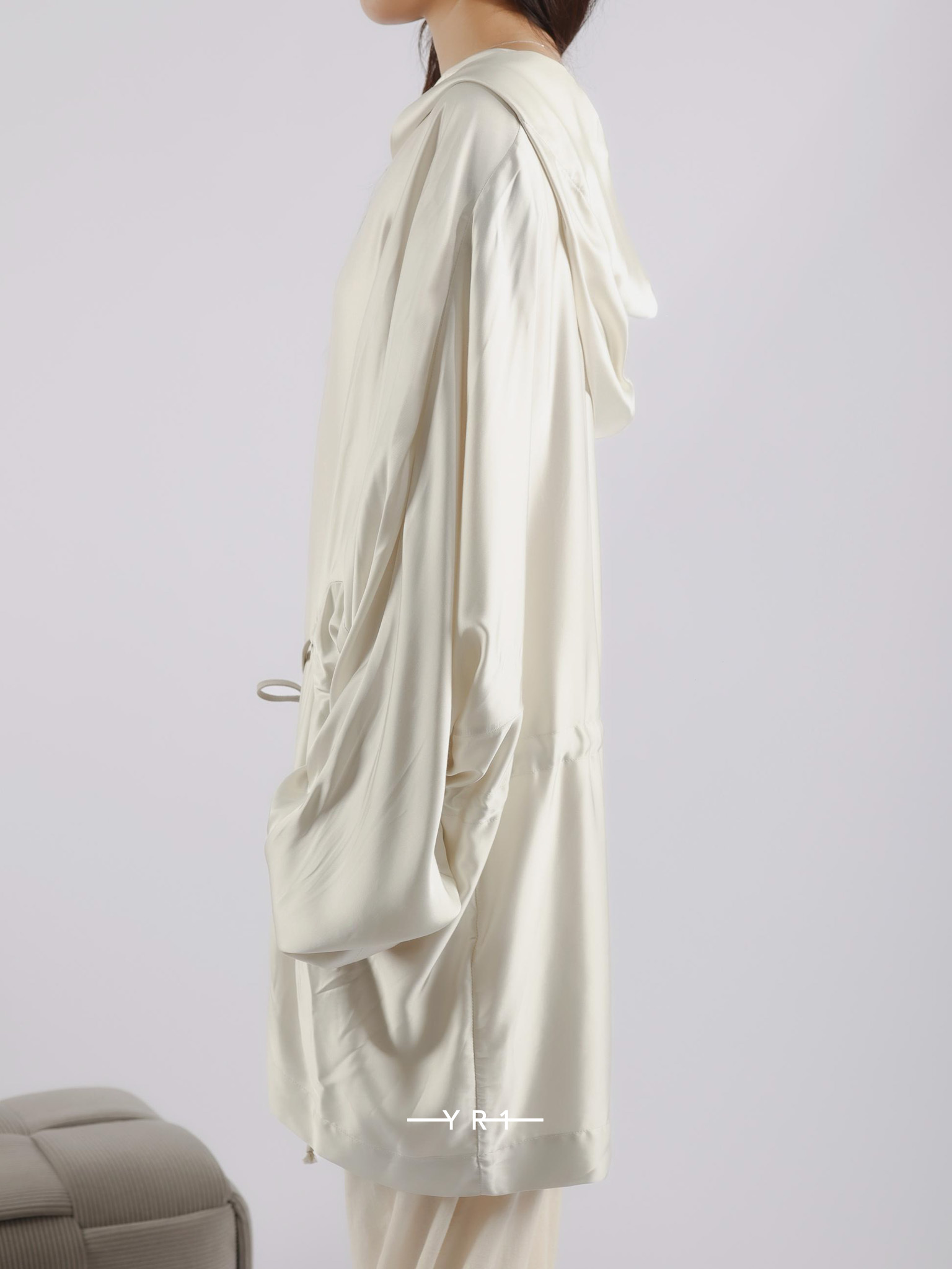 HOLLYWOOD 秀款连帽束腰绉缎外衣