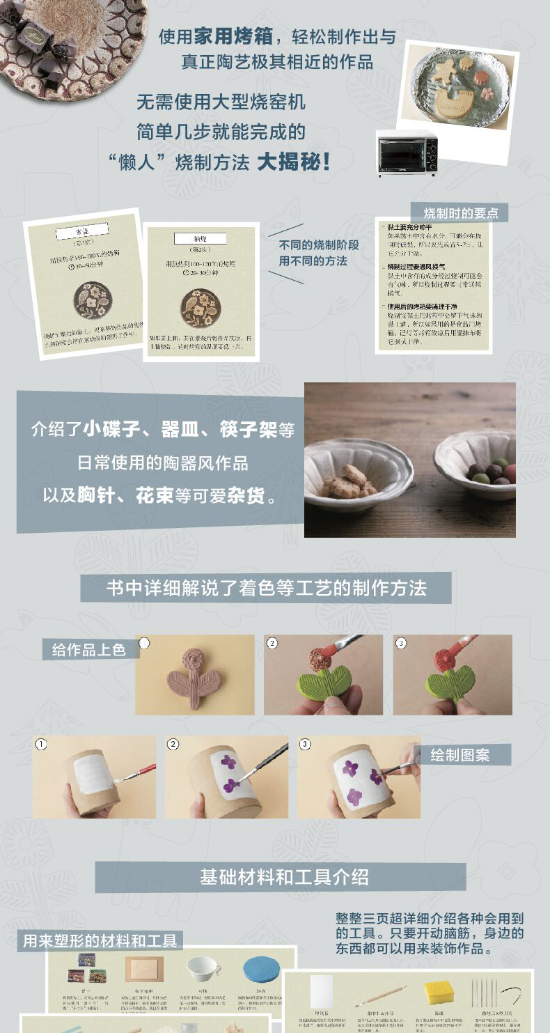 手造食器 用烤箱制作的黏土小物件 家用烤箱制作陶艺小碟子器皿筷子架陶器风作品胸针花束杂货着色工艺制作方法材料工具书diy手工
