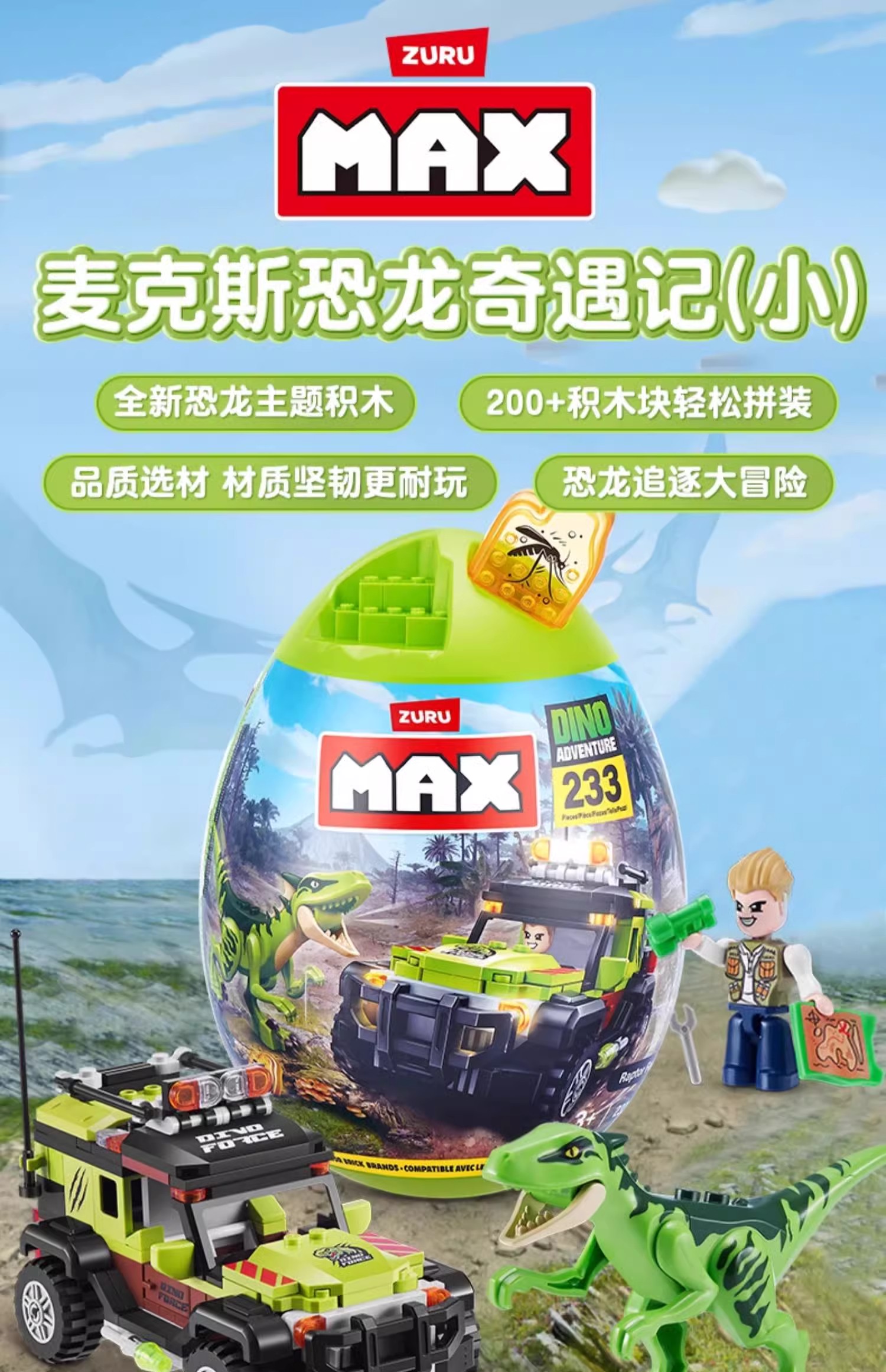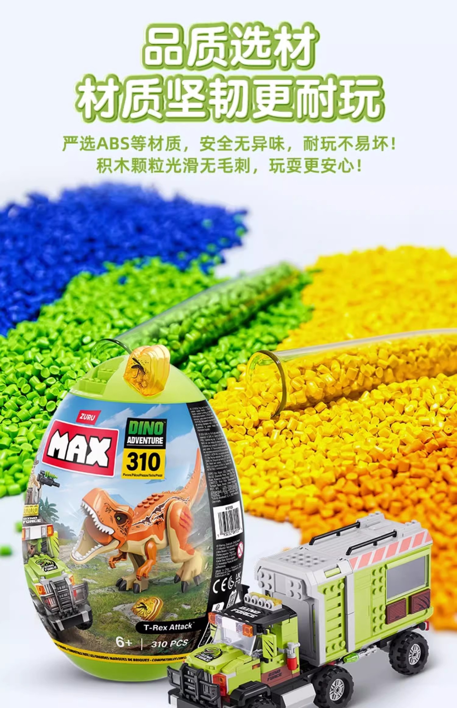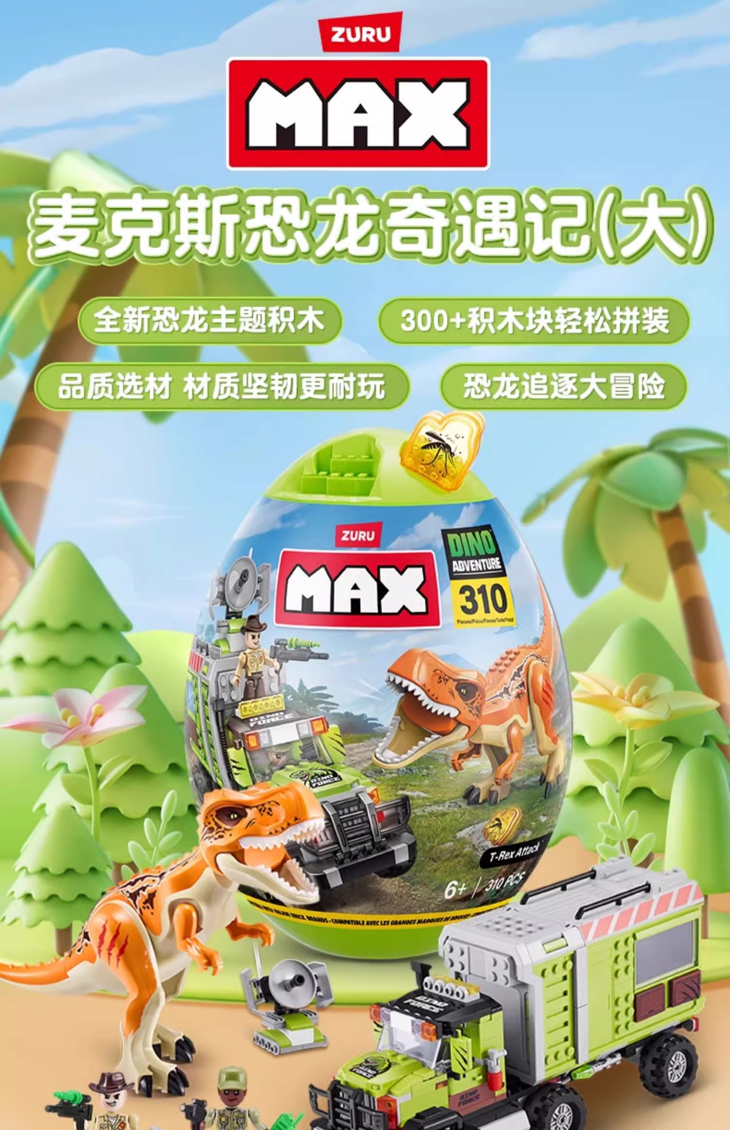 ZURU 麦克斯恐龙奇遇记 积木恐龙蛋max拼装积木乐高工程车男女孩儿童玩具礼物 3岁+