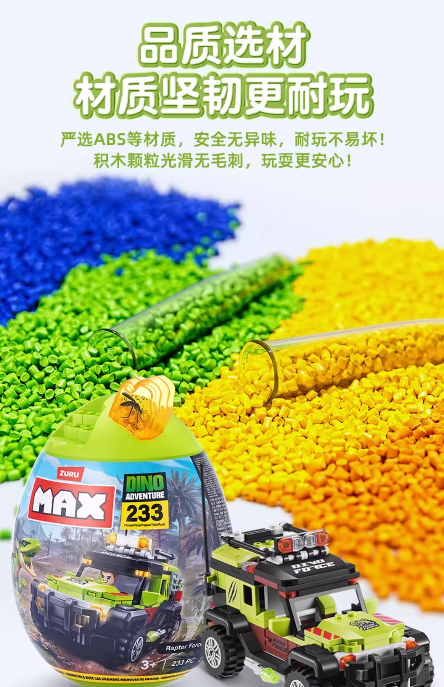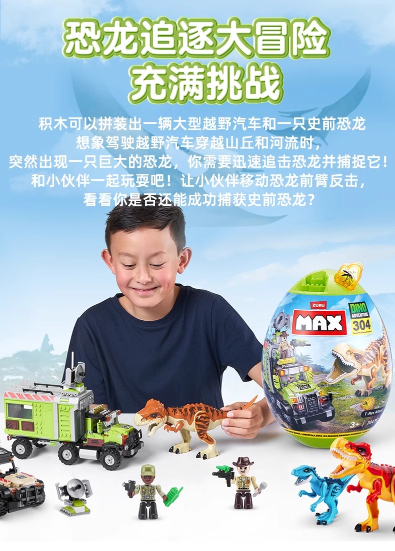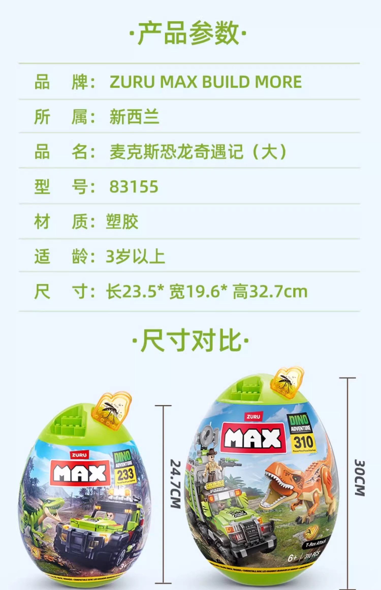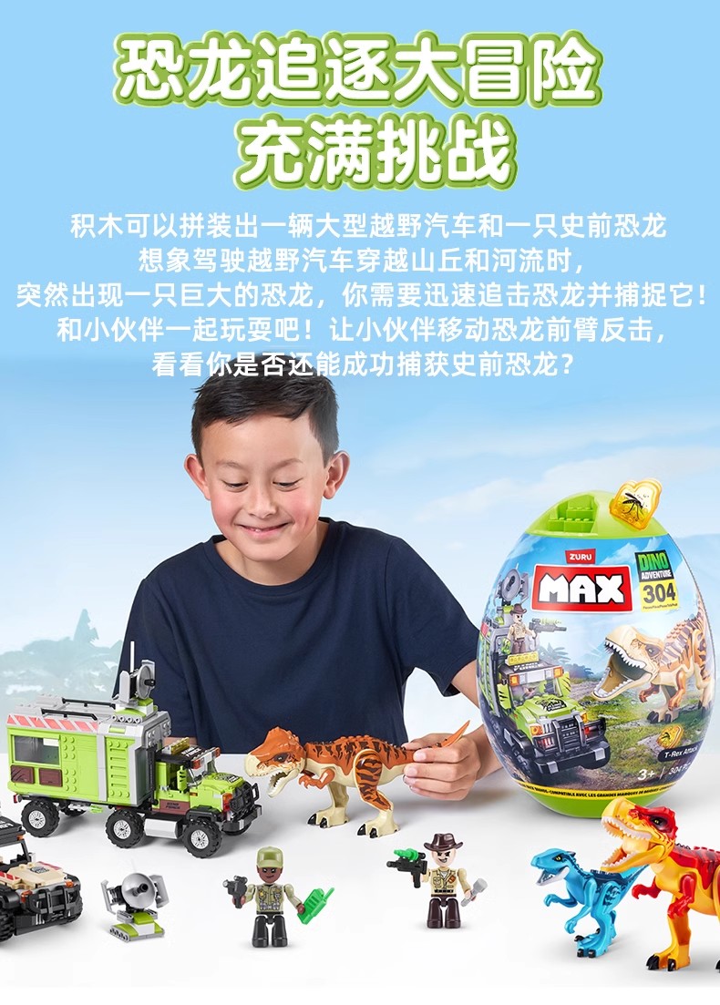 ZURU 麦克斯恐龙奇遇记 积木恐龙蛋max拼装积木乐高工程车男女孩儿童玩具礼物 3岁+