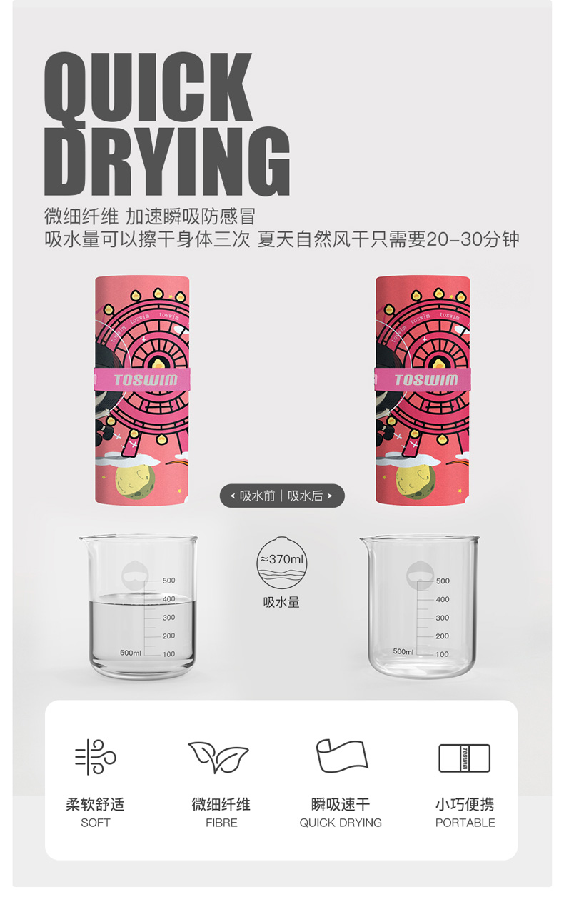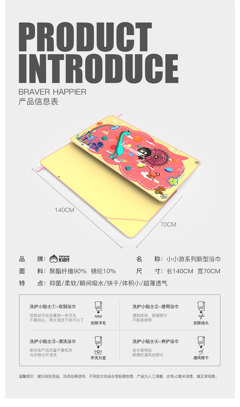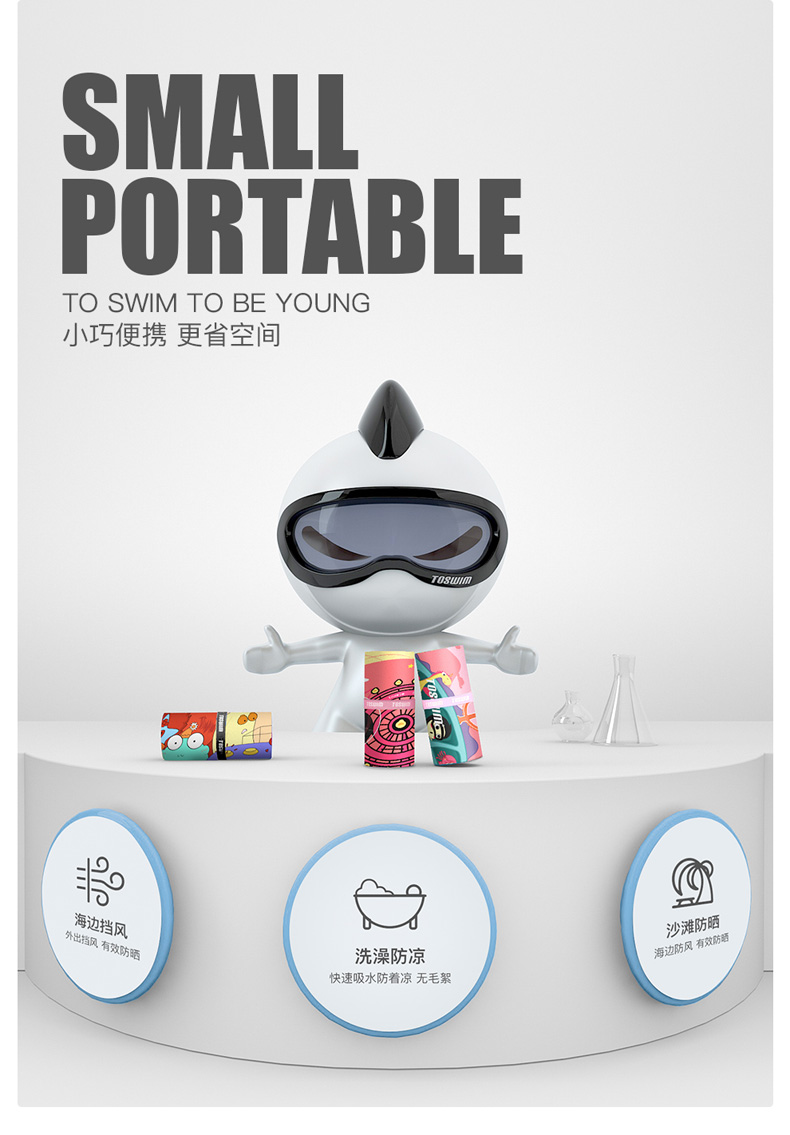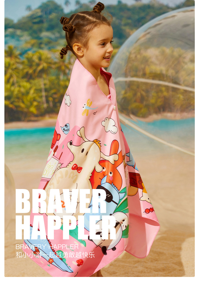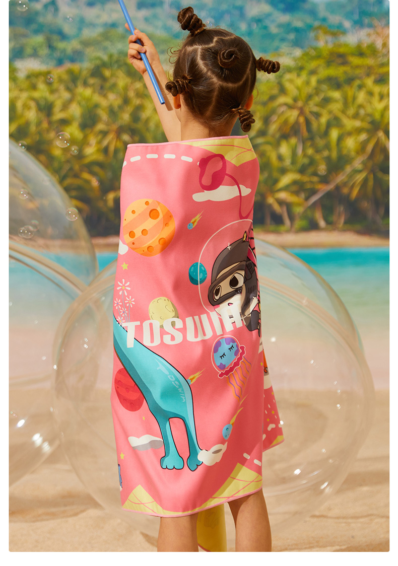 【云优选】TOSWIM拓胜速干浴巾儿童沙滩巾游泳毛巾吸水巾男女童便携防晒浴袍70*140cm