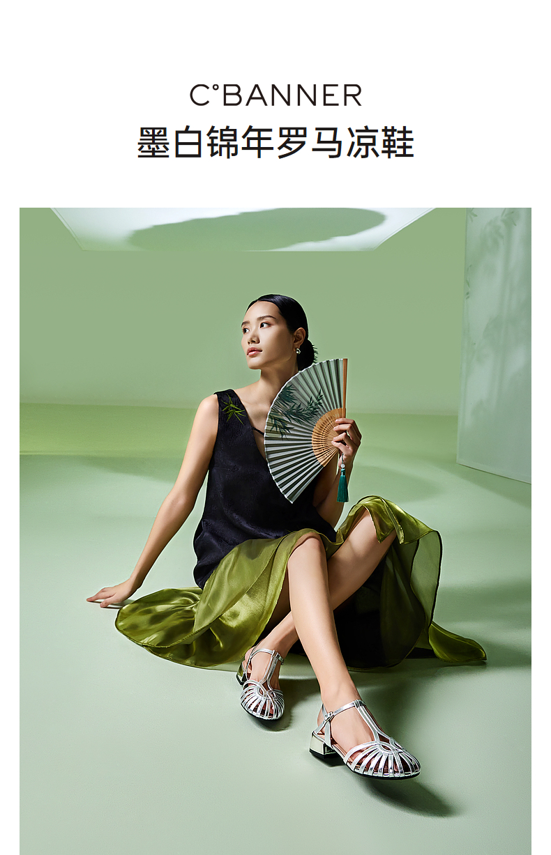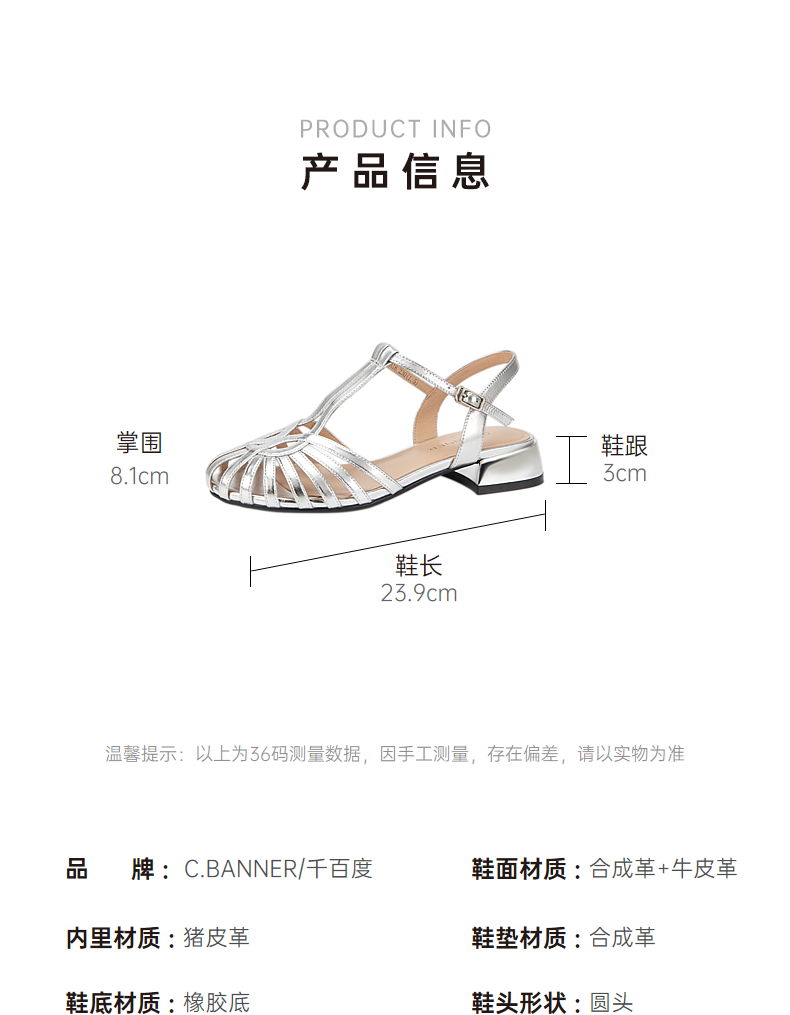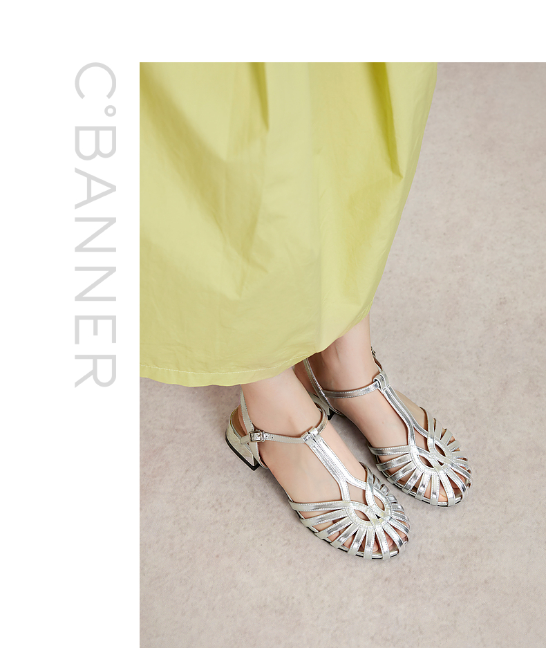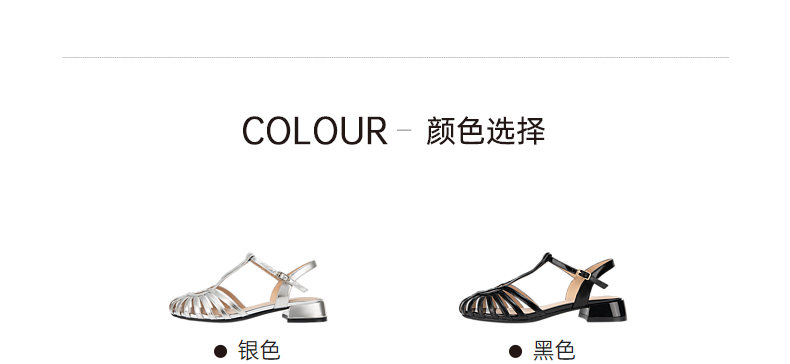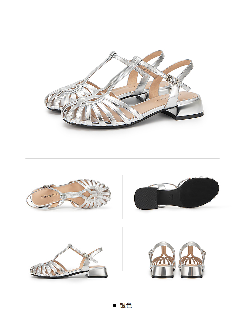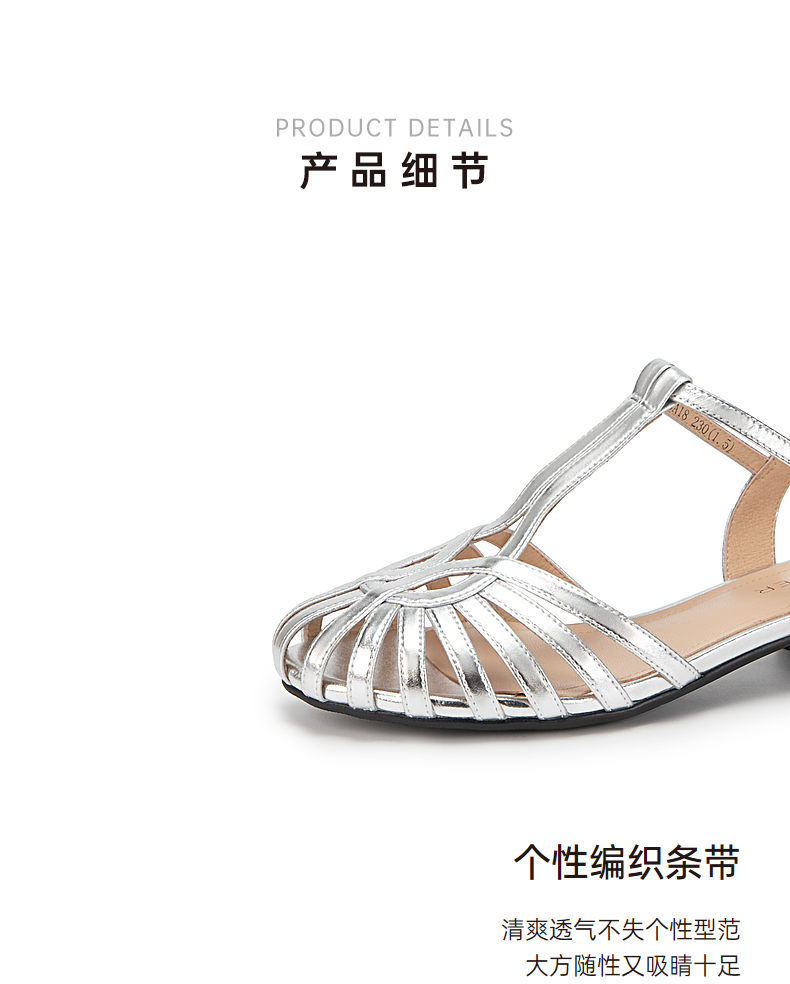 千百度银色罗马凉鞋女款夏季猪笼鞋时尚编织低跟时装凉鞋A24350163